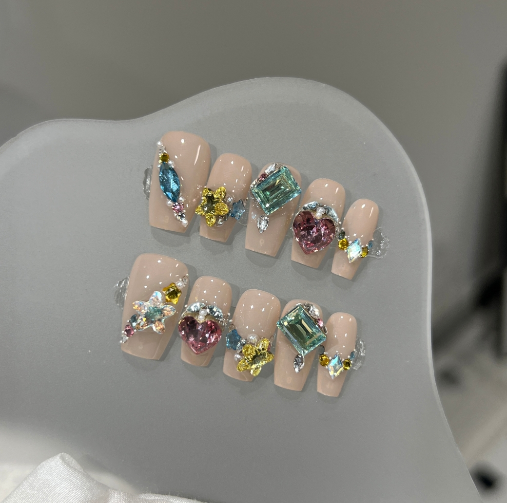 【全施華洛世奇鑽石】夏日美人魚 純手工穿戴甲 爆閃