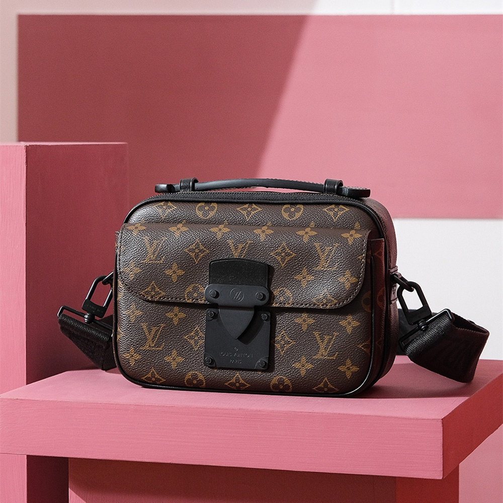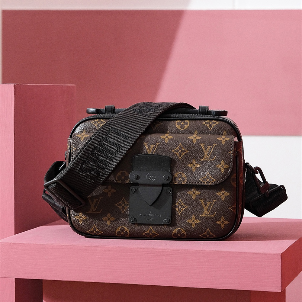 專為男款獨家定製高仿LV郵差包SLock系列,全新升級版.上身攜戴效果炫酷無解,搭配日常穿搭可配置多種時尚風格,大氣且不失低調感.貫徹傳統復刻工藝純手工製作而成.購入原版開模1:1復刻大小細節,從Monogram帆布精心比對原版相關大小尺寸.原廠帆布後續通過塗層演變經典老花,每一個LOGO字母清晰還原,質感絲滑流暢攜帶啞光色澤.