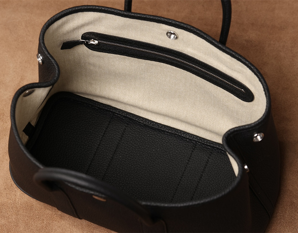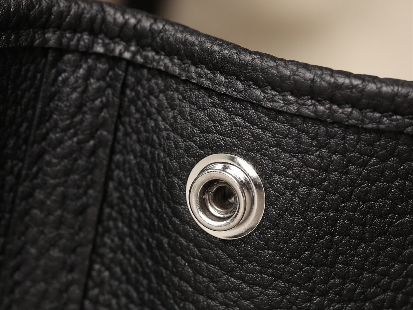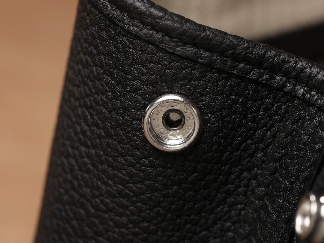 這種皮革以其較大的顆粒紋路和適度的光澤而聞名,非常適合用於製作這款純黑色的Hermes手提包.Togo皮的主要優點在於它的耐用性和堅固性.即使在長期使用下,它也能保持包體的原始形態,使這款手提包能夠承載更多的重量.在製作這款獨家定製的頂級高仿包包時,嚴選了法國進口的原廠皮革,從而避免了人造皮革容易出現的掉色和磨損問題,確保了與1:1高仿包包專櫃產品的高度相似性.