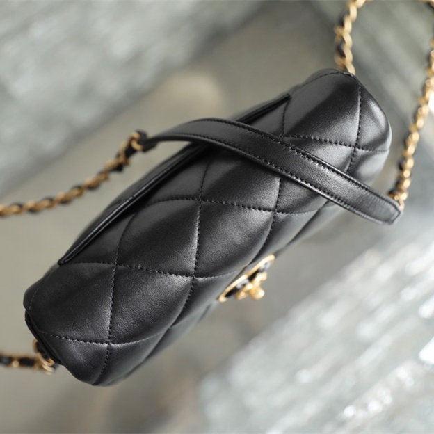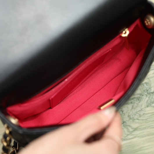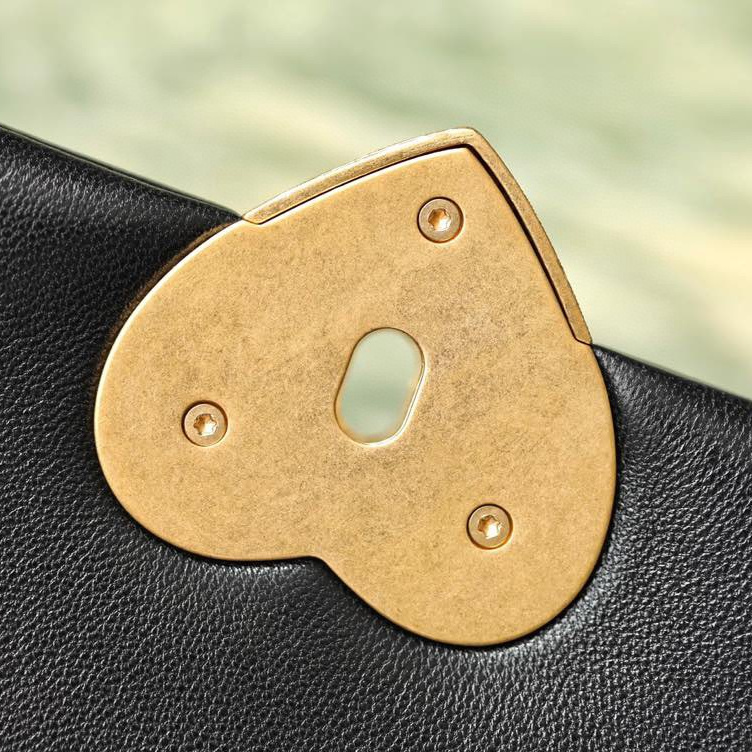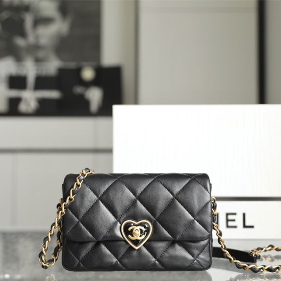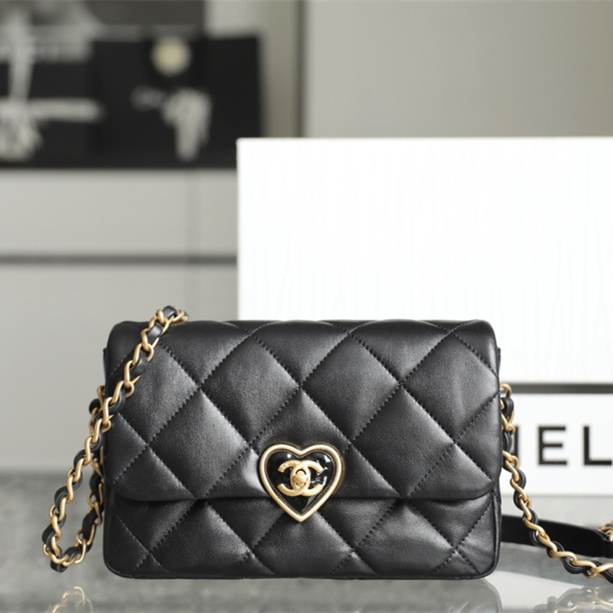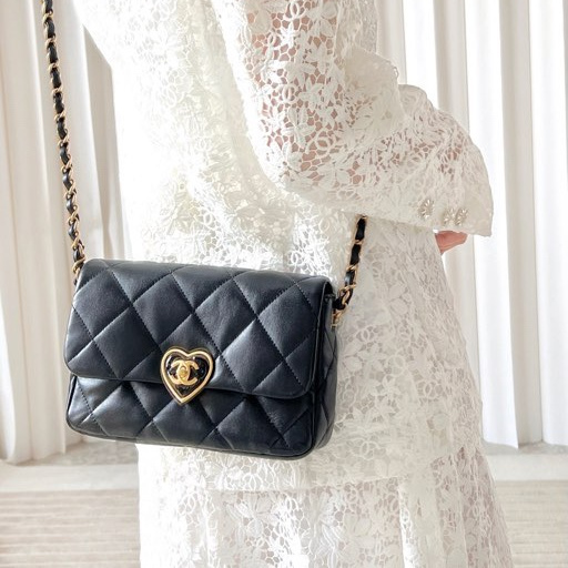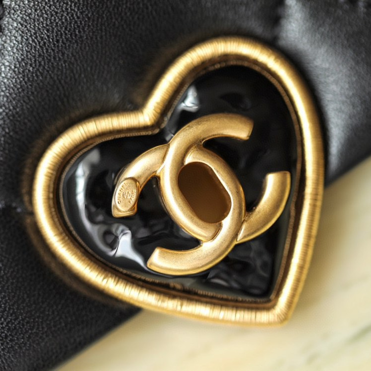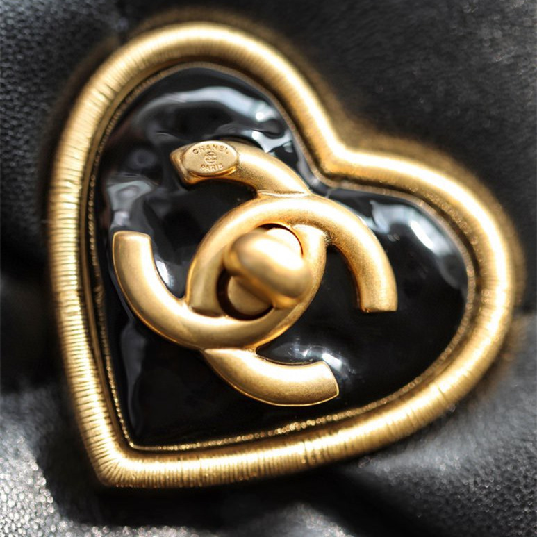 這一隻高仿Chanel外觀呈現的包款依舊是菱格衍縫線設計,作為小香家族標識度最高的包身體型,在開合包扣中增加了新款磁吸鎖扣,愛心形狀加上中心標配的雙C-