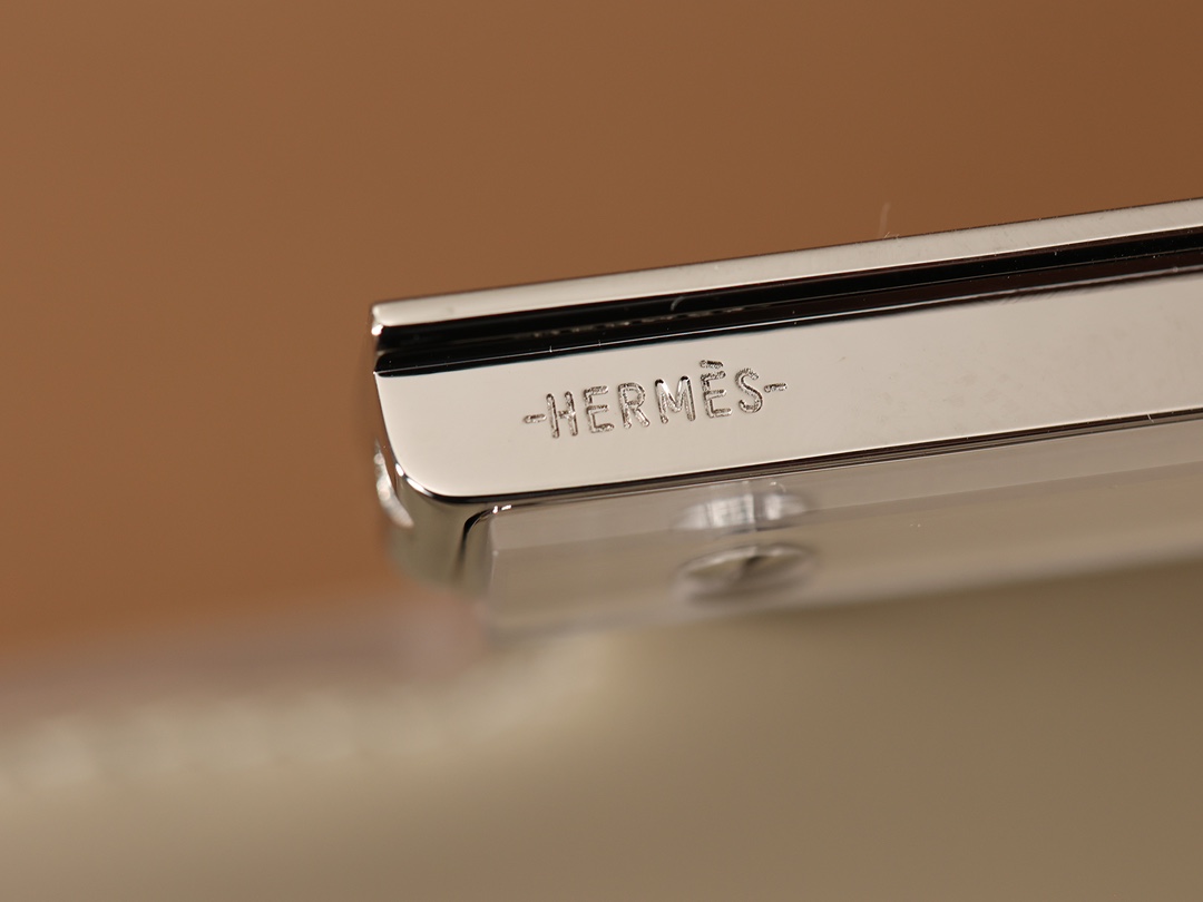 另外五金釦具,H字母的包釦,電鍍金屬製作,並非水鍍工藝出現的掉色掉漆,打磨拋光後的質感完全媲美原裝正品.內置皮革在色澤上做了相關處理,形成包面與包內的兩種皮革處理工藝,同樣也是愛馬仕原產皮革.而關於最後的頂級真假對比是Hermes的燙金壓印.手工標準的壓印字樣,字體較寬間隔勻稱.每一個燙金字體清晰乾淨,而劣質工藝使用的機器燙印就會有嚴重的外溢,字體也會偏細長.高仿Hermes香港獨家私人定製高仿市面上頂級天花板級別,每一道工序純手工製作.高仿包包香港請認準MirrorBags直營店.