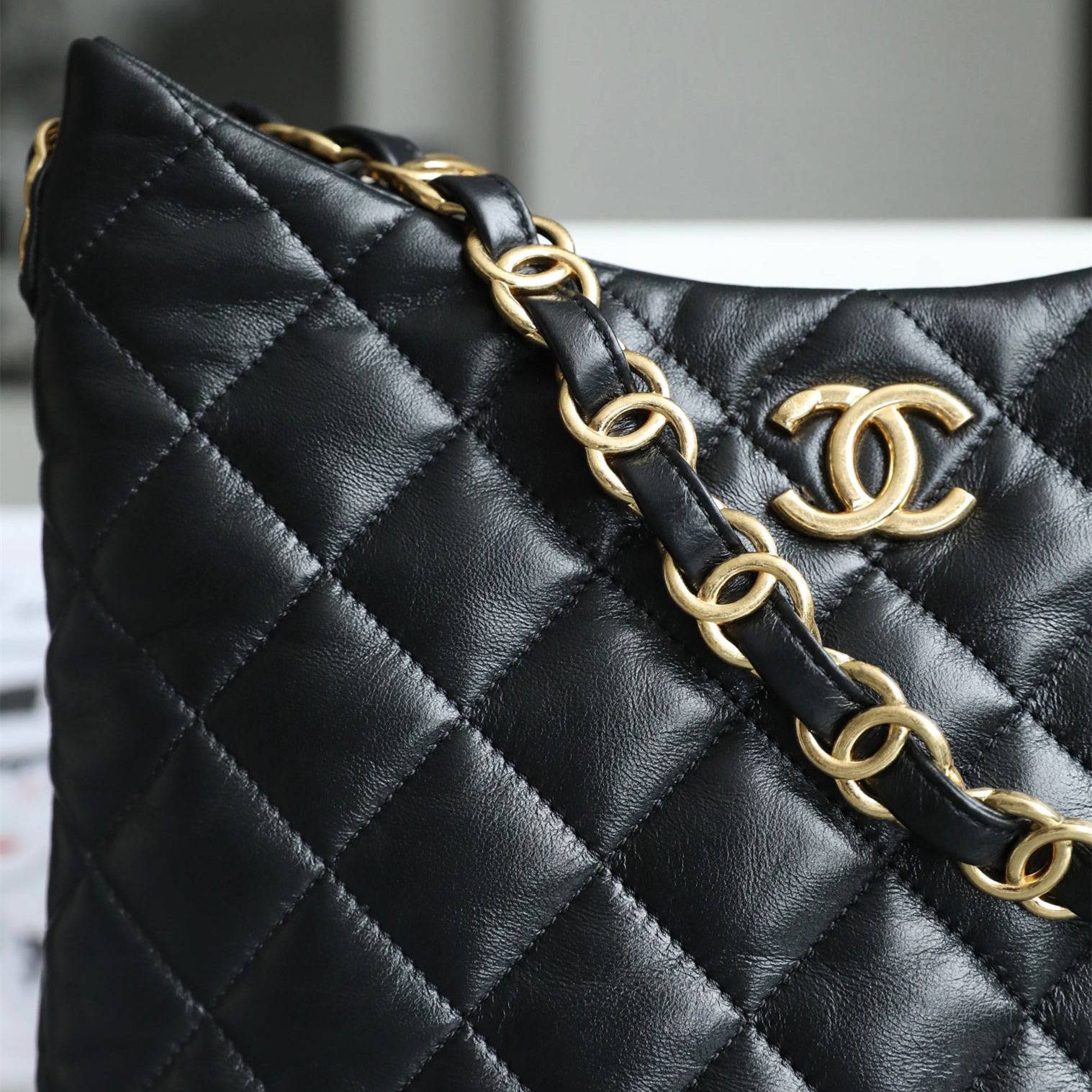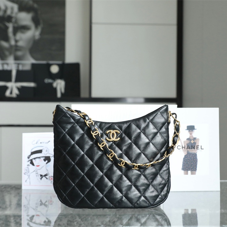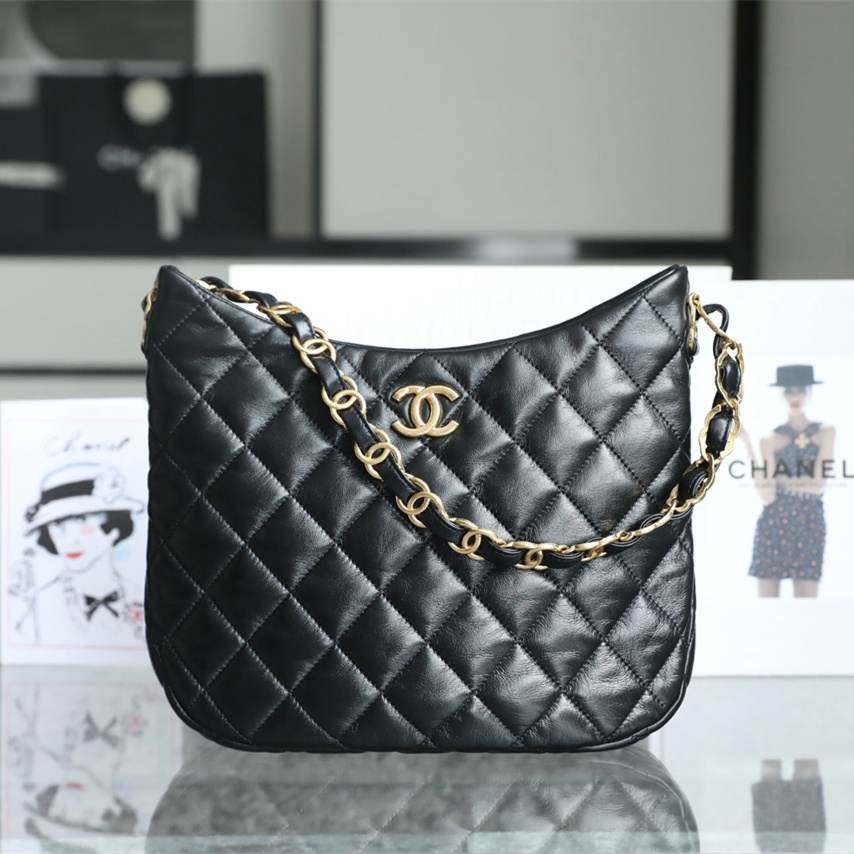 原單Chanel單肩包麻將包Hobo系列黑金大號免檢版