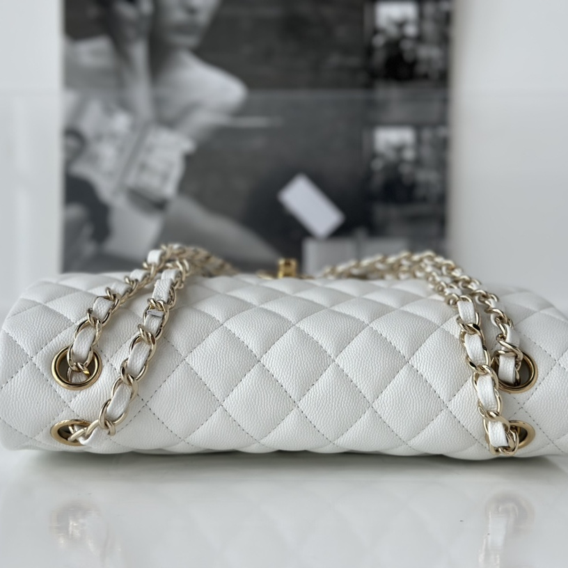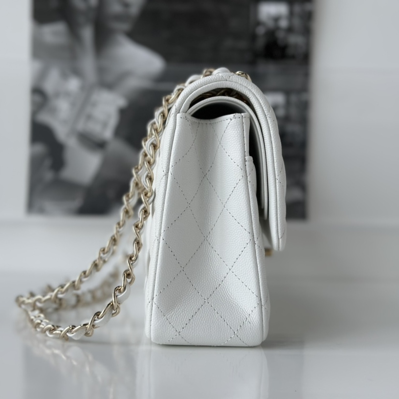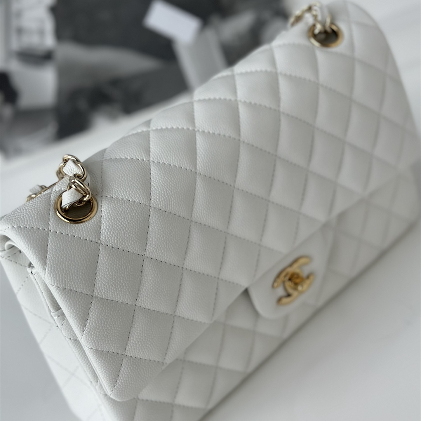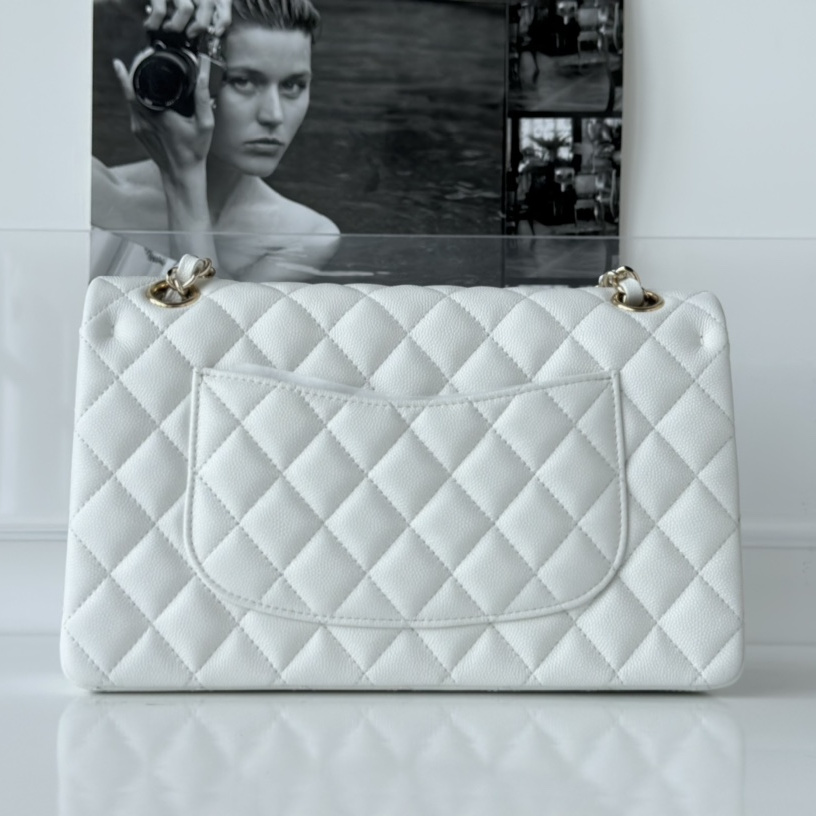 由於純白色是最不耐髒的色澤,相對於在日常使用的情況下需注意保護和愛護,不過這一隻高仿Chanel口蓋包是使用了Incas中球紋小牛皮打造,與原裝正品一致相符的源材料.易清理手感極度舒適,並非市面上劣質版本使用的人造皮革,不對版而且易出現掉皮缺陷.