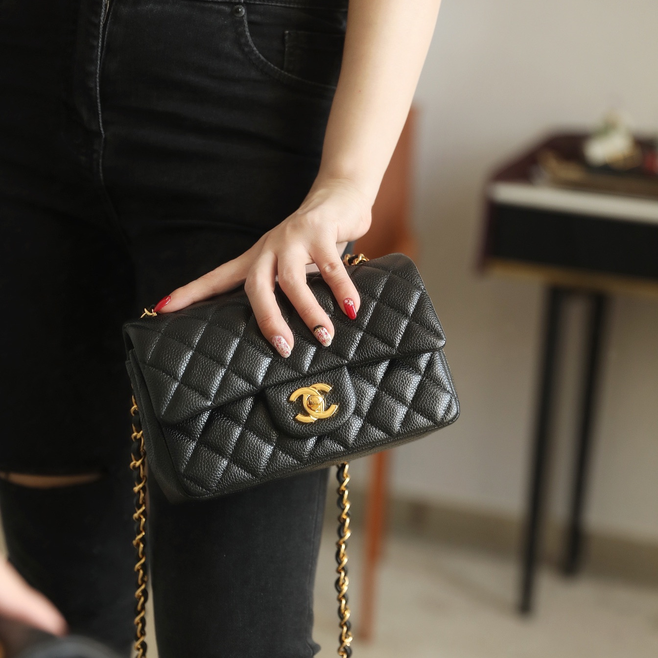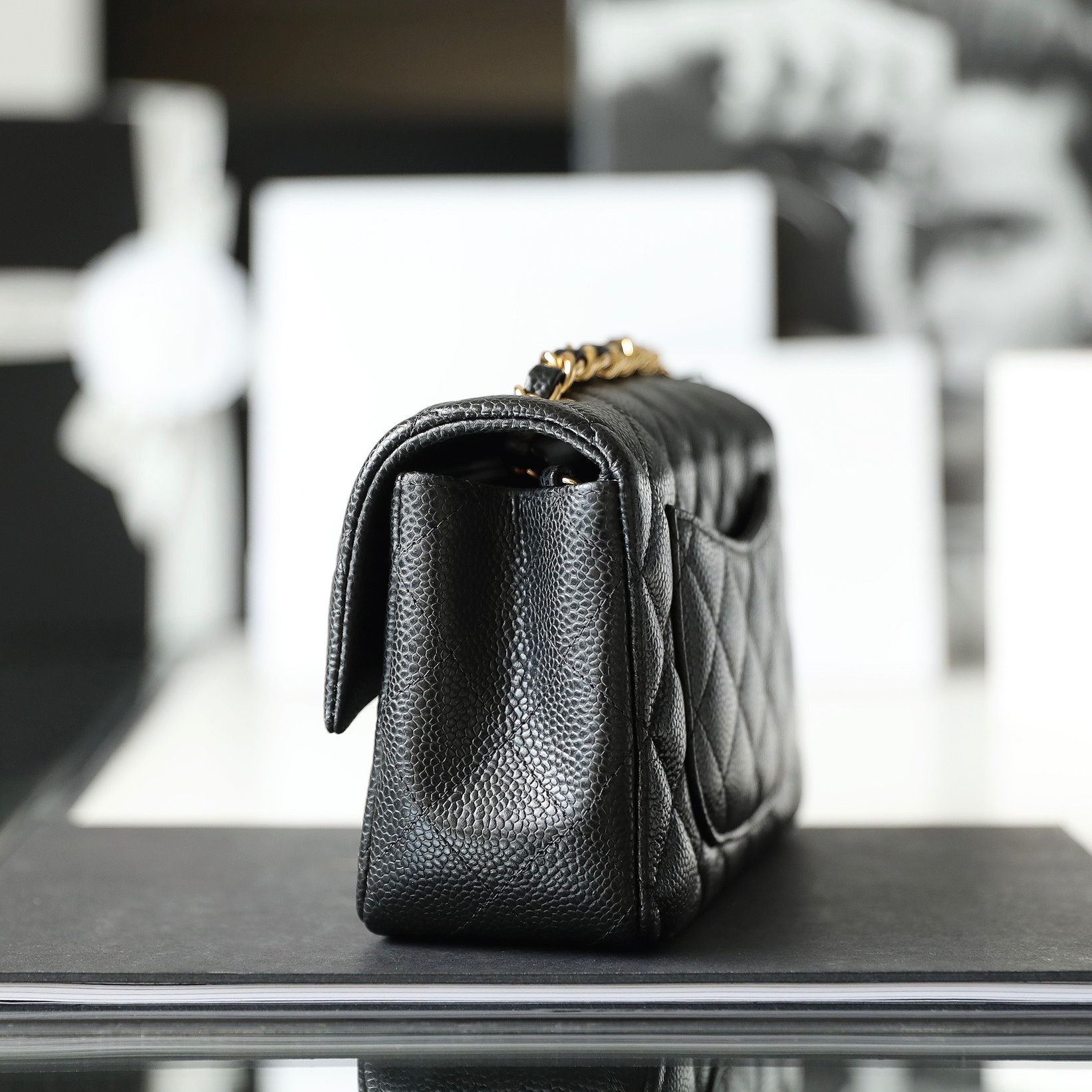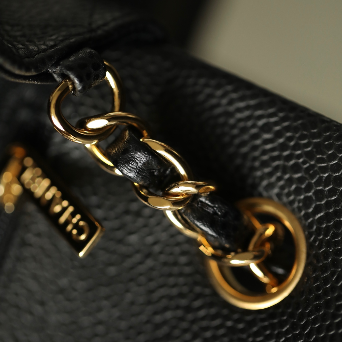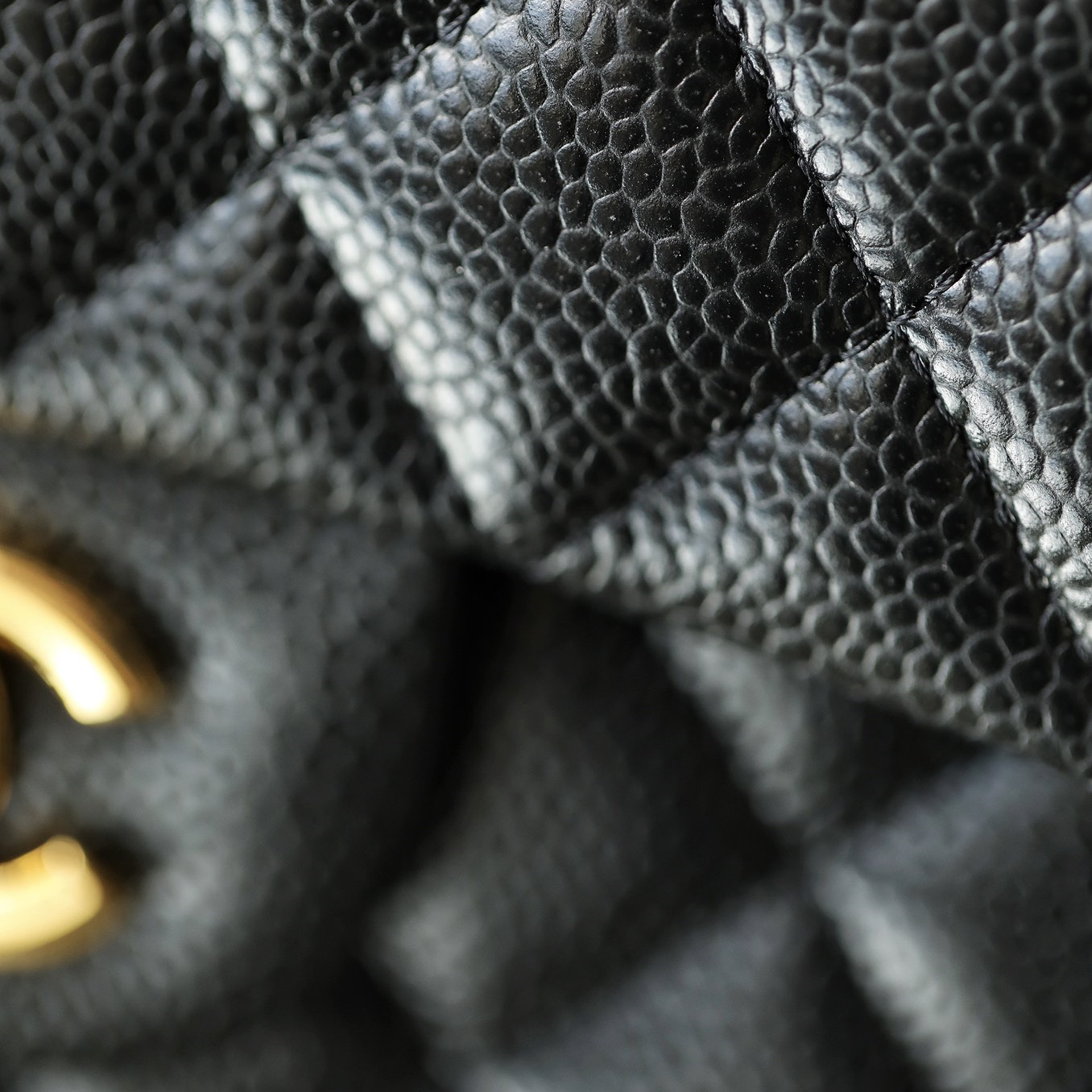 Flap芯片版口蓋包新款現已上市,這一款與眾不同,采用了基於原版正品模具的設計.選用了進口Hssa魚子醬牛皮,這種皮革以其緊密的顆粒紋理和獨特的光澤而著稱,為原單Chanel口蓋包帶來精細美觀的外觀.顆粒紋路清楚可見,細膩且具有類似鱷魚皮的質感.