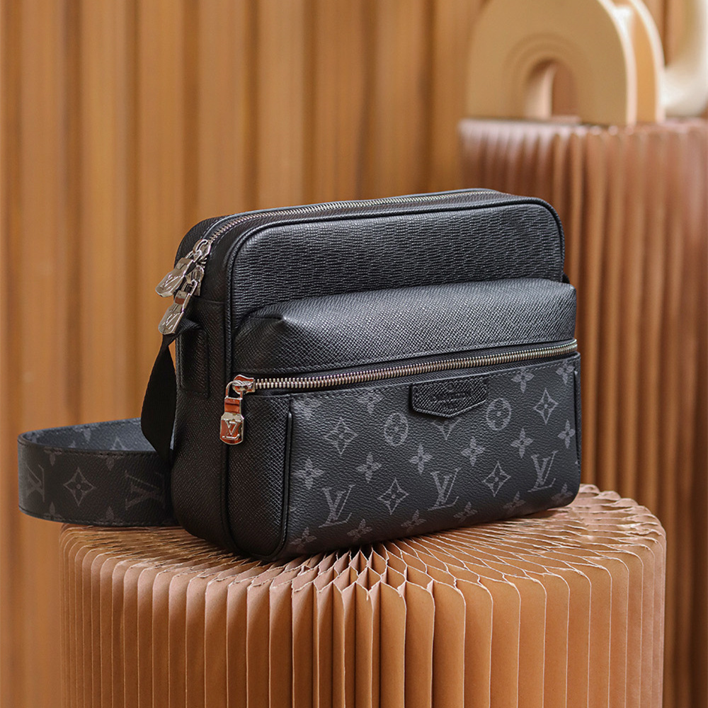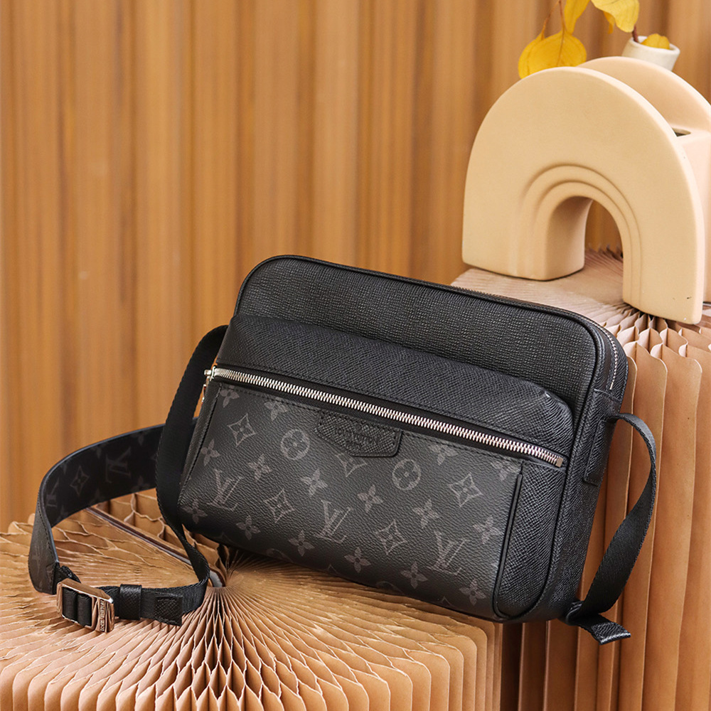 原單LV男款郵差包Outdoor系列黑花免檢版