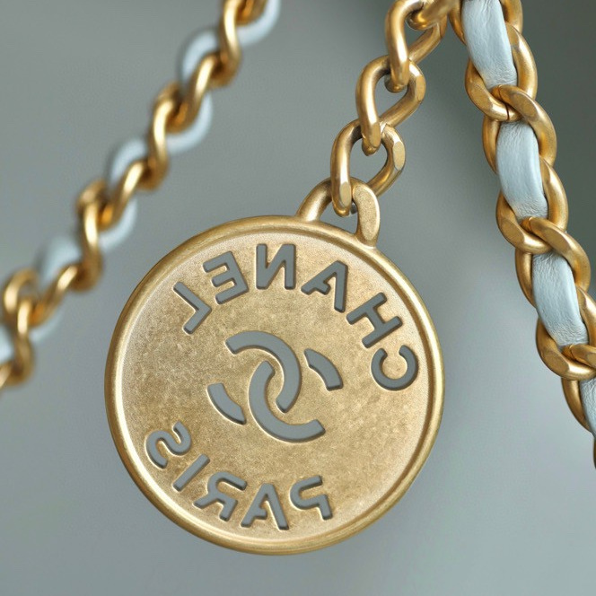 以媽咪購物袋作為主打設計,此次原單Chanel購物袋精選了Antiba亮面小牛皮,經過純手工縫合而成.其皮料附有皺紋理,類似手掌紋.手感上的觸覺則是絲滑流暢,並無人造皮革的缺陷.市面上大部分廠應用到的人造劣質皮革貨不對板,而且色澤也不會有明顯的區分.