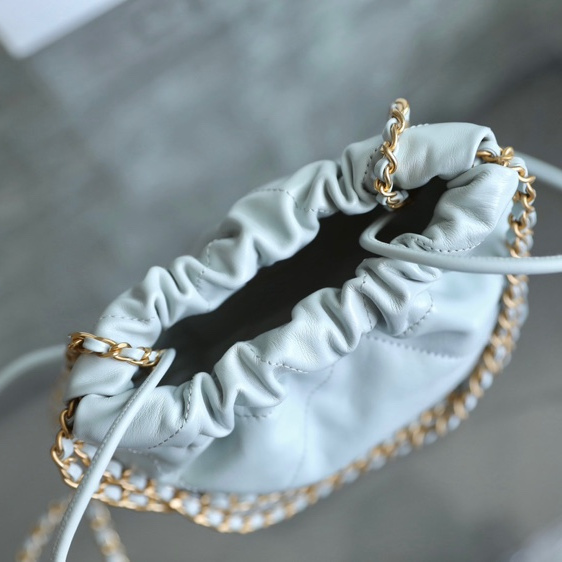高仿Chanel迷你包通過購入原版開模,打造復刻市面上全鋼免檢版本.這一隻秀場主角22bagMini款融入了春夏的視覺美感,霧霾藍的配色給人帶來一絲清爽,年輕的風格對比復古的味道,詮釋了當今社會的新款配色.Chanel包袋復刻從皮革上的選用到細緻的手法表達出工匠精益求精.