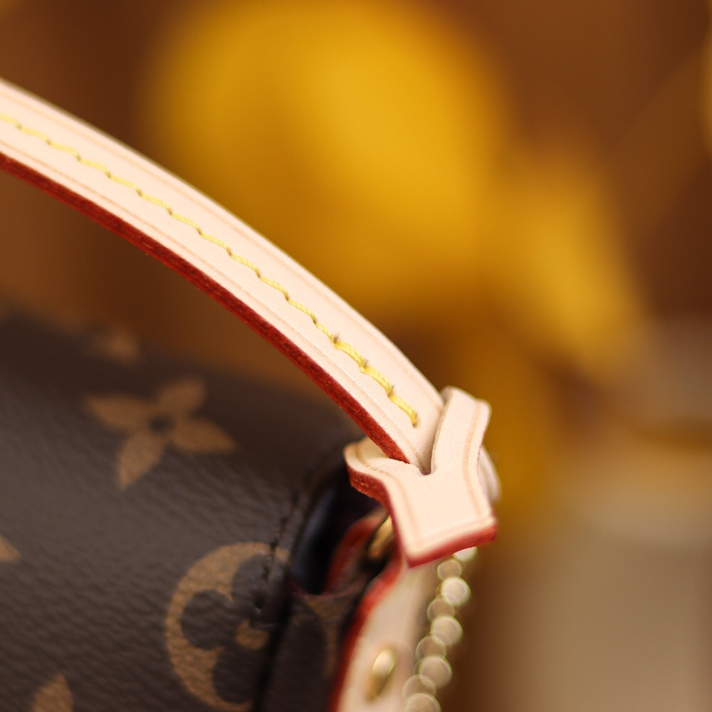 純手法製作的工藝彰顯出細節處理的得到之處,外縫線的包邊設計,線路明確.包體側面角度則是使用到內縫線縫合,原單LV腋下包形成了對版的兩種工藝.翻蓋磁吸式開合,內置皮面是斜紋帆布,並且市面上使用的劣質布料,手感不同而且質感方面短時間使用會出現線路外露.