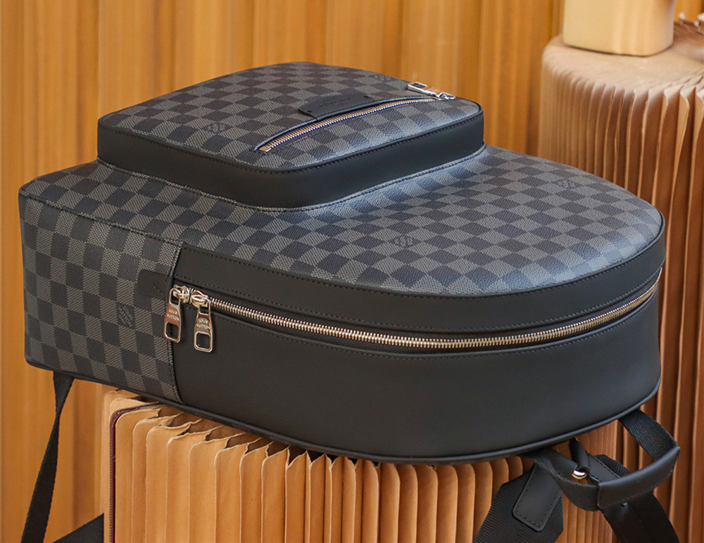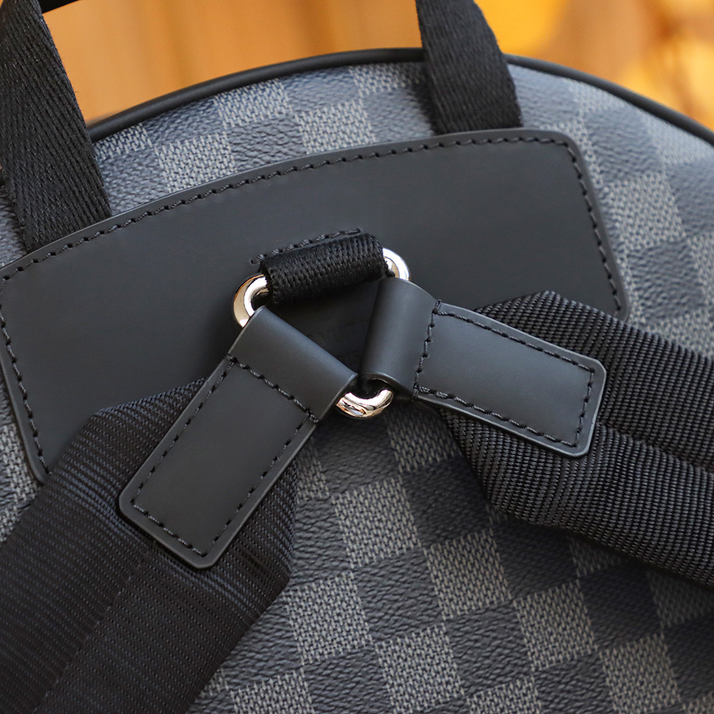 包體的形狀以原版開模為主,締造皮革與帆布之間的縫合,頂級復刻包包純手工縫製完全貼合原版製作工藝.杜絕使用市面上劣質機車工藝,完全不是一個級別的產物.棋盤格包邊設計所間隔的位置距離把控中無疑是最好的證明.而頂部拉鏈部分則是純黑皮革打造,高仿LV雙肩包展現雙色拼接的頂級工藝.