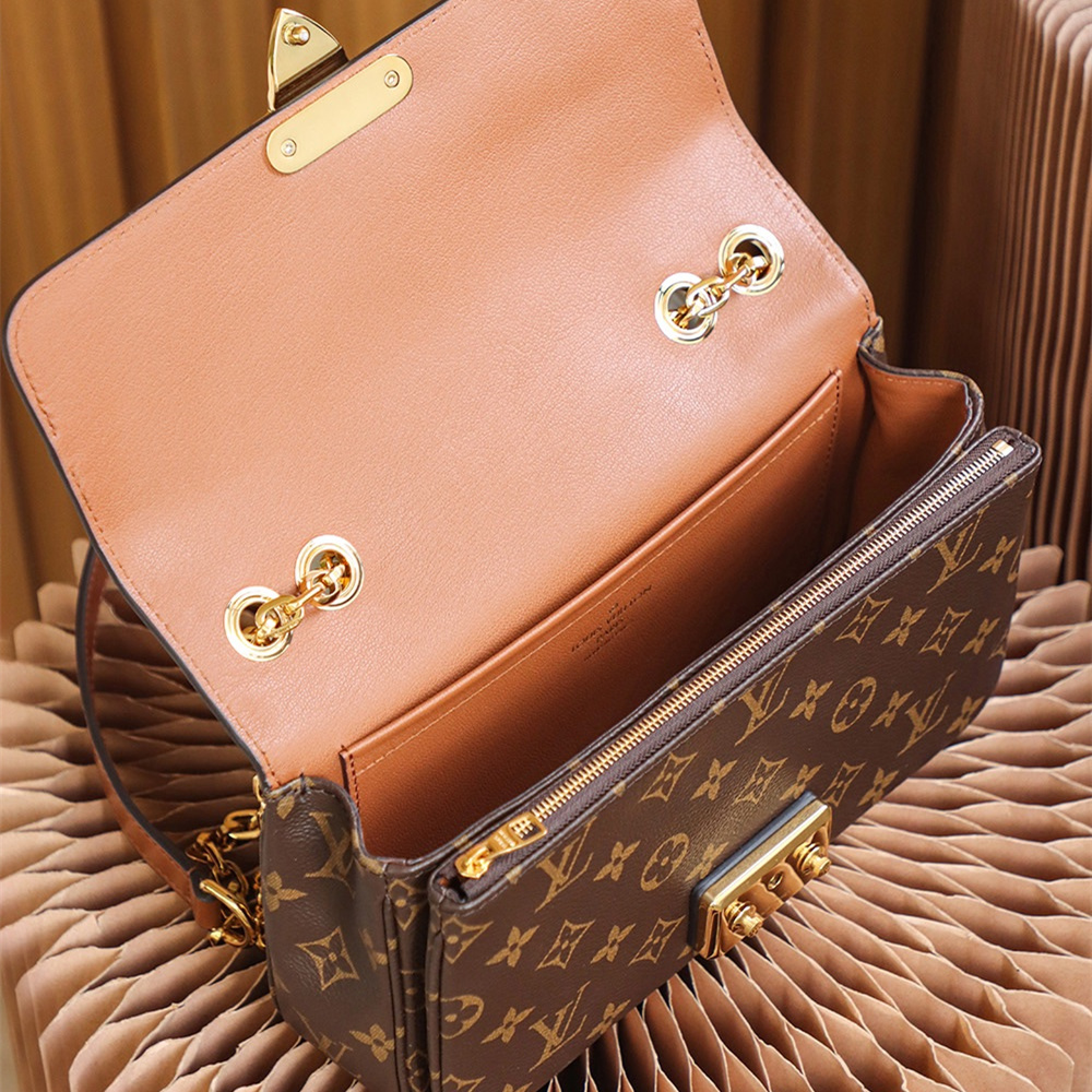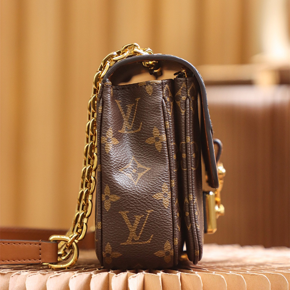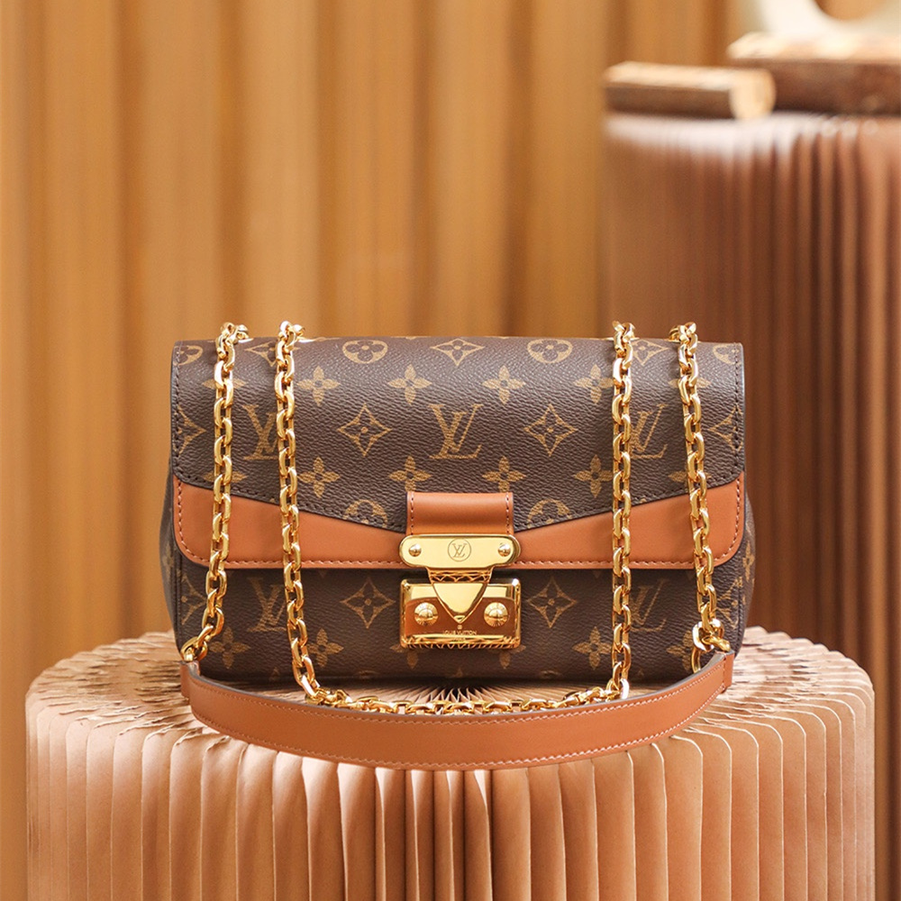 復古與時尚的經典融合,摩登前衛的視覺感這一隻包完全侵佔了現代化與老版本的味道所在.S-Lock鎖扣設計以傳統的開合翻蓋作為標誌性,搭配Monogram帆布詮釋了永恆多元素的代表之一.而高仿LV鏈條包同步原版所使用到老花帆布和皮革的雙拼材質1:1還原相對應結構.