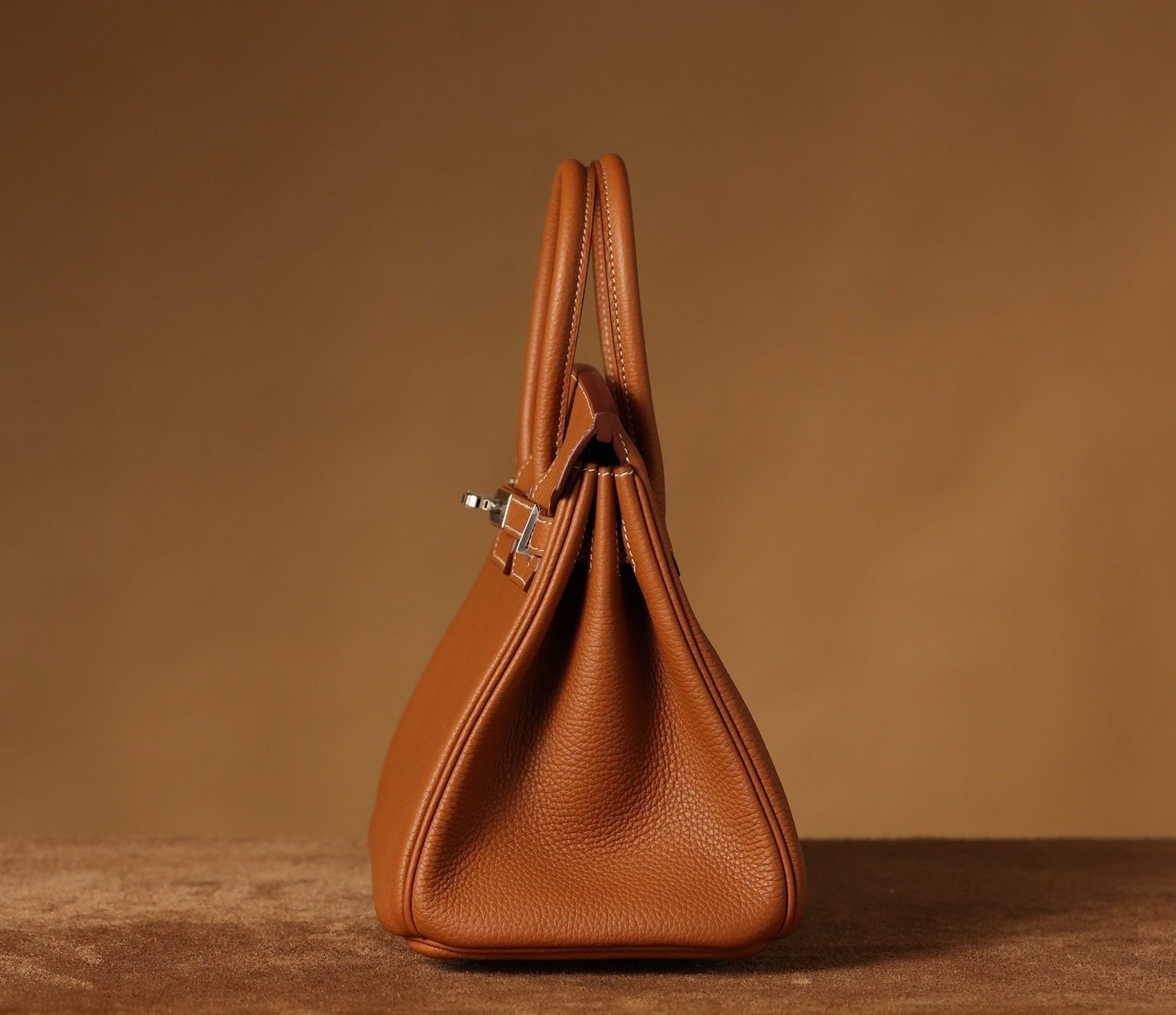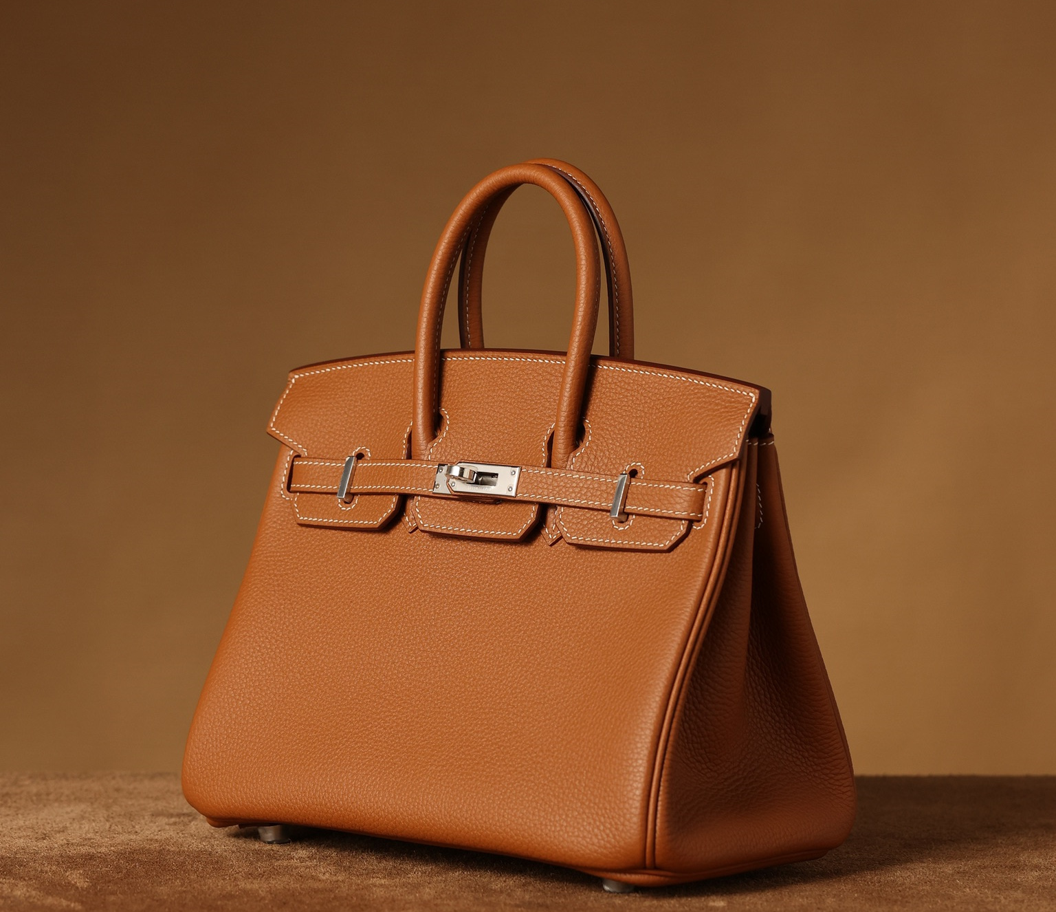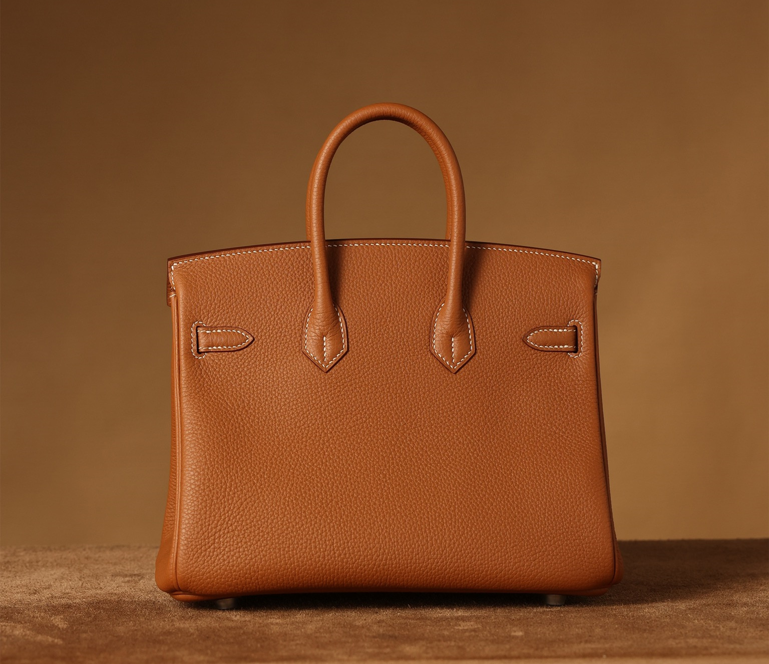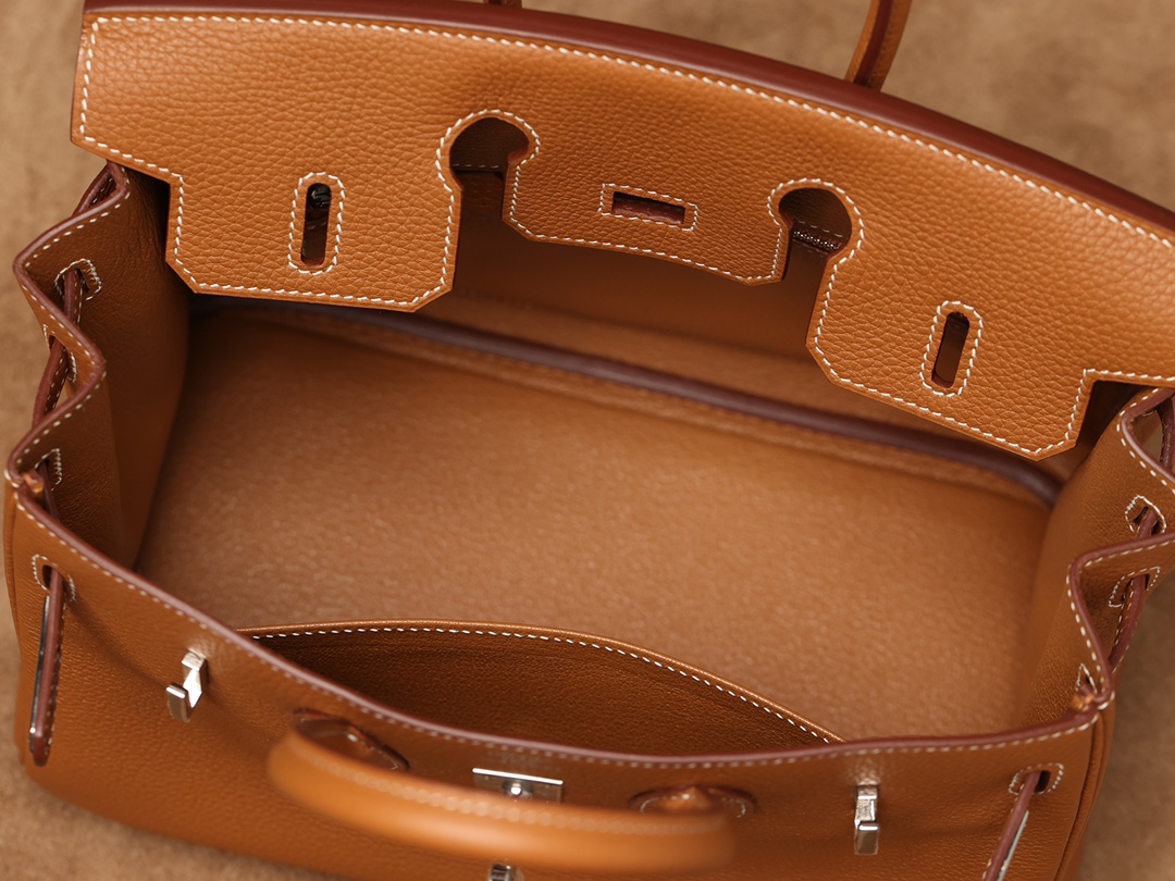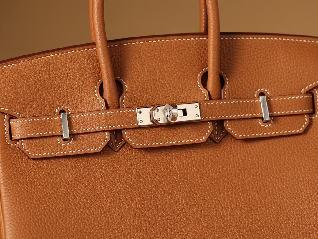 全鋼HermesBirkin25系列的金棕色手提包,搭配了閃亮的銀色扣具,展現出原單高仿包包的獨家製作工藝.使用的是專櫃同款Togo皮,這種高質量的公牛皮只選取自牛的頸部.部分皮革的紋理較深,經過特殊處理後,形成了獨特的荔枝紋.皮質的顆粒大小均勻,在光線下呈現出吸引人的光澤.這款高仿Hermes