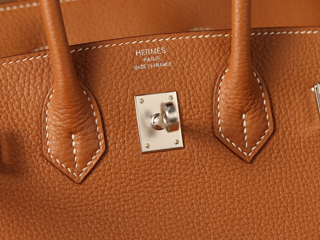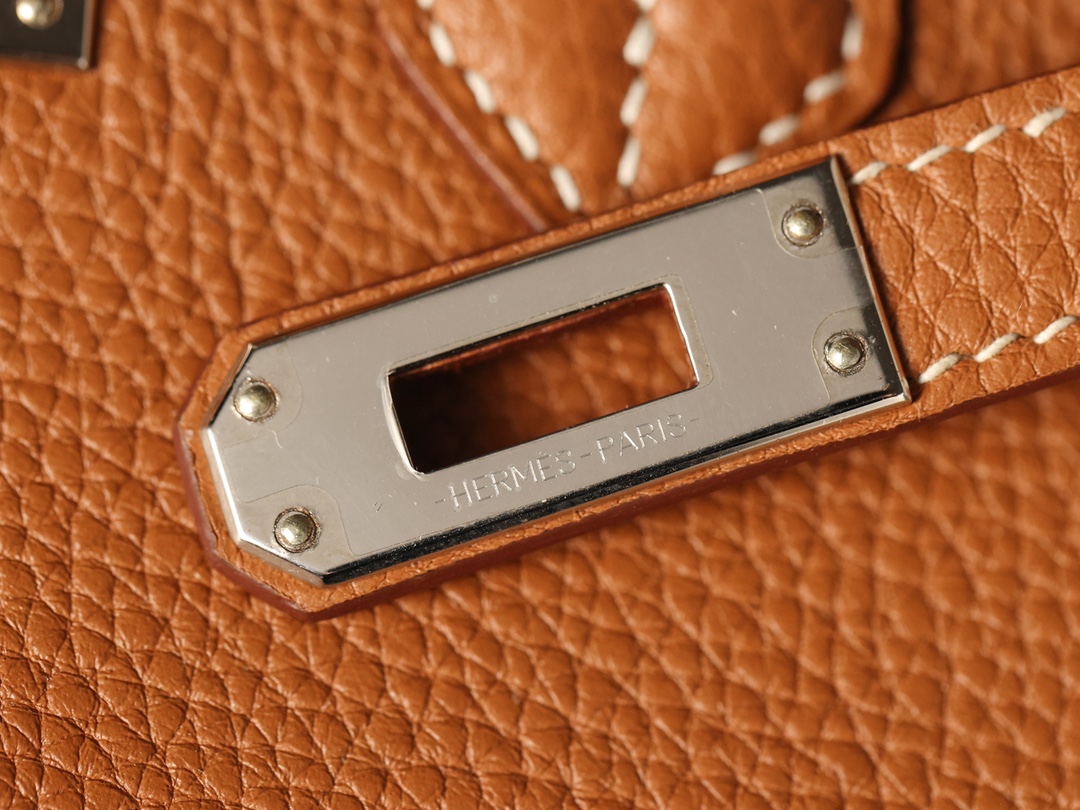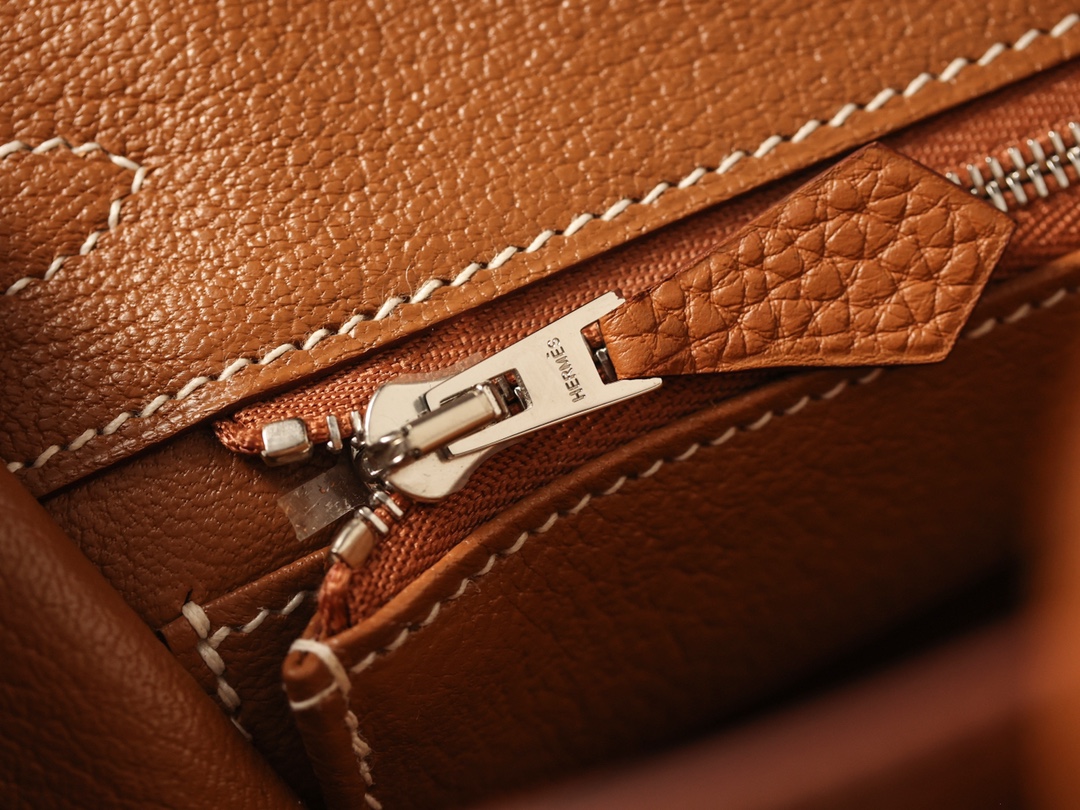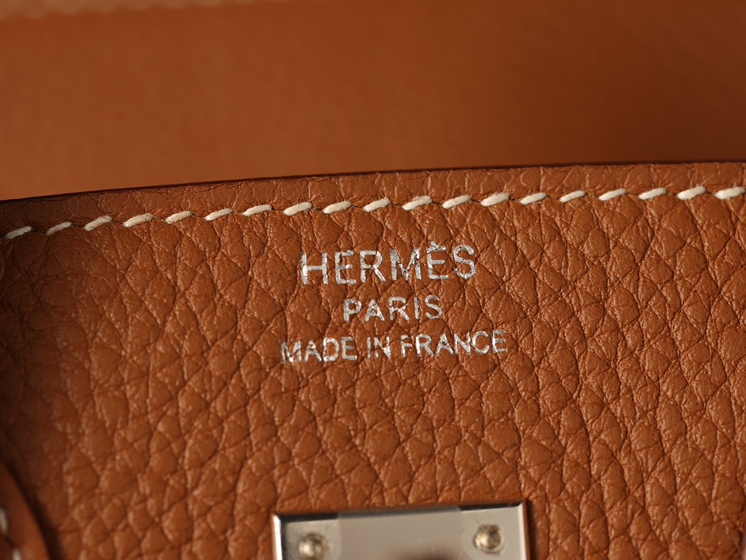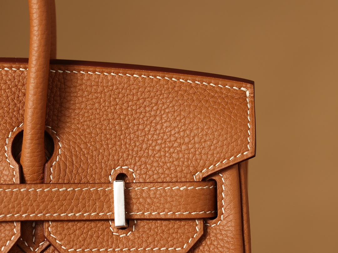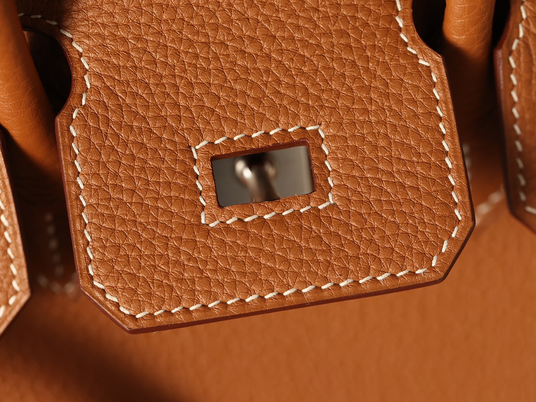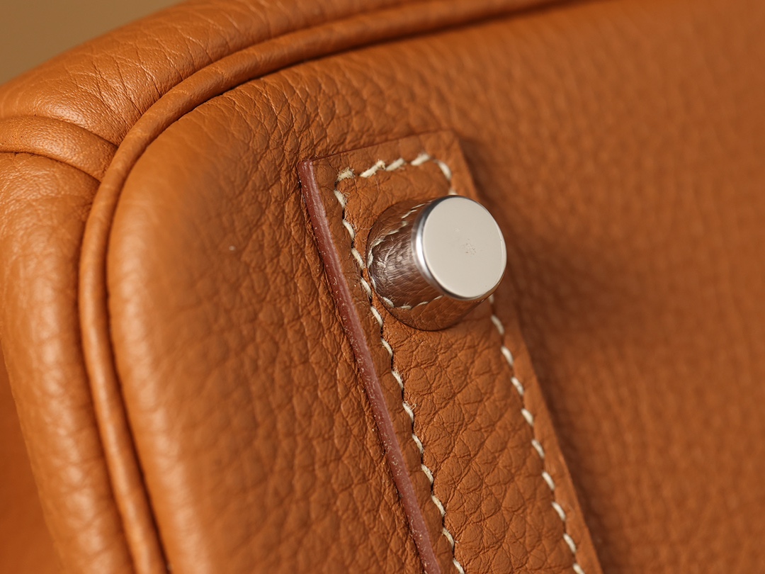 全鋼Hermes包包為這款Birkin包使用了法國進口的專用油蠟棉線,這種材料不僅與正品材料同步,而且在縫製每一針每一線時,都需要經過純手工的工藝.從正面看這款Birkin包,你可以看到多重縫合的皮革,從底部延伸到包口的設計,每一處縫線都彰顯了我們對品質的追求.與市面上那些使用機器縫線的低質產品相比,我們的手工縫線更加流暢,展現出優雅的曲線.