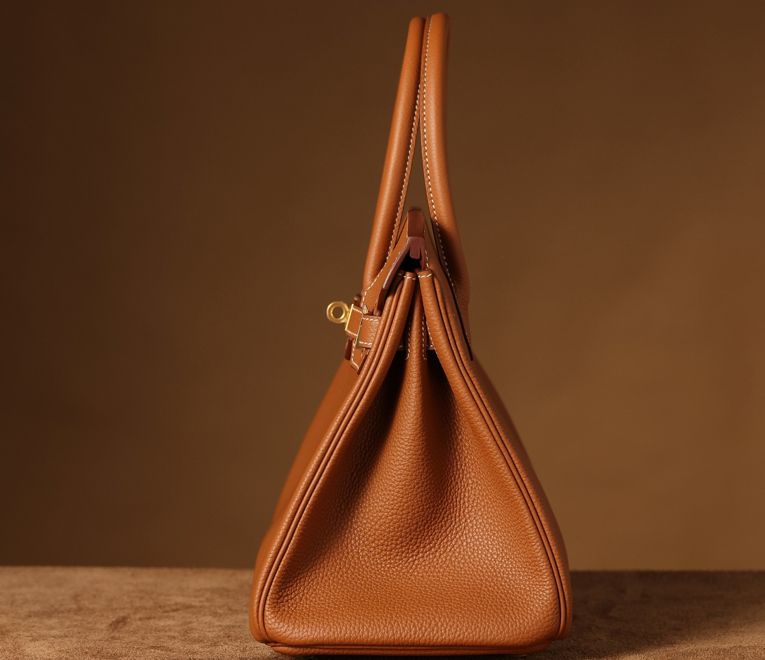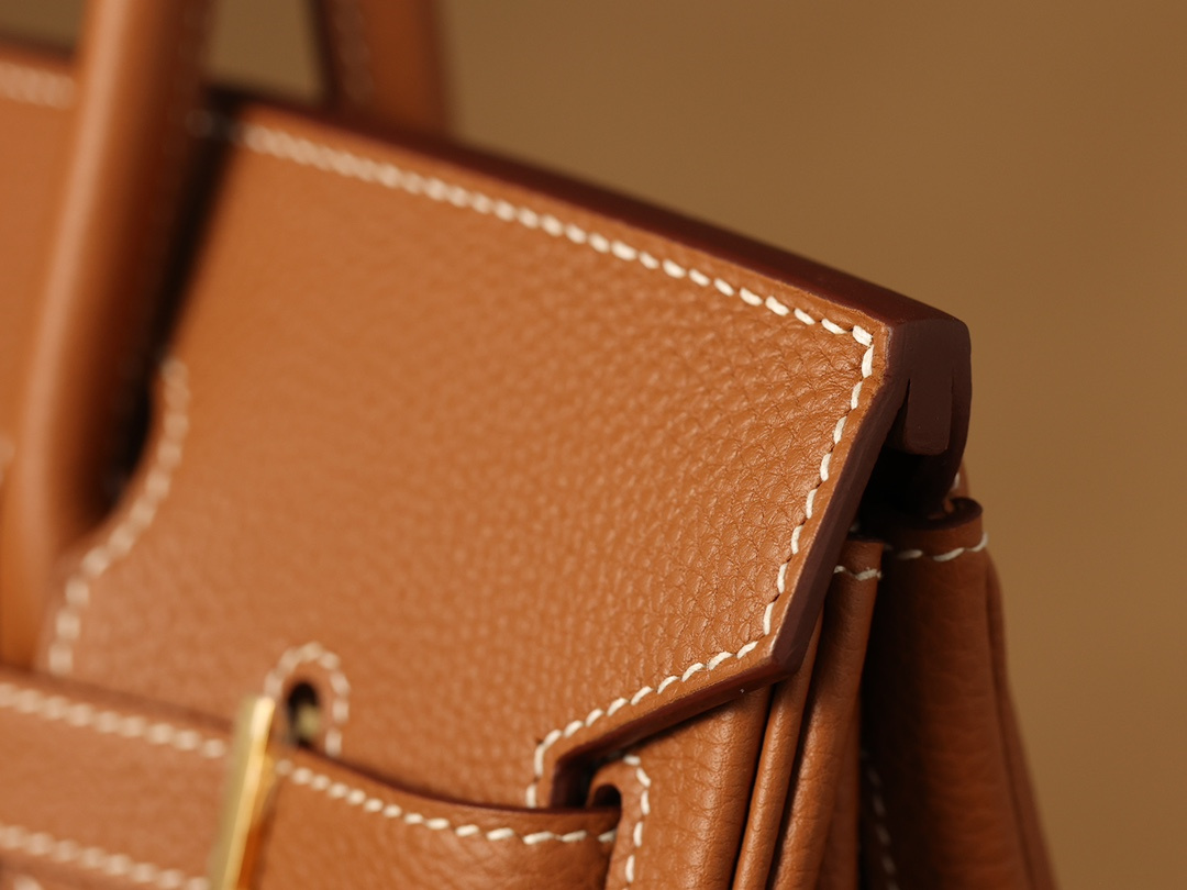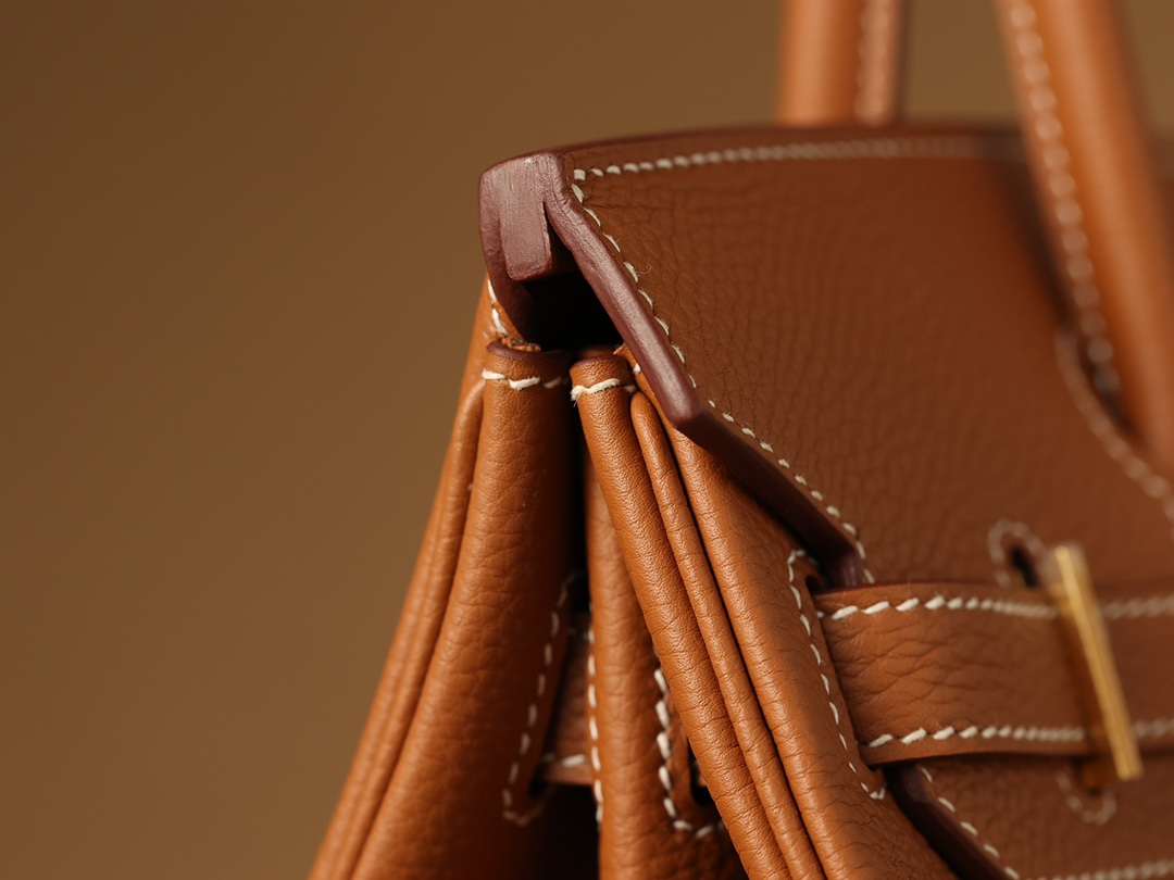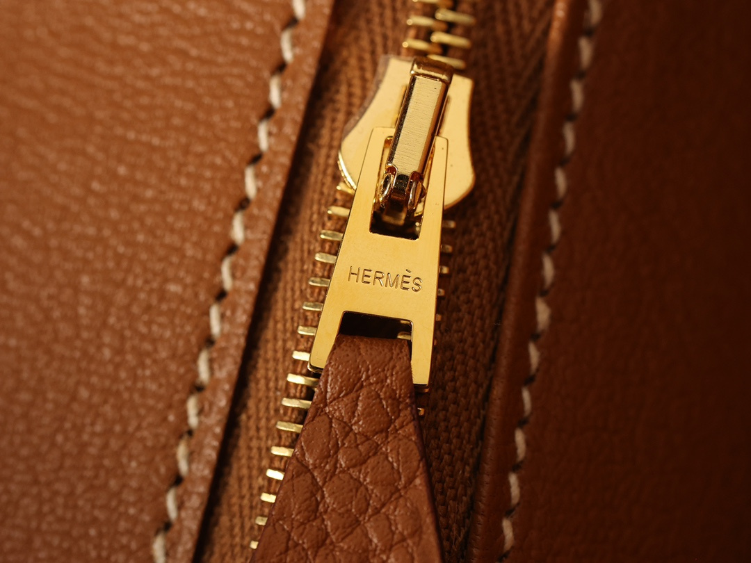 Togo皮是進口公牛皮革,只取自頸部頭層.其部分皮革具有較深紋路,後續通過特性處理便有了現存的荔枝紋.皮質顆粒大小一致,在燈光或者自然燈光下具有亮眼的光澤度.高仿Hermes鉑金包從購入專櫃正品開模分解,從皮革到縫合成型包體每一道工序根據還原正品細節處理為主,而此次採用進口的真牛皮也是如此.