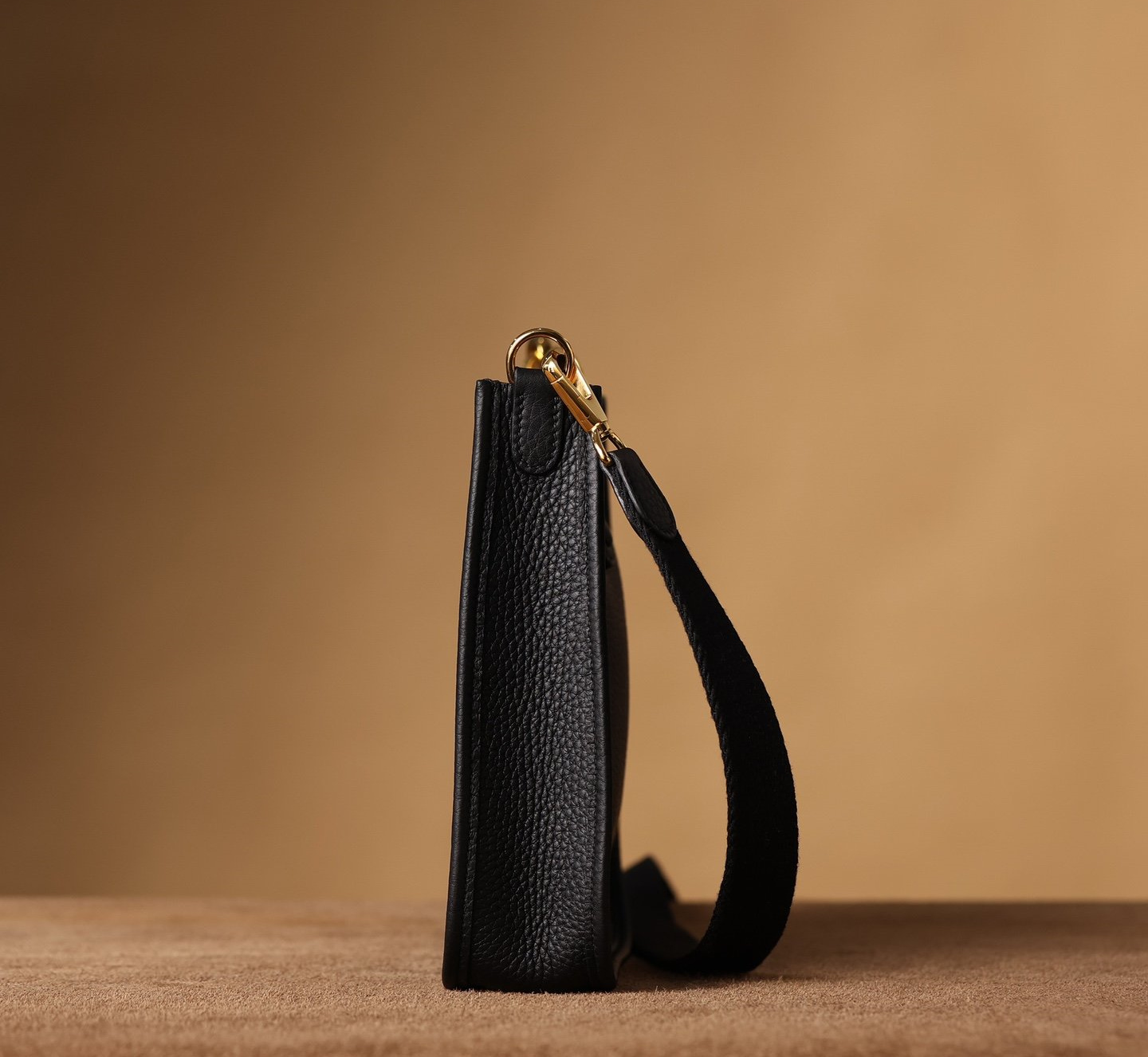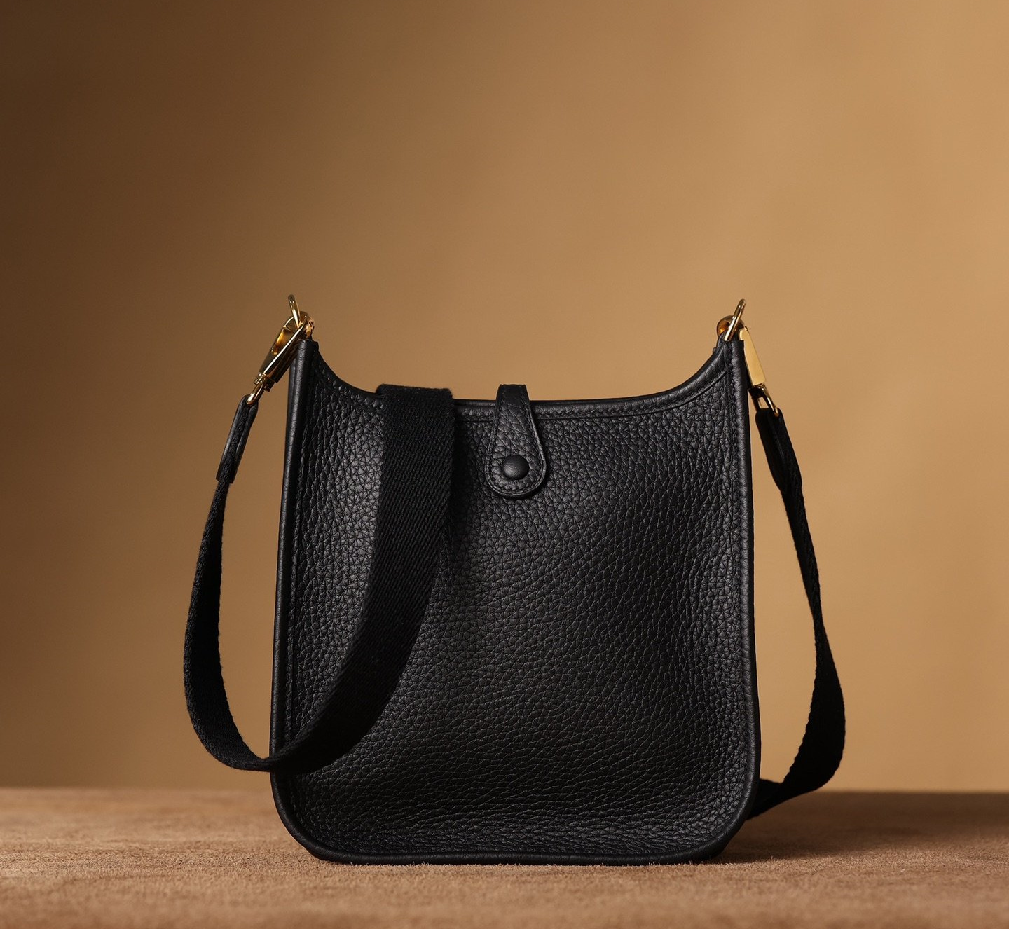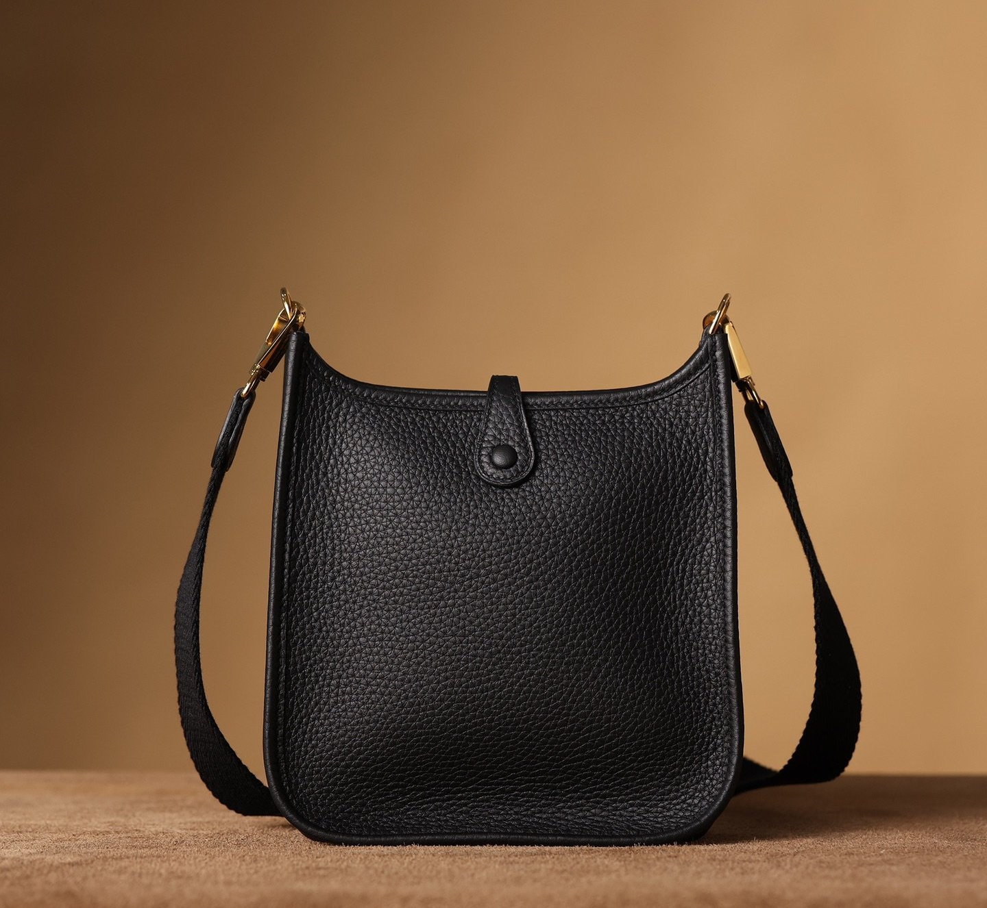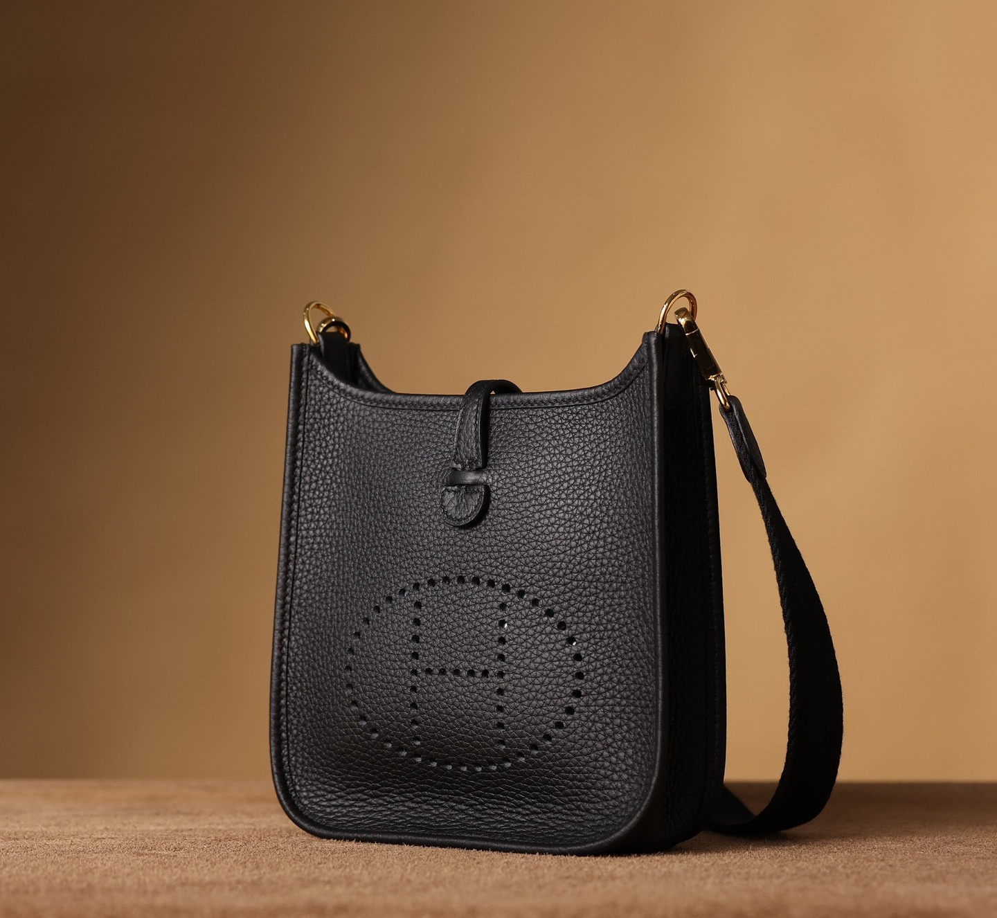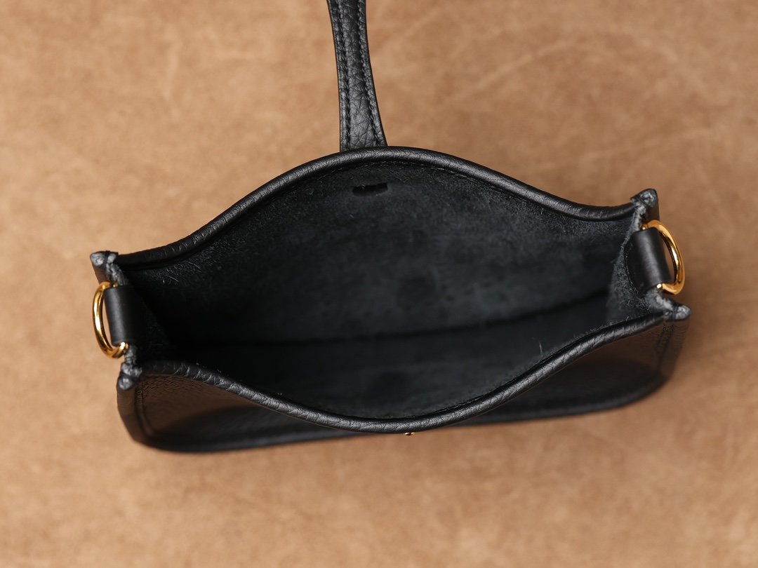 全新推出的頂級高仿HermesEvelyne迷你單肩包,采用專業純手工技藝,展現出仿製市場中的頂尖之作.這款黑金色Evelyne包,精準的復製了Hermes原品的精細細節.使用了高級進口TaurillonMaurice小牛皮-