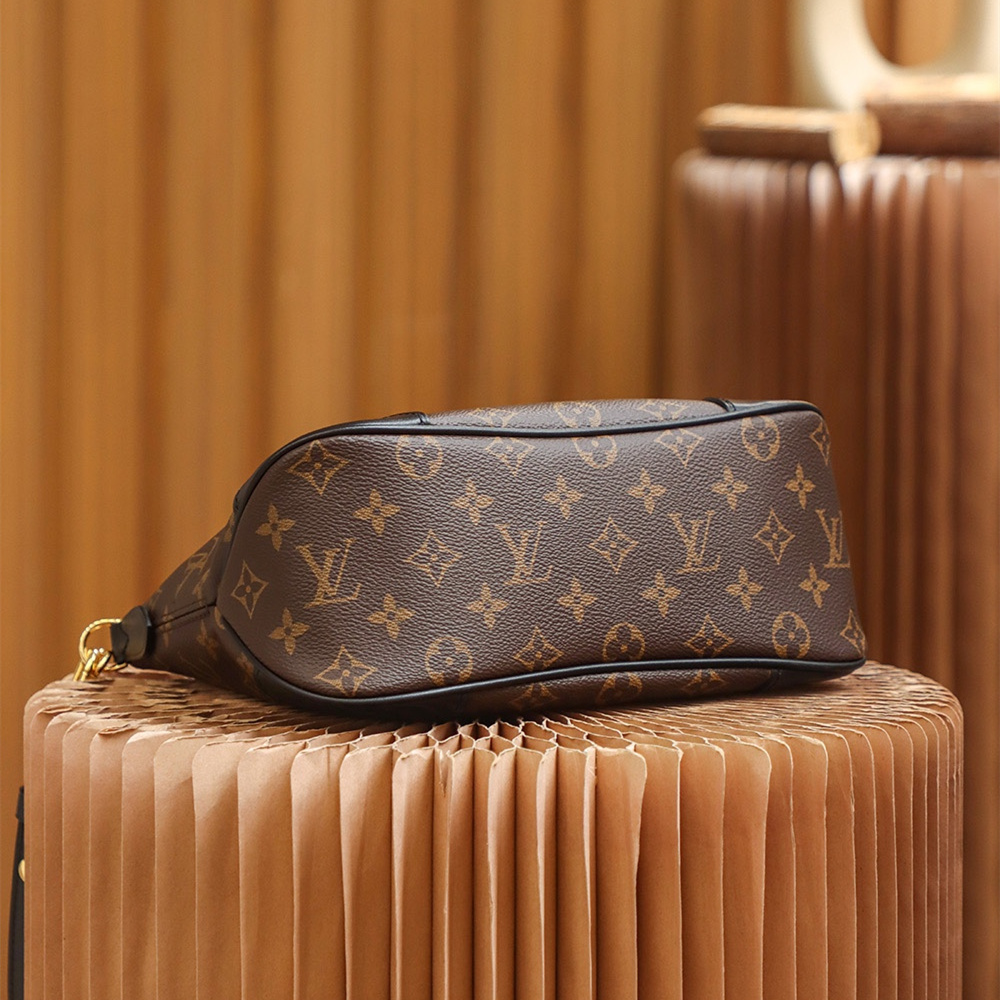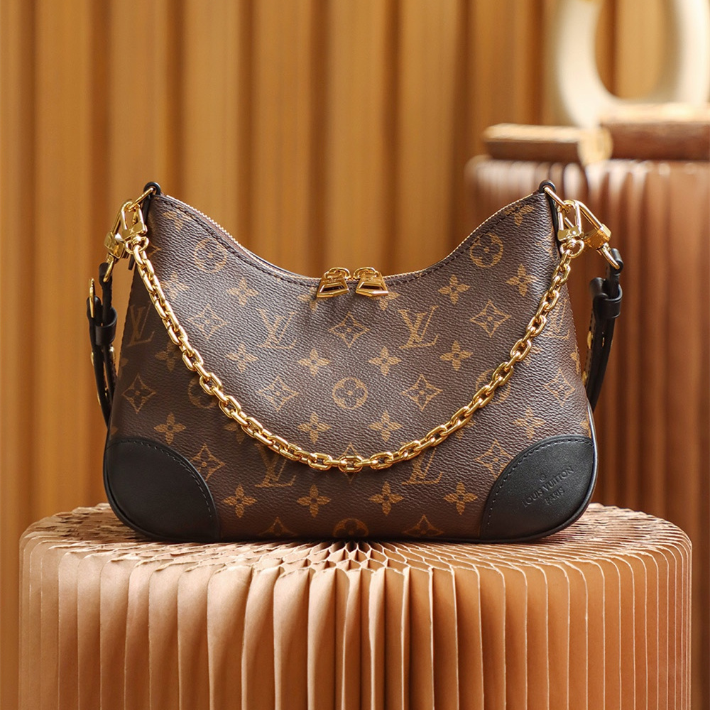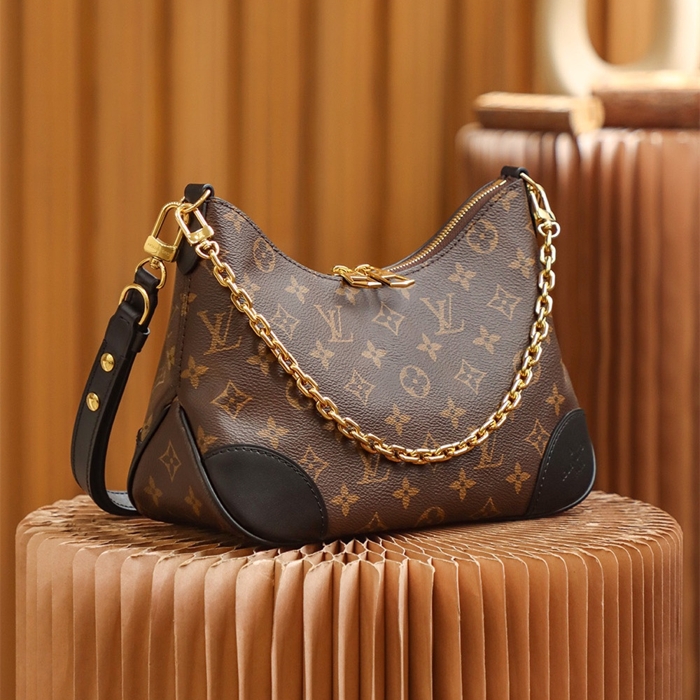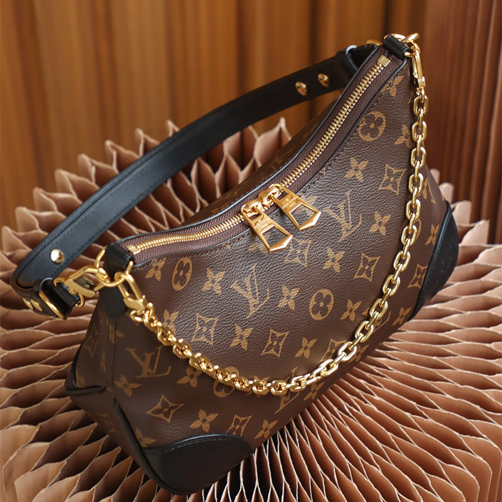 Boulogne腋下包包系列,展現了獨特的私人訂製風格.這款原單LV腋下包配備了對版正品的金屬鏈條,細節上與原裝正品相比,精準還原了顏色和打磨工藝.包身設計全新亮相,被譽為高仿LV女包中的佼佼者.主要由Monogram帆布和精選進口皮革邊緣構成,與傳統經典款相比,在設計上呈現出牛角餐包的形狀,更加時尚的風格.