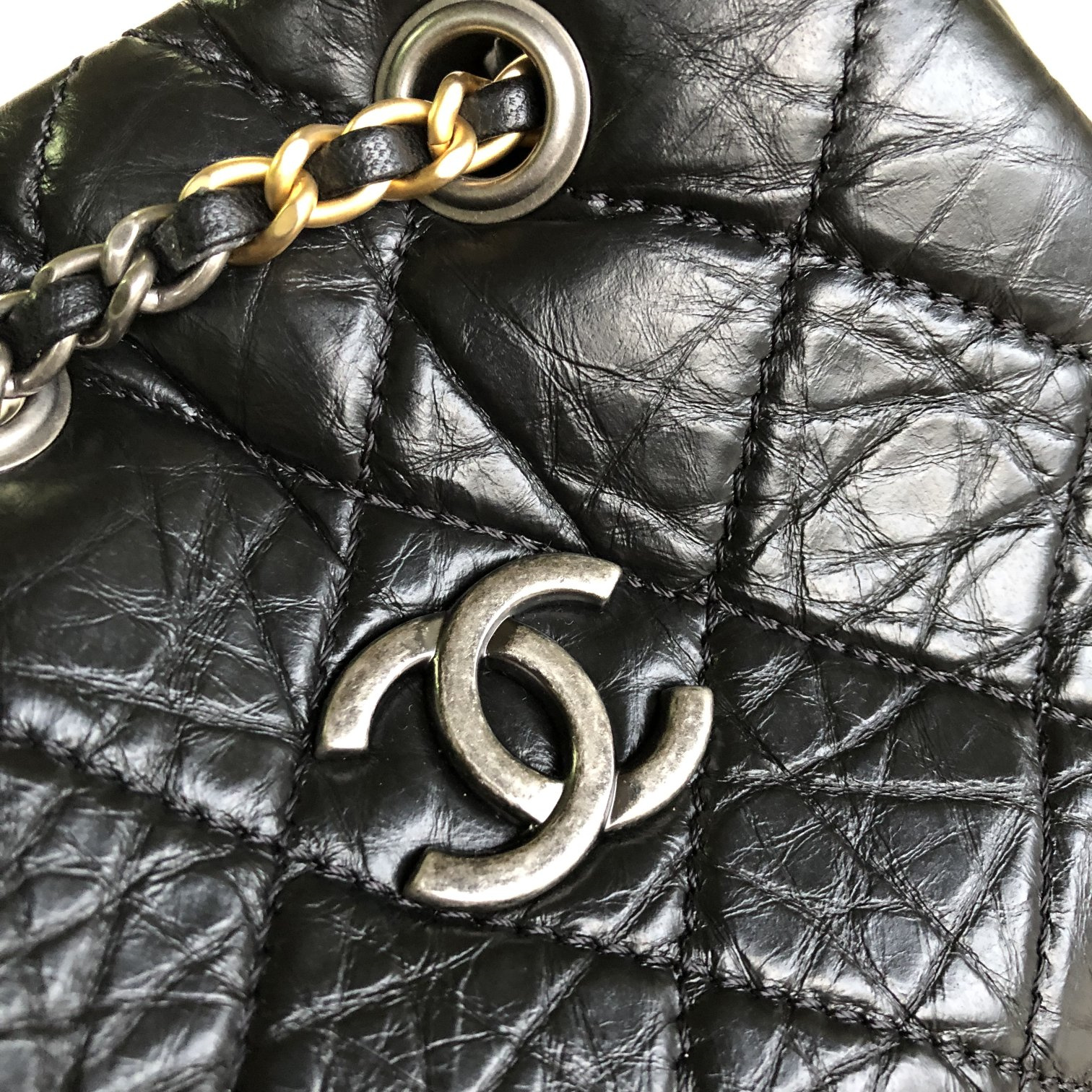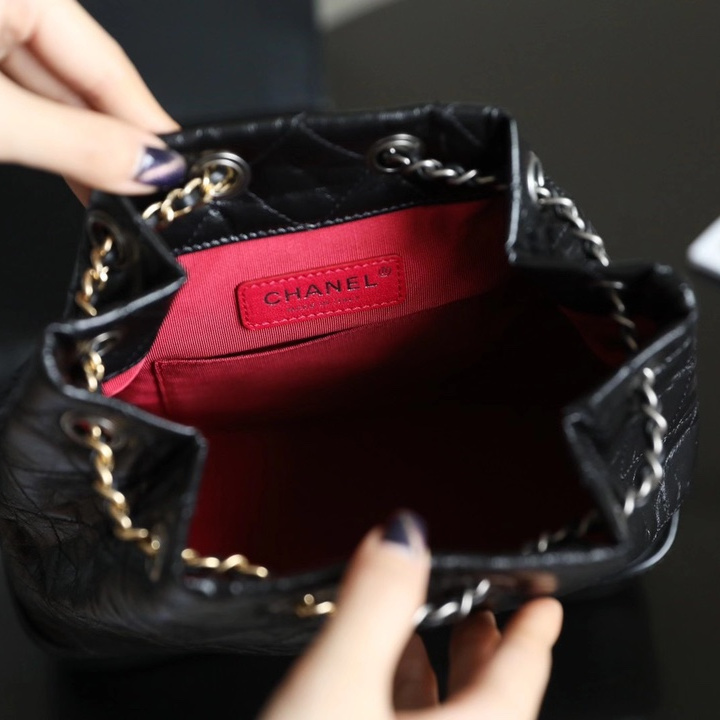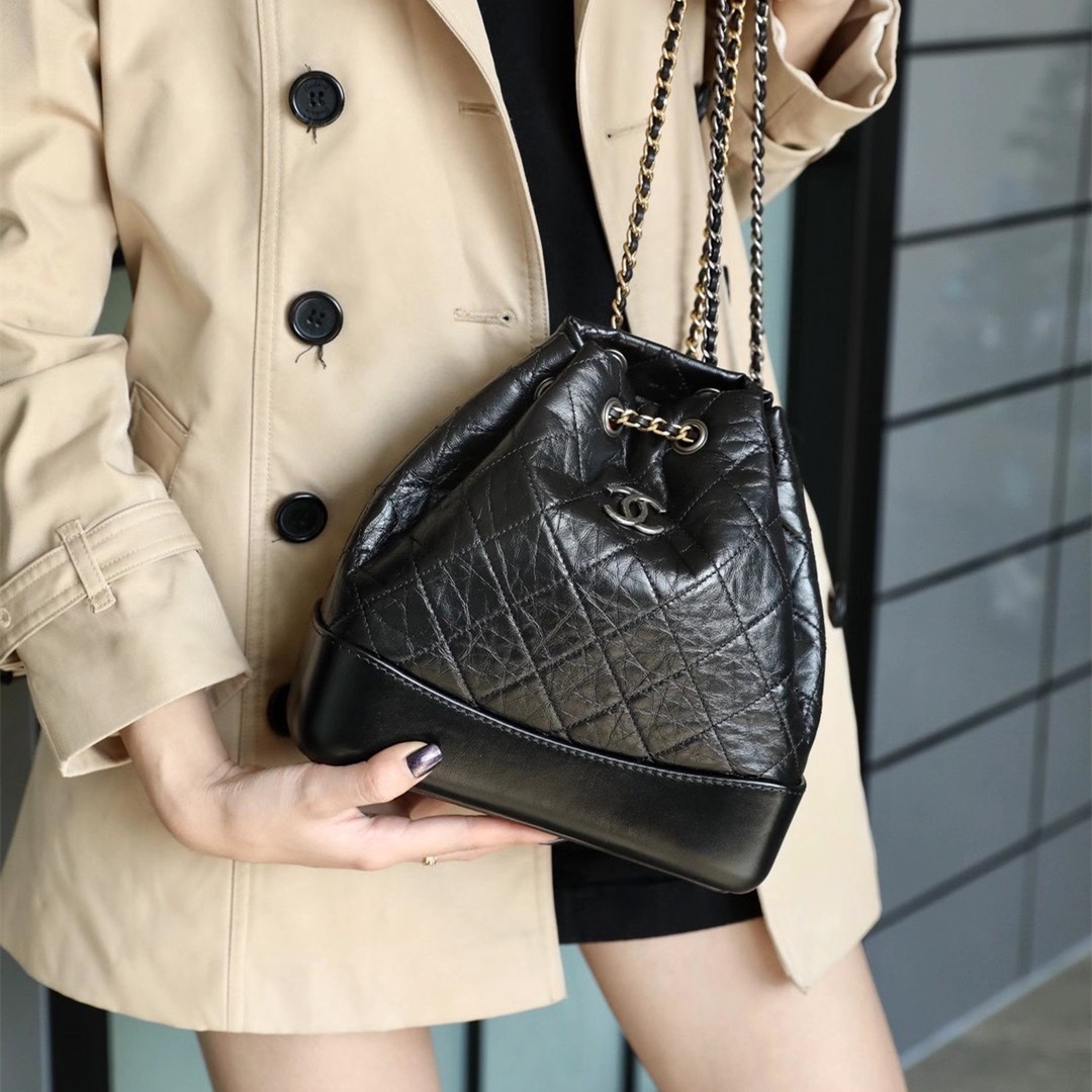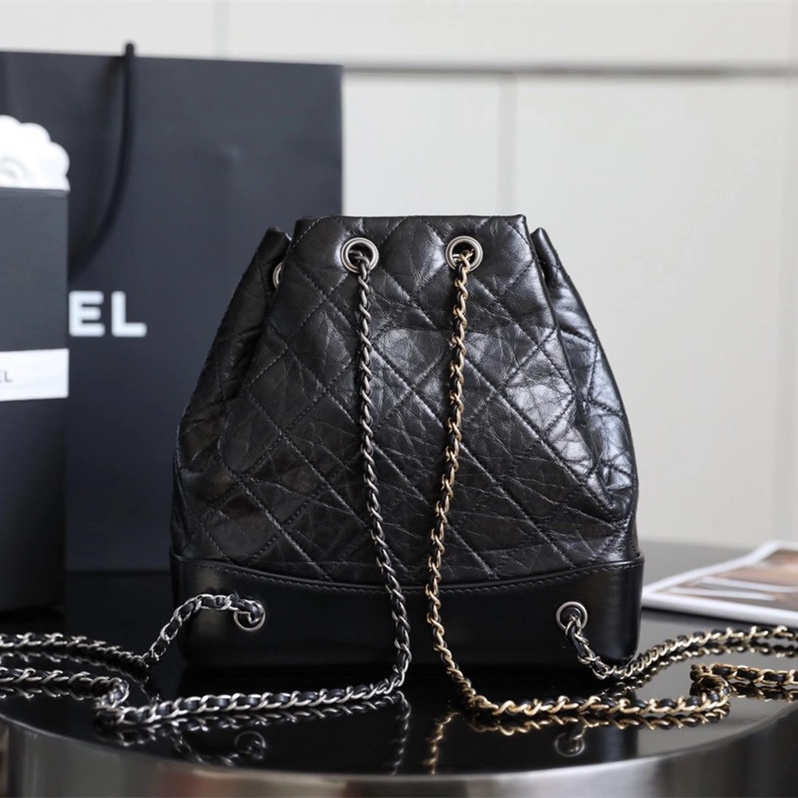 原單Chanel背包是以小香家族中最為經典的款式流浪包作為基礎,以配備雙肩皮穿鏈條與束口式的形狀全新打造出別有風味的雙肩背包.詮釋了復古與當今流行元素的雙肩背包主打了潮流時尚的前衛設計.整個黑皮革的應用,高級感與個性感有感而發.