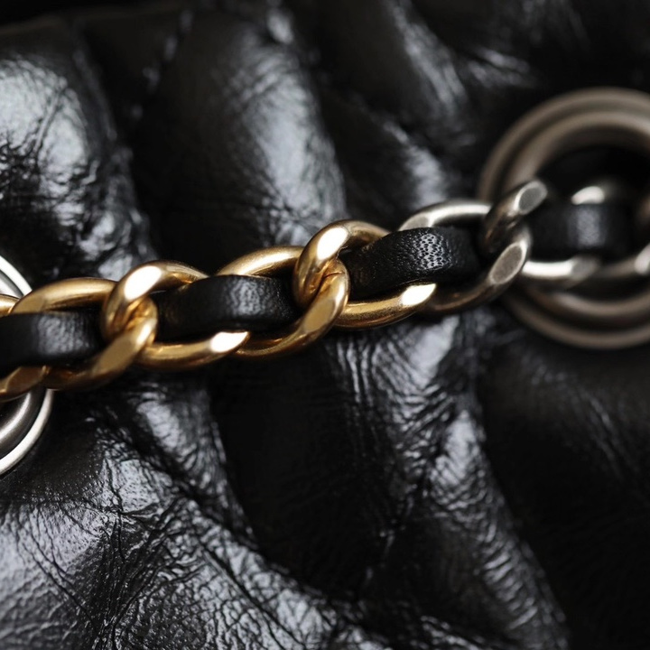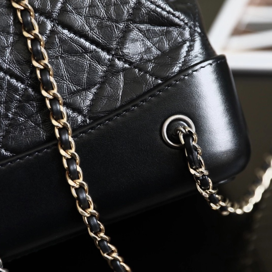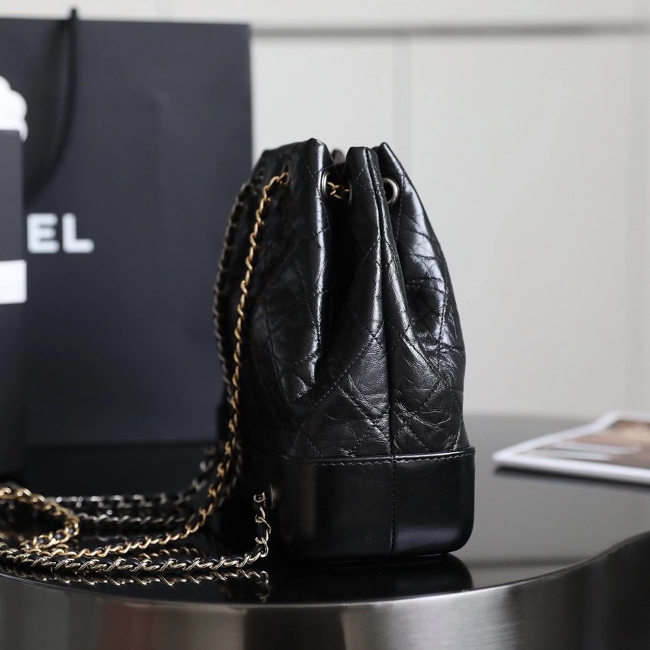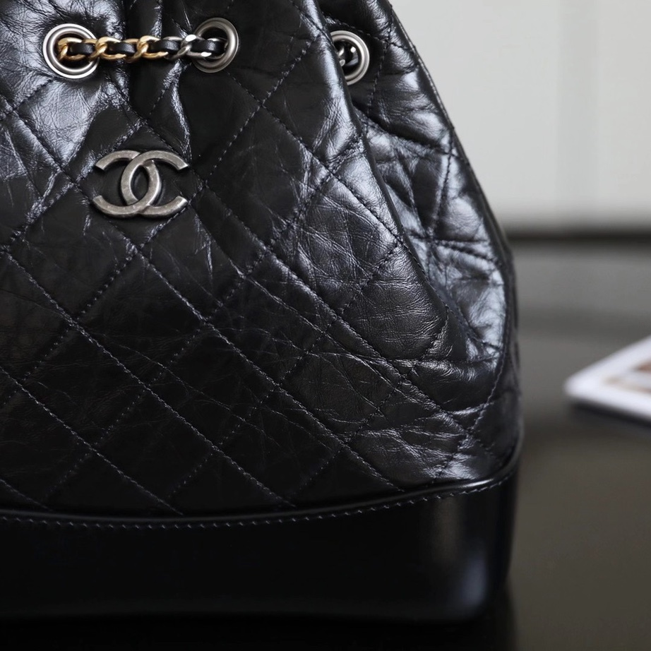 原單Chanel背包是以小香家族中最為經典的款式流浪包作為基礎,以配備雙肩皮穿鏈條與束口式的形狀全新打造出別有風味的雙肩背包.詮釋了復古與當今流行元素的雙肩背包主打了潮流時尚的前衛設計.整個黑皮革的應用,高級感與個性感有感而發.