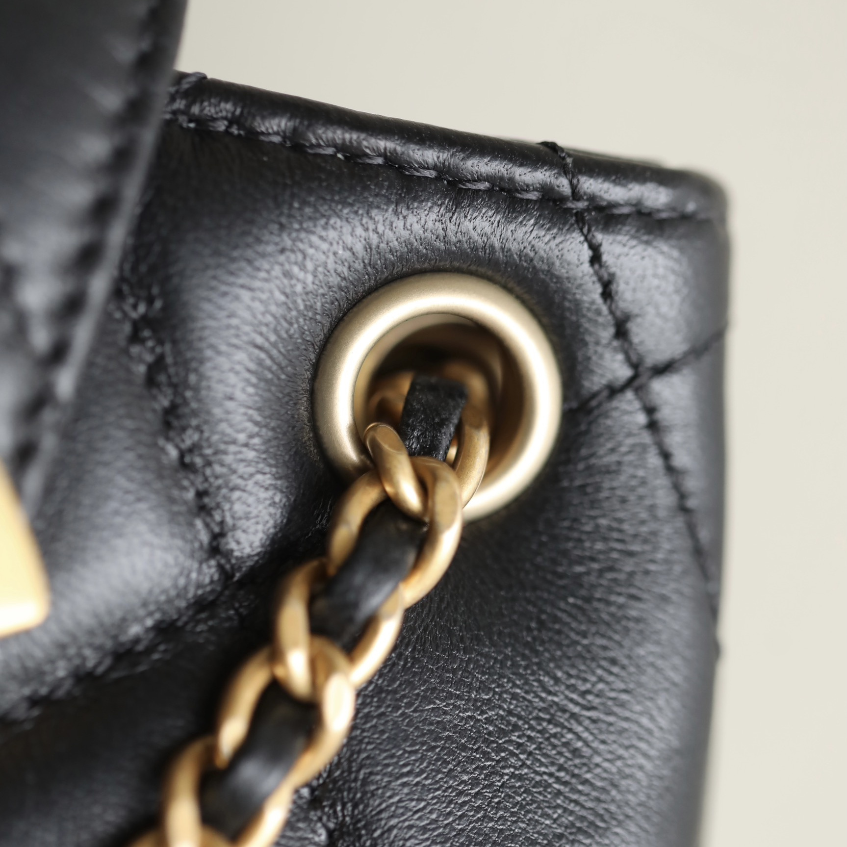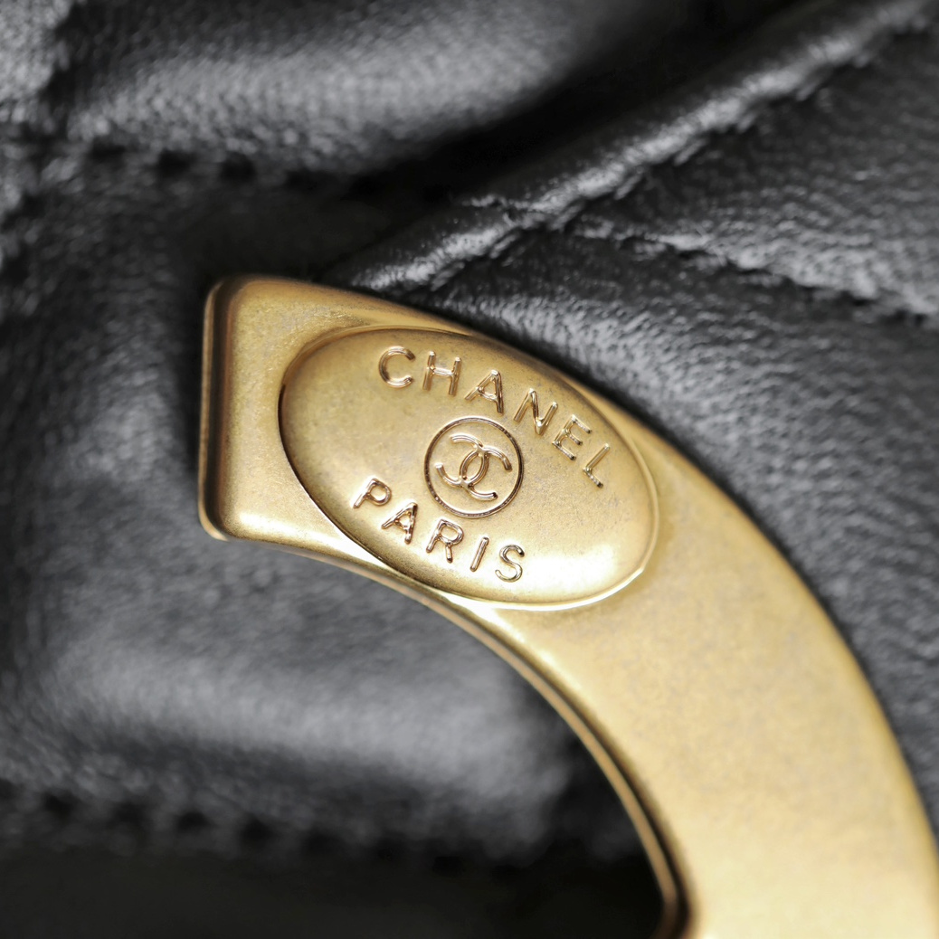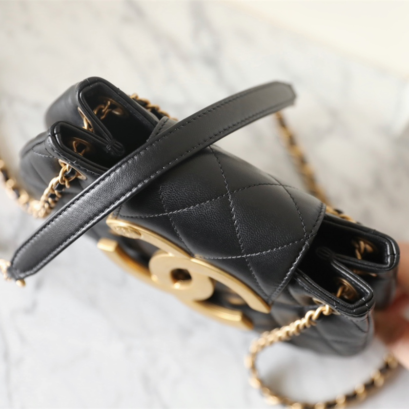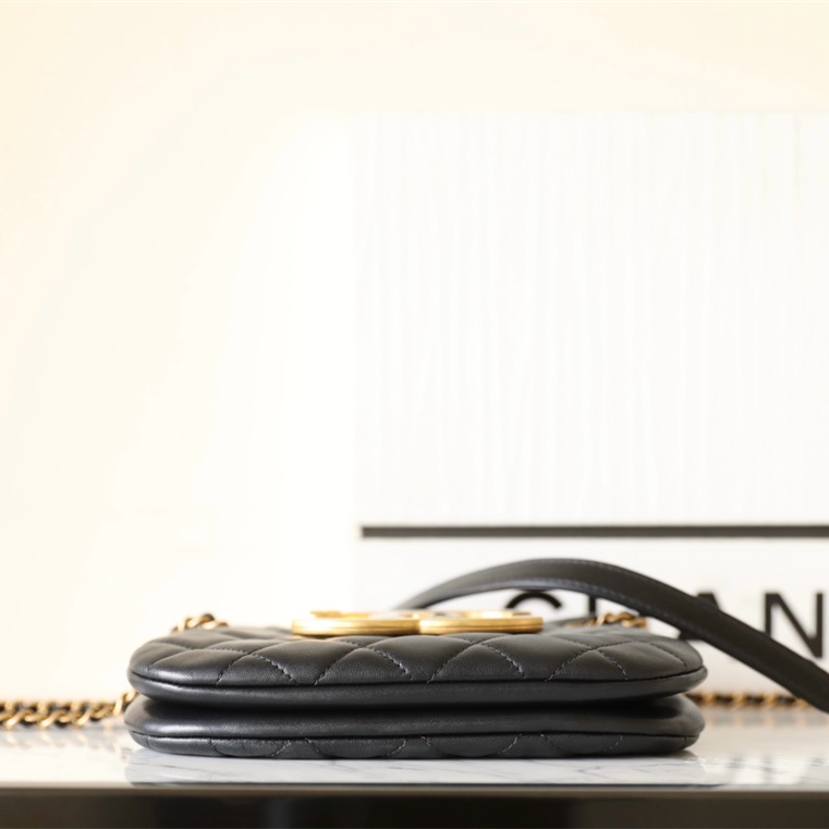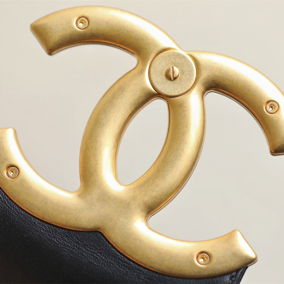 LOGO和圓弧度設計,融合了古典魅力與現代優雅.黑色皮革材質的選擇,完美契合了當代女性的審美理念.根據原版精確1:1復製的這款包包,不僅在包身結構上輕薄,而且提供了靈活的雙滑鏈條設計,適應多樣的背法.