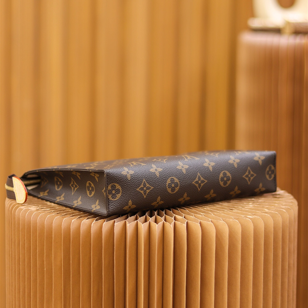 手拿包作為男女必備的包款,可供日常出街放置零錢和手機或者是其他單品,輕鬆攜帶出時尚的視覺感.這一隻高仿LV手拿包是經過洗漱包原有的版型進行改造而成.簡單的設計風格只需要搭配經典老花的帆布,打造出高級感而從容的呈現出百搭的風格.