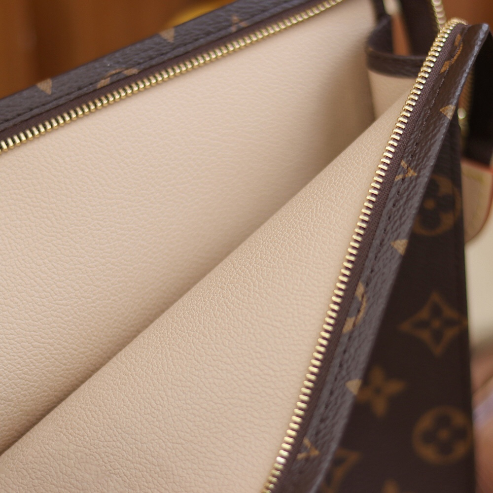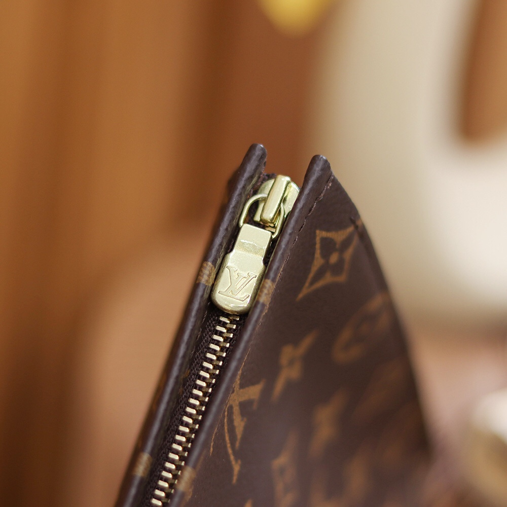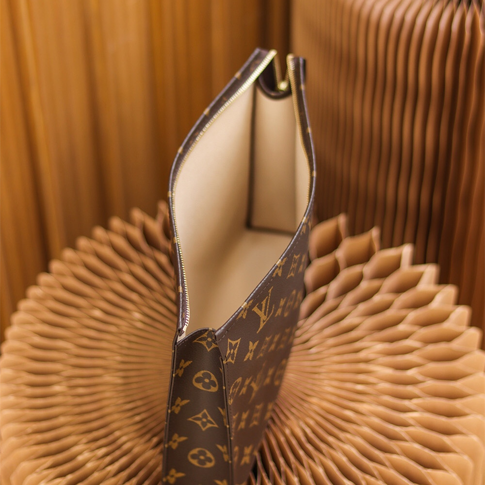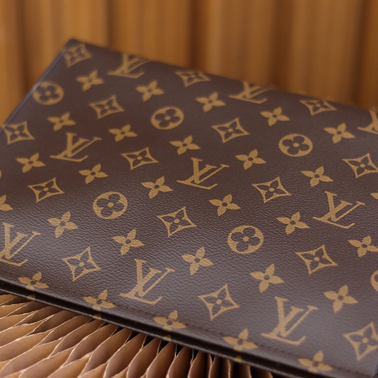 原單LV手拿包經典的尾巴拉鏈設計,即可手拎也可肩夾的攜帶方式.頂級版本出自純手工製作而成的精髓所在,做到對版的情況下離不開LV官方原廠的Monogram帆布,根據原版尺寸進行分解,後續以裁剪的方式將其對應專櫃一致的印花標準,高仿包包1:1定位還原.