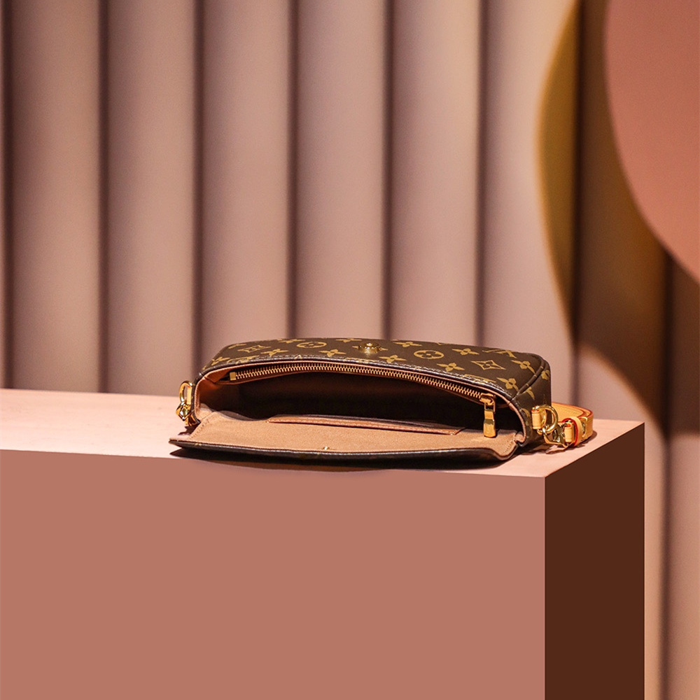 腋下包是眾多女士樂在其身打麻將娛樂是經常所使用到的包具,其原理是方便攜帶小零錢並且裝置單品便攜開合拿放.高仿LV麻將包繼承了原裝正品該有的設計,以原廠Monogram帆布作為主材質,保證每一處印花都經過對比專櫃細節處理,做到百分之99吻合,高仿包包專業復刻無任何瑕疵.