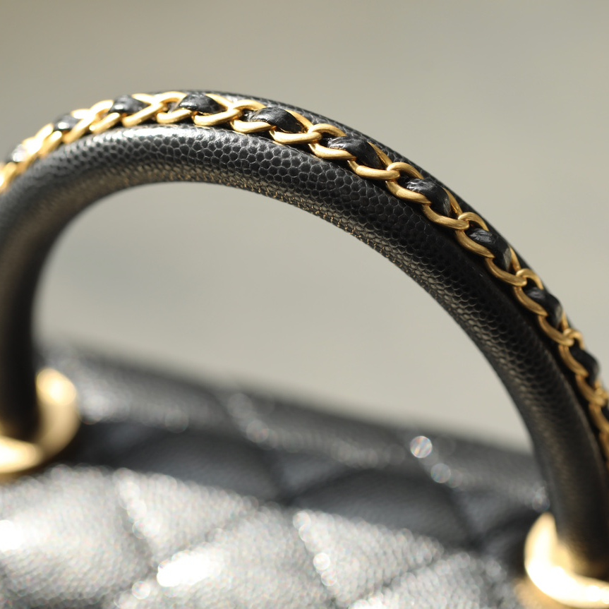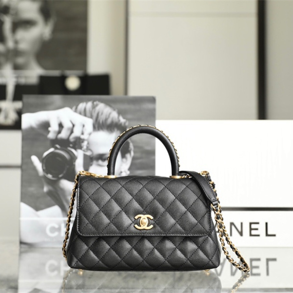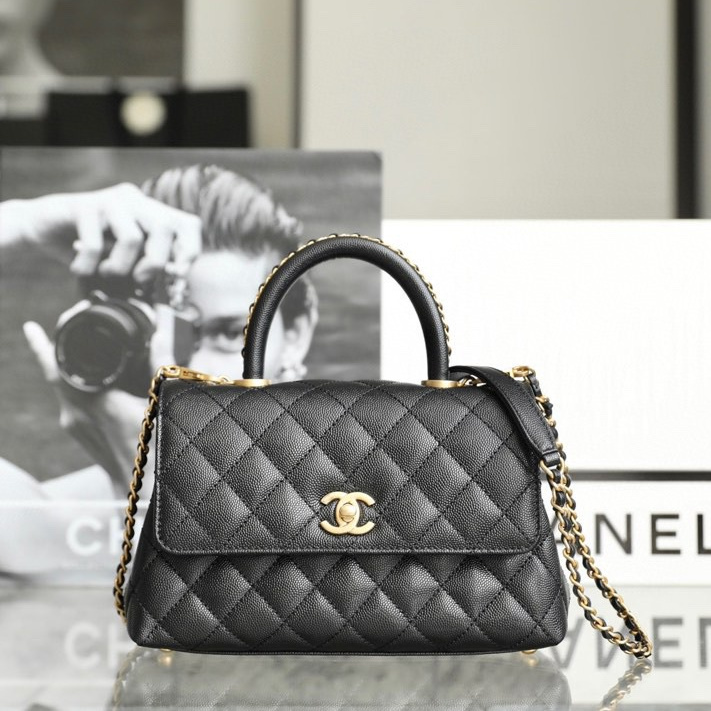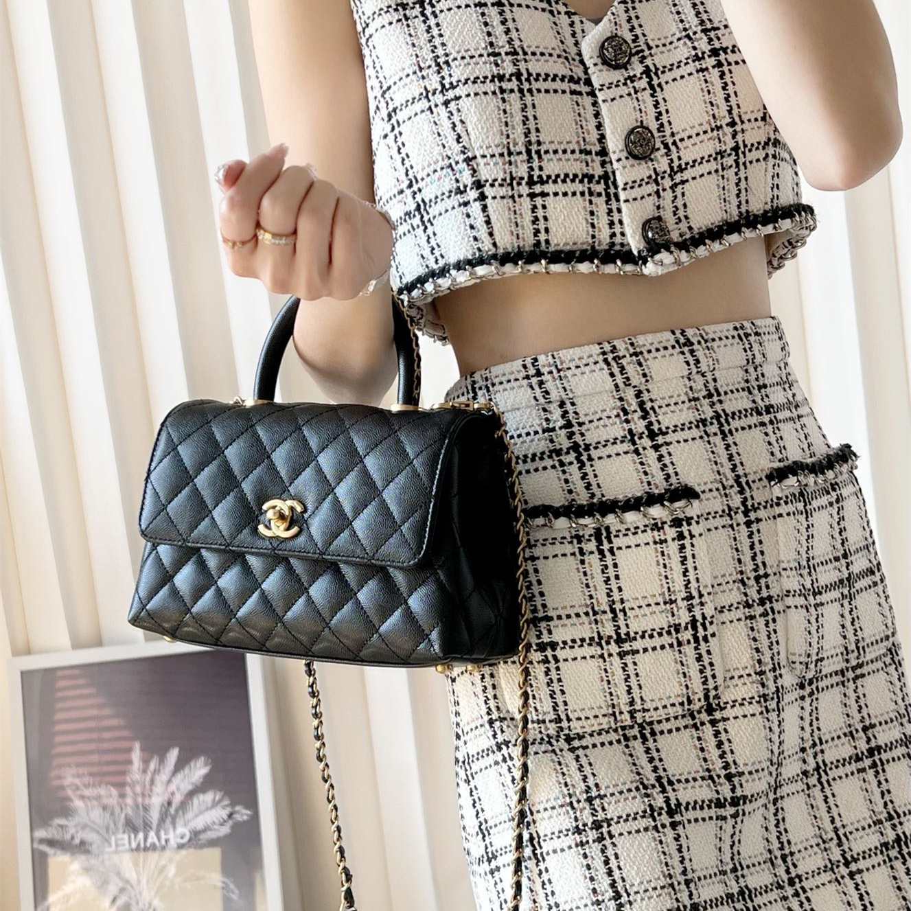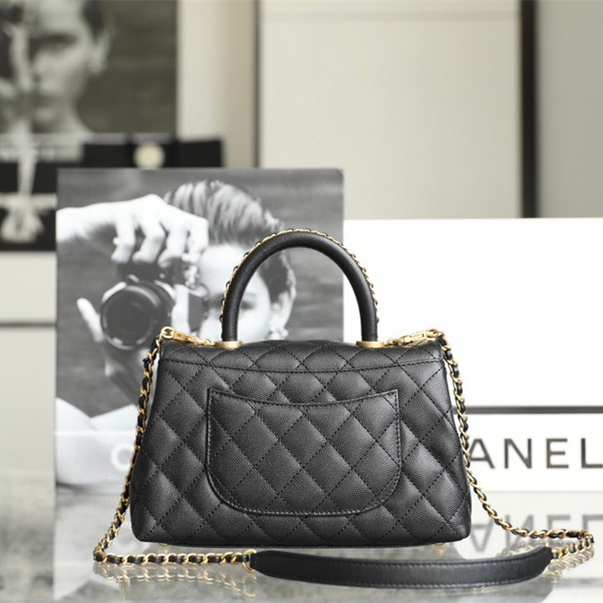 奢侈品高仿香港獨家發售Chanel23P系列手柄口蓋包,作為香奈兒標誌性的包包之一,每一款都有獨特的味道,而Cocohandle版本會更加人性化,多個隔層口袋設計,手柄設計則是皮穿鏈,高仿Chanel女包使用的做舊五金經過24K厚鍍工藝完成製作,酸堿性測試杜絕掉色氧化.