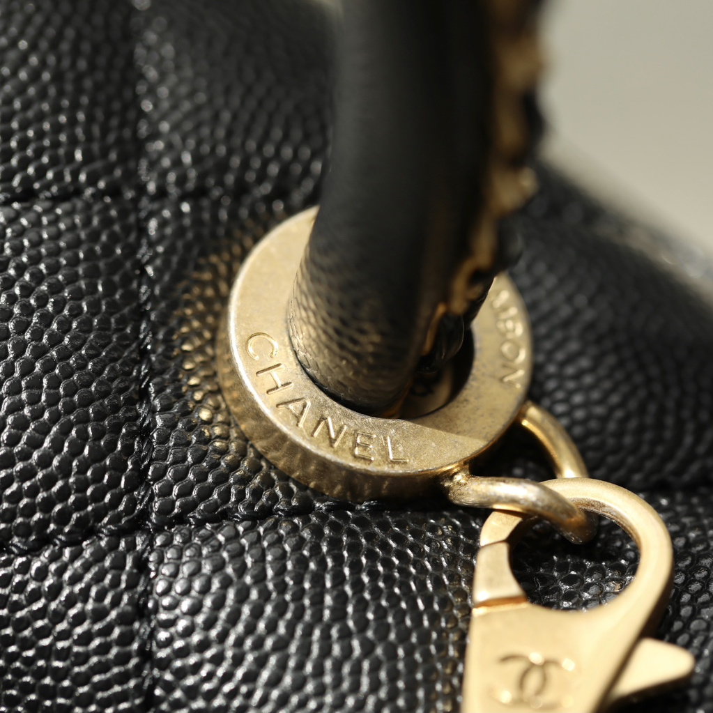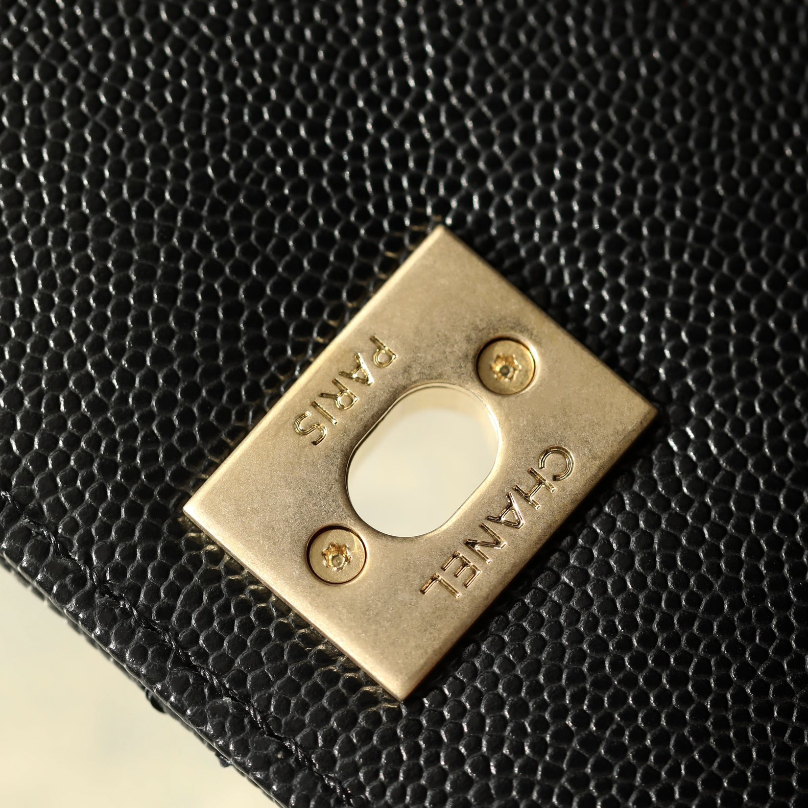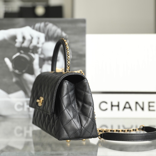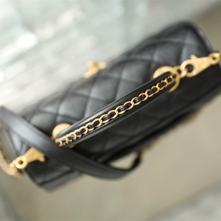 奢侈品高仿香港獨家發售Chanel23P系列手柄口蓋包,作為香奈兒標誌性的包包之一,每一款都有獨特的味道,而Cocohandle版本會更加人性化,多個隔層口袋設計,手柄設計則是皮穿鏈,高仿Chanel女包使用的做舊五金經過24K厚鍍工藝完成製作,酸堿性測試杜絕掉色氧化.