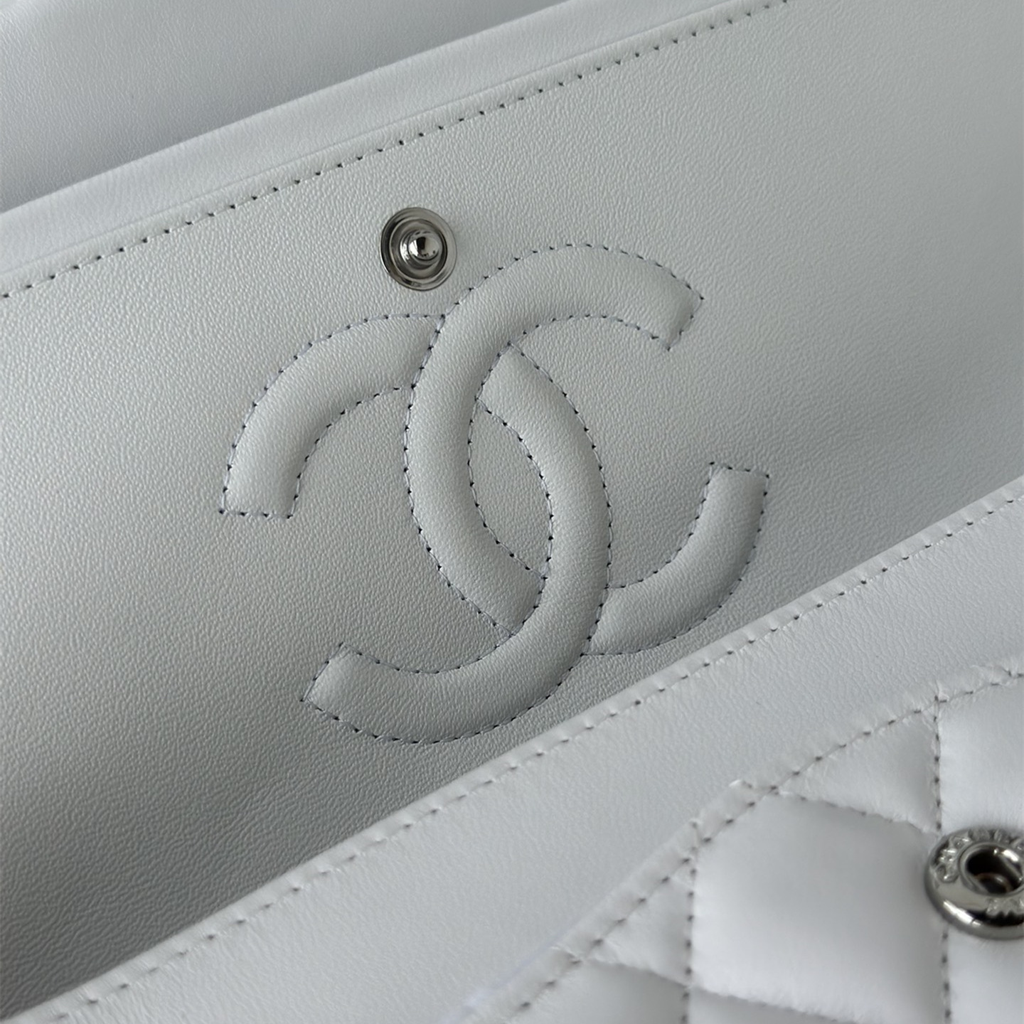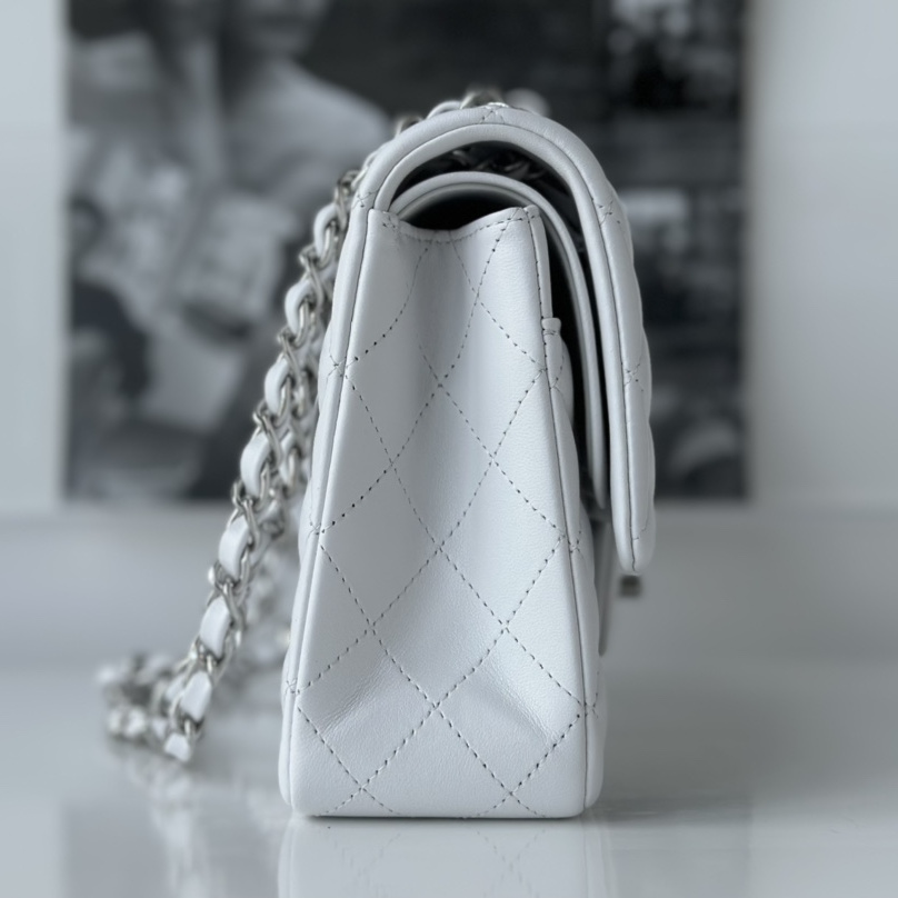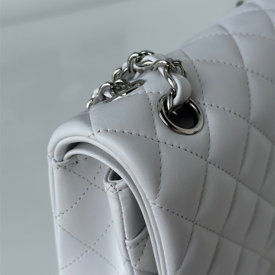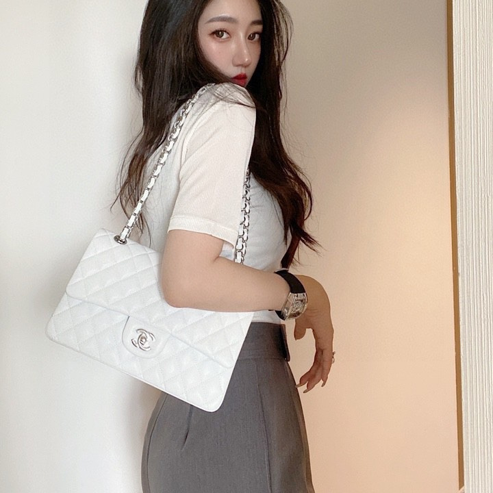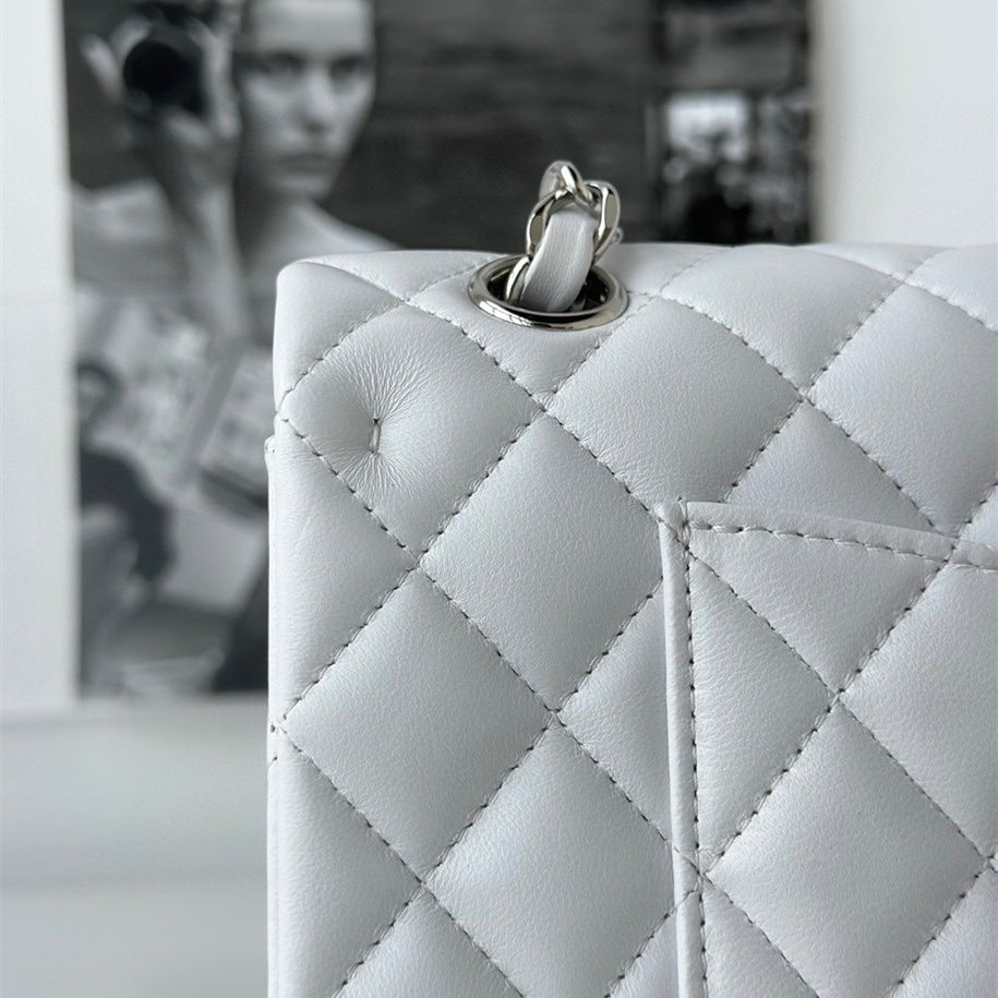以傳統的口蓋包作為主體設計,具有高級感同時出淤泥而不染的白色小羊皮佔據絕大部分的高端品位,其中包身結構依舊是根據原裝正品Chanel高仿包進行1:1打造還原.每一處包體的手感延伸到體積大小均為百分之99的還原.毫無差別的製作才能夠體現出Chanel復刻A貨的精益求精.