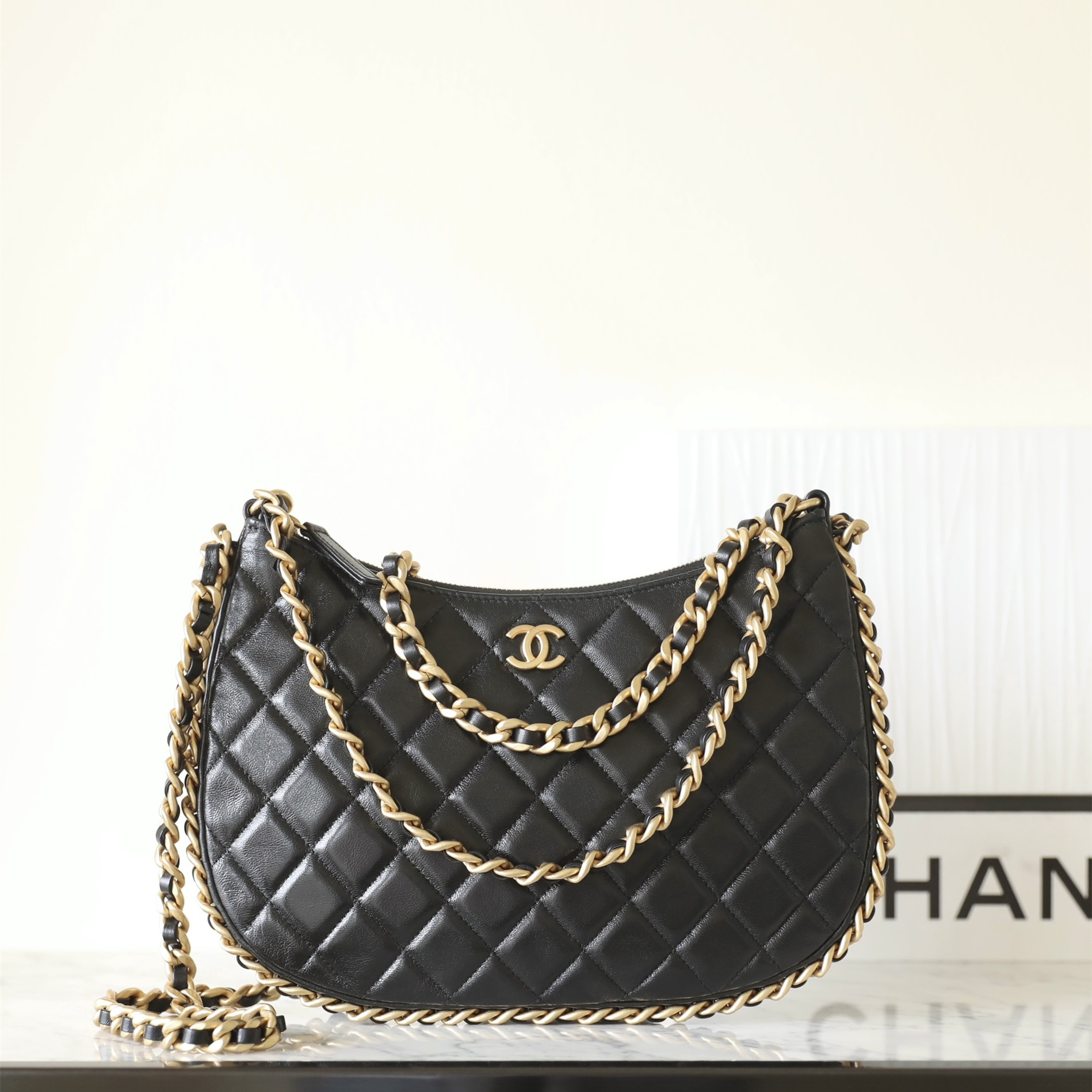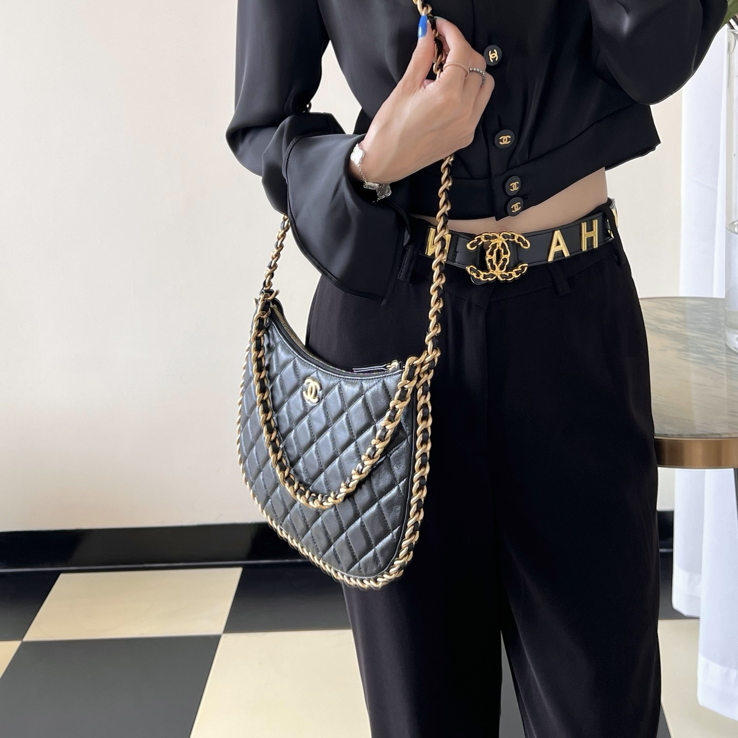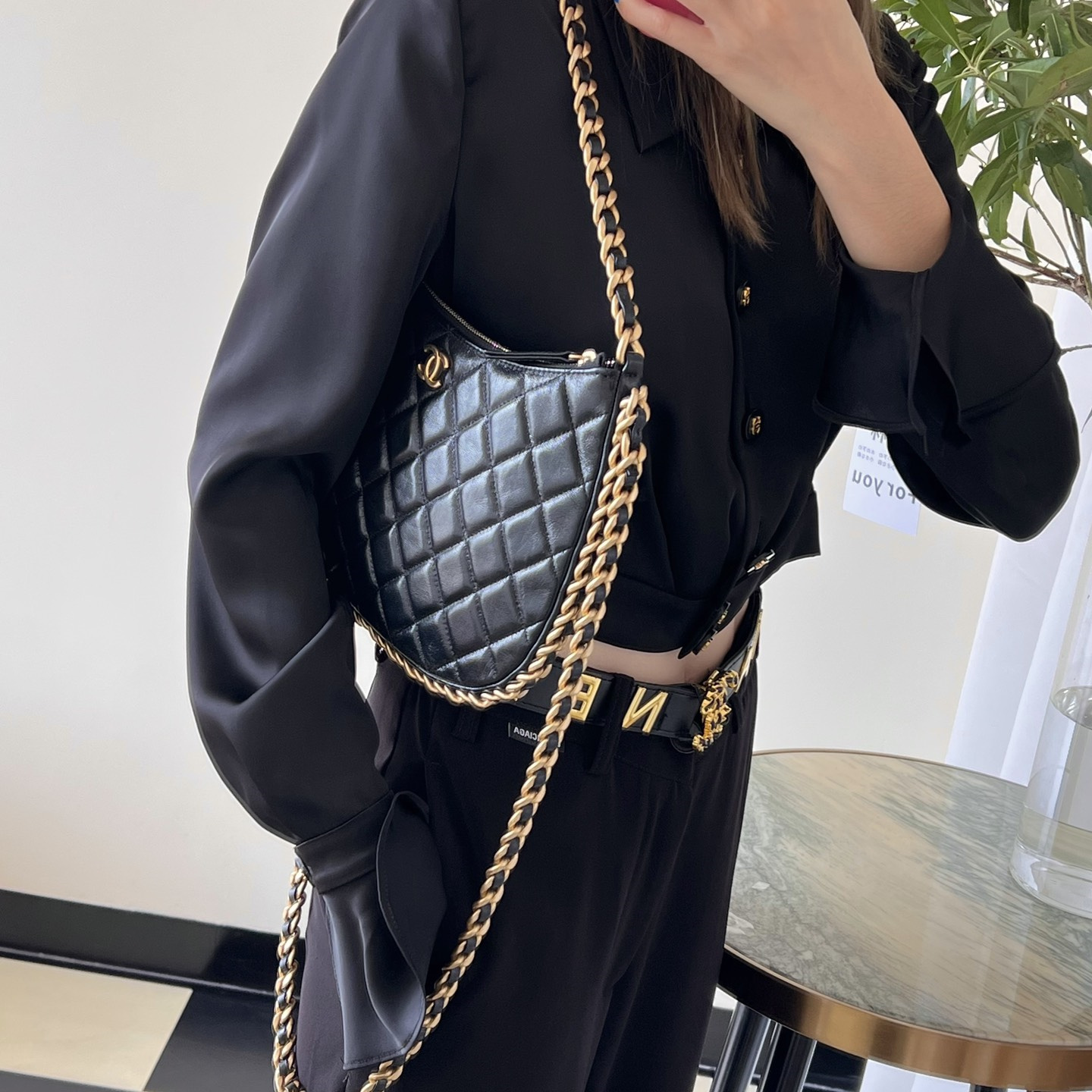 香港高仿包Chanel鏈條單肩包23B系列黑色大號免檢版