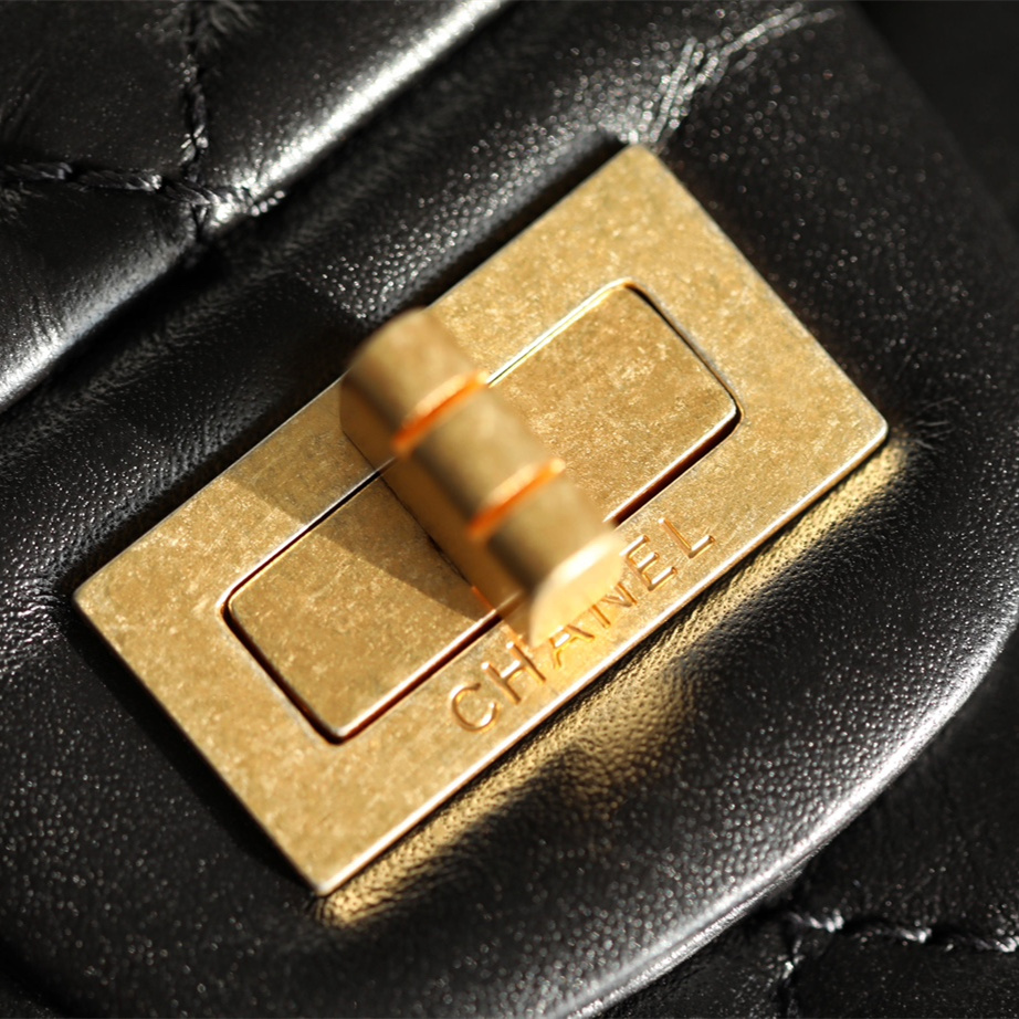 高仿Chanel包包中2.55系列是最暢銷的產品之一,每一款都有獨特的魅力存在.這一隻2.55黑色古金大號款精選與原廠一致的真皮革打造-