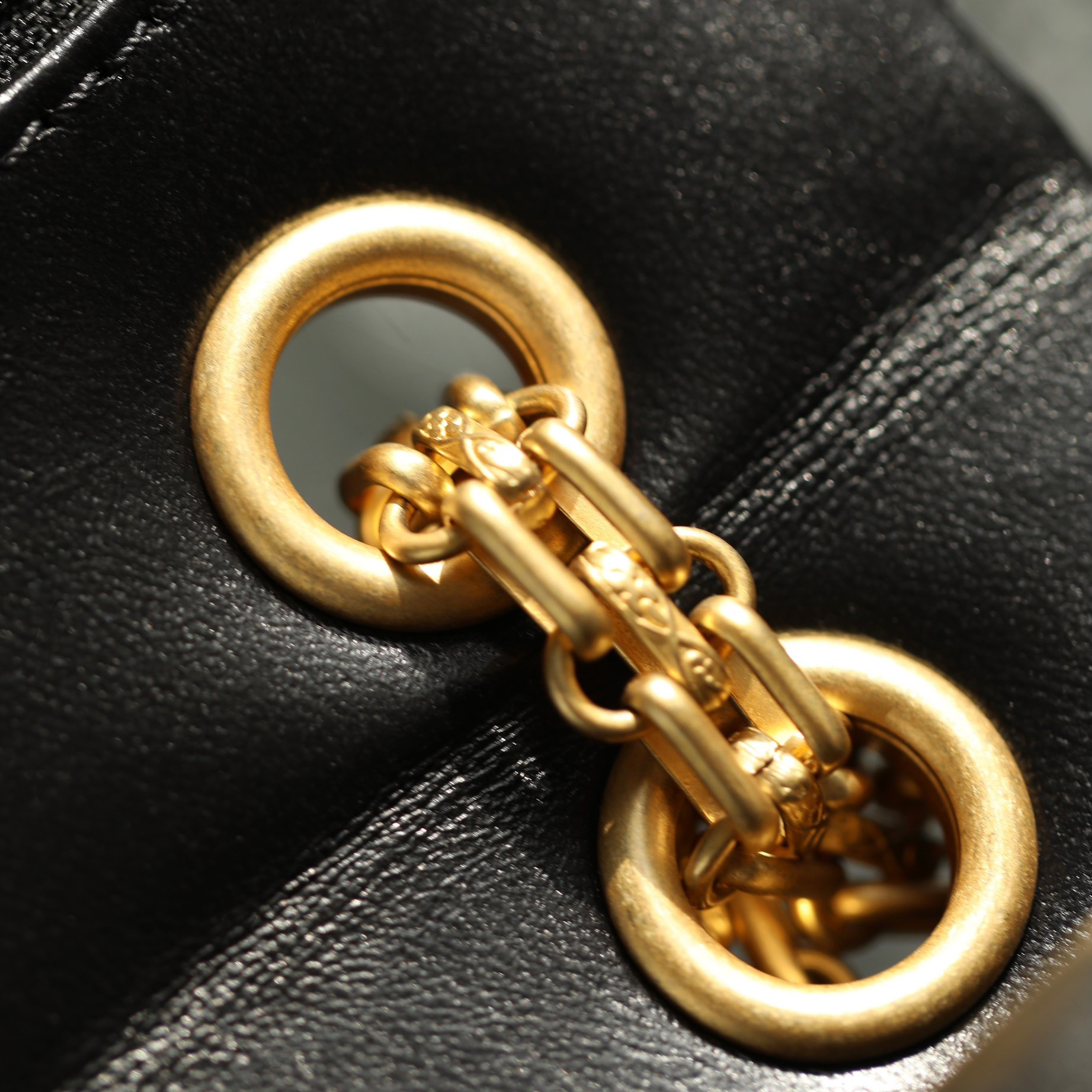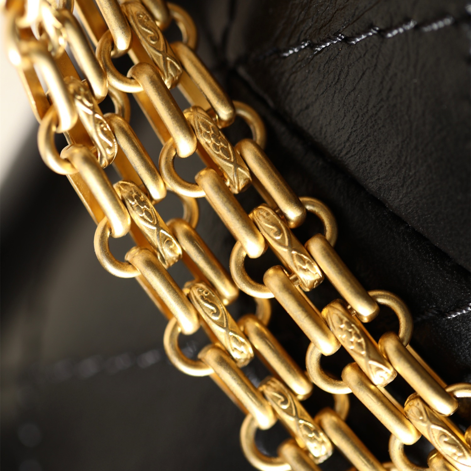 配備的金屬鏈條為全鋼厚鍍24K復古金,從色澤上的對比原單Chanel包包達到了頂級版本,不易掉色杜絕氧化,百分百還原.內置的棗紅裡皮是與專櫃一致的 羊皮,針線刺繡出的雙C-