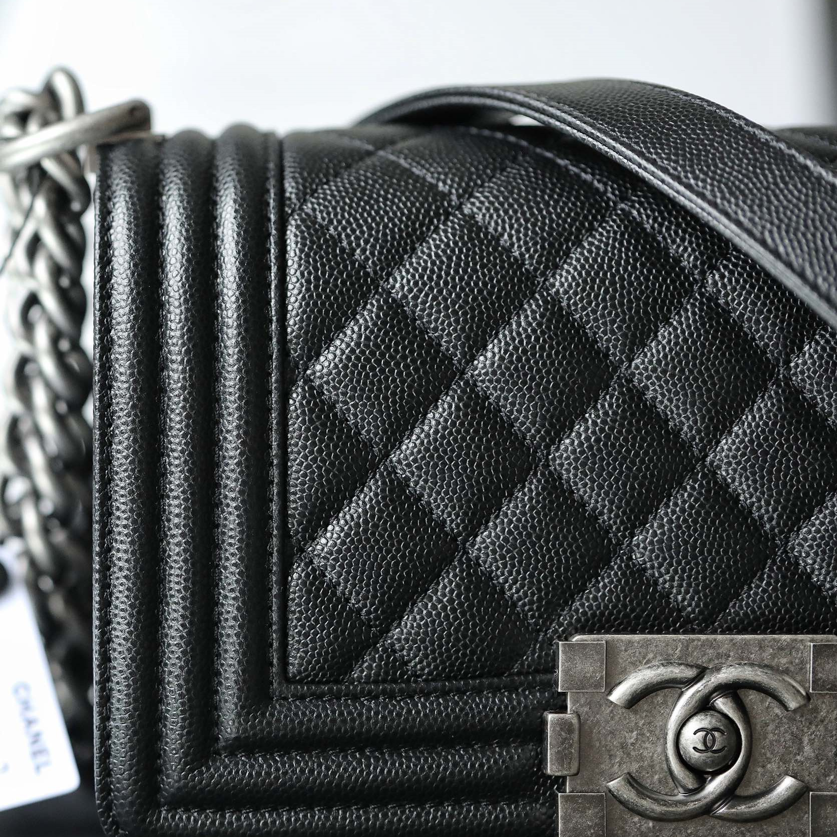 保持了Chanel經典的菱格縫線設計,Leboy系列的每一針線在皮革上都展現了完美的質感.高仿包包選用了高級Haas小球紋牛皮,不僅觸感細膩,而且耐用.皮料的顆粒紋路清晰可見,增添了包包的高級感.整個系列均采用全皮革材質,完全排斥人造皮革,確保了每一款包包的高端和獨特性.