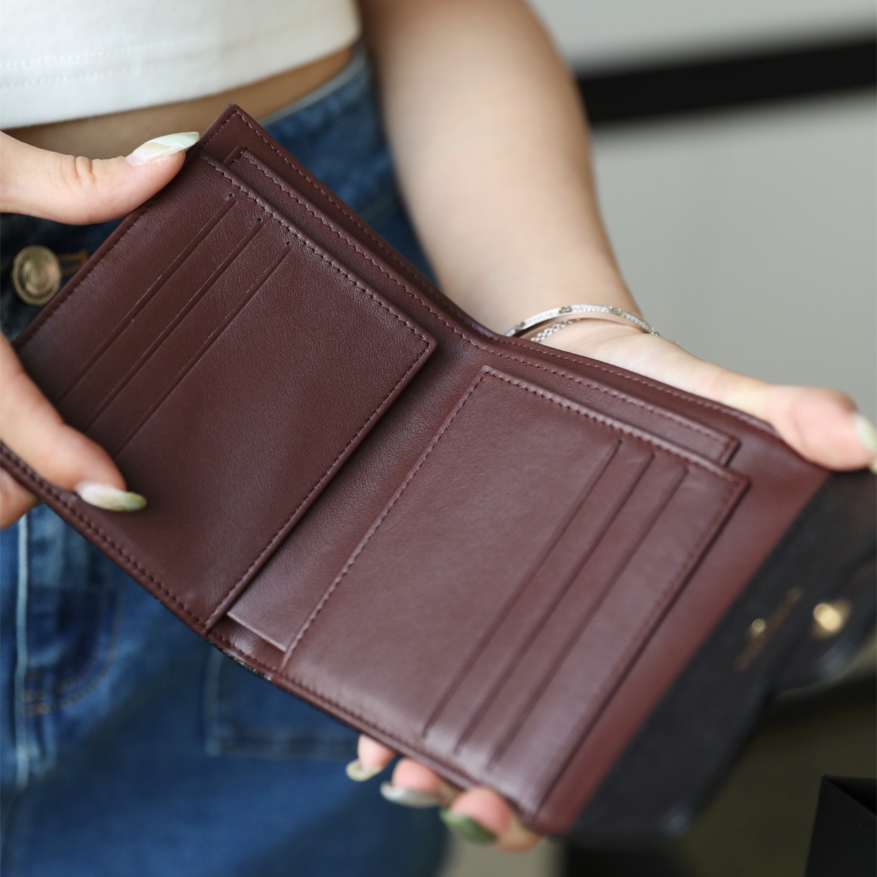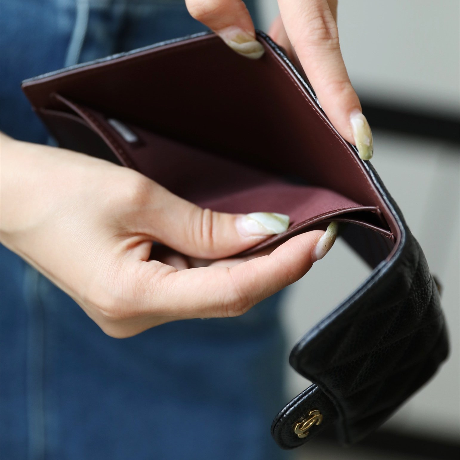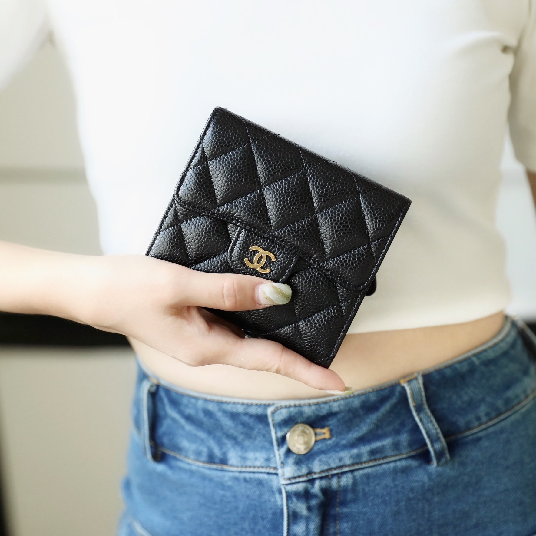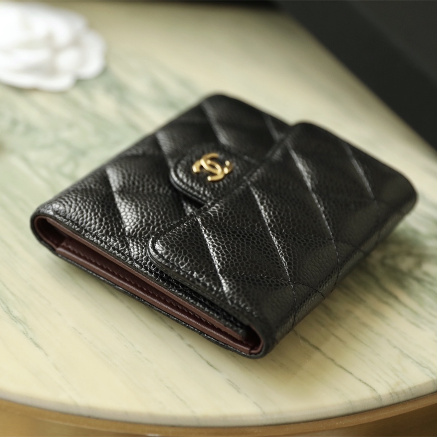 相對來說魚子醬牛皮也比較防刮,雖然說還是避免不了刮傷,只是刮上後比較不容易看出來.因為不太會受時間影響,如果保持的好,其實跟專櫃的新品區別不大,高仿香奈兒短夾配備的全鋼24K厚鍍金屬扣具百分百不掉色不氧化.