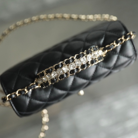 經典且高端的黑金款式,增加新穎的水鑽手提式設計,成為整只包的精髓所在.高仿Chanel手提包通過原裝正品1:1開模復刻,從新款的設計中,了解測量相關尺寸,打造百分百還原一致弧度的手提把柄.通過水鑽的環繞高級感突出,即可單肩也可手提背戴的實際用於,金屬固定位置準確無缺陷.