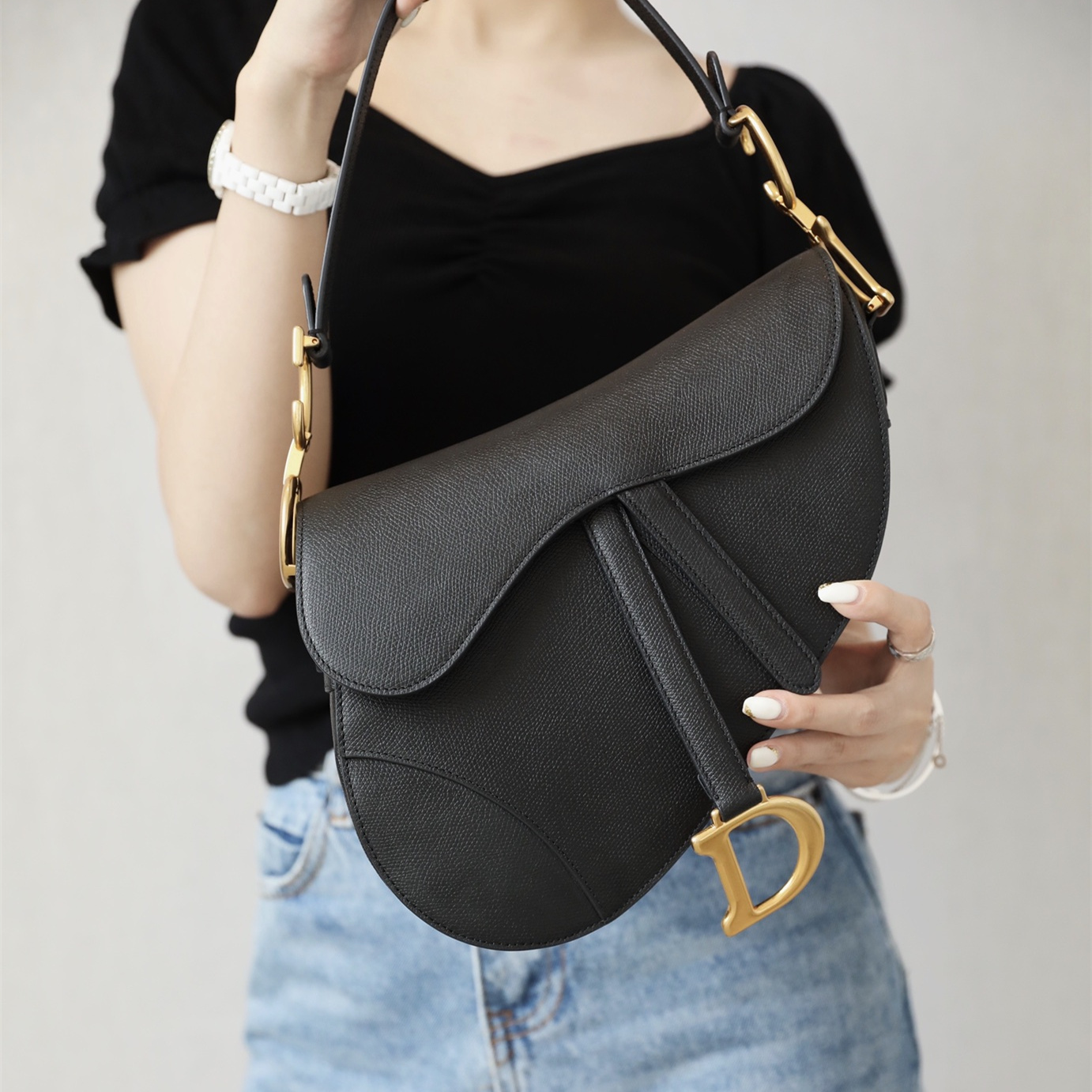 高仿Dior官網全新推出Saddle馬鞍包系列,以傳統的純手法工藝製作還原相關縫線細節處理,精益求精的穿孔設計同步原裝正品.這一隻高仿包包即可作為腋下包使用,在不同場景中使用不同背戴方式呈現主場的個性魅力,手提使用簡單裝飾而不單調,加上黑色牛皮材質高級感有感而生
