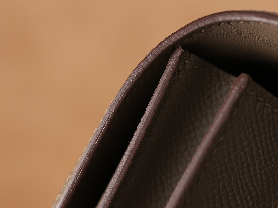 在高仿奢侈品市場中,香港高仿Hermes以其無與倫比的製作工藝和精準的細節還原而獨樹一幟。特別是這款原單Hermes單肩包,它的出現就像是揭開了高仿天花板的新篇章。Constance系列中這個錫器灰配色搭配上K金扣的設計,彰顯出一種不言而喻的奢華美感,令人過目難忘。此款頂級復刻包包,獨家采用原版開模,精細復製了正品的結構,深入研究了每一種材質。特別是使用了與原版同款的Epsom皮,這種皮質取自成年公牛,不僅在觸感上堅實圓潤,還在質感上展現了一種獨特的光澤度,與原版無異。