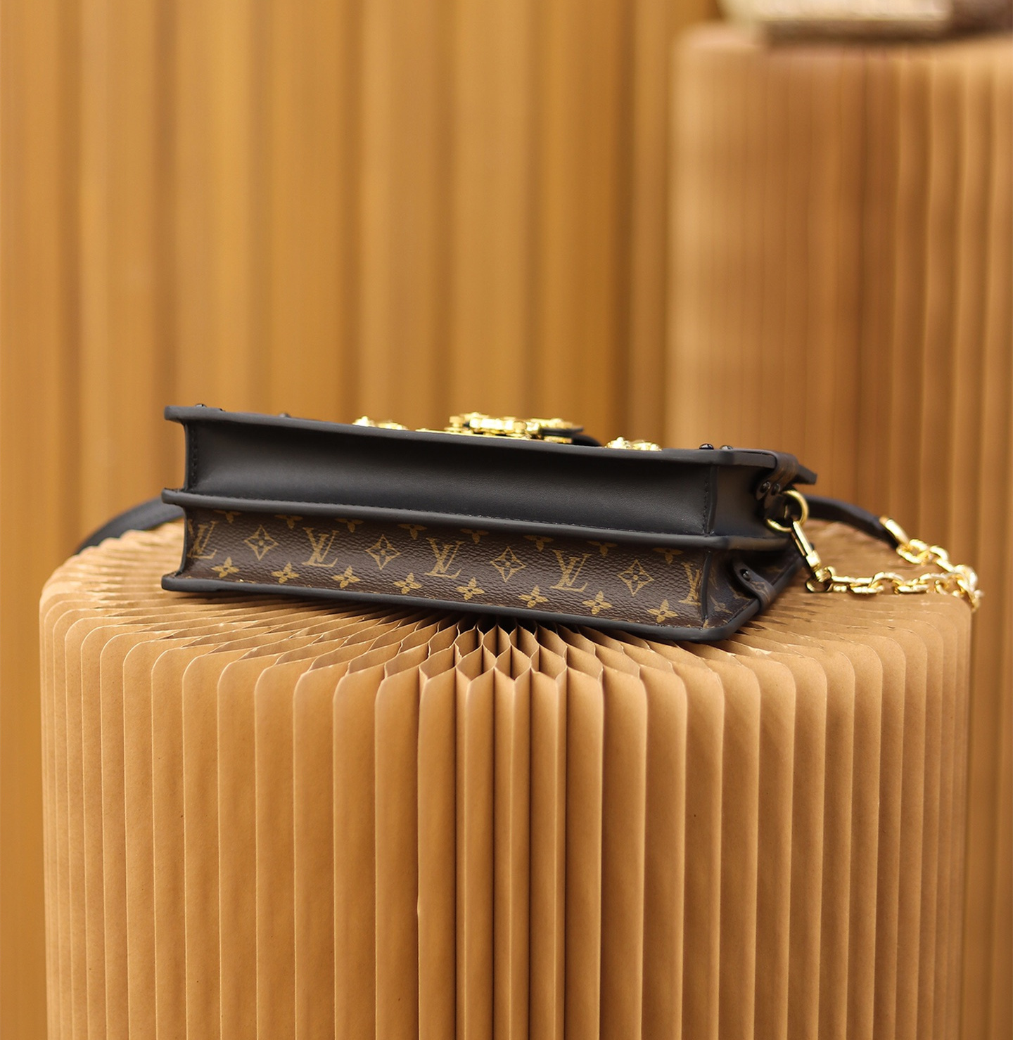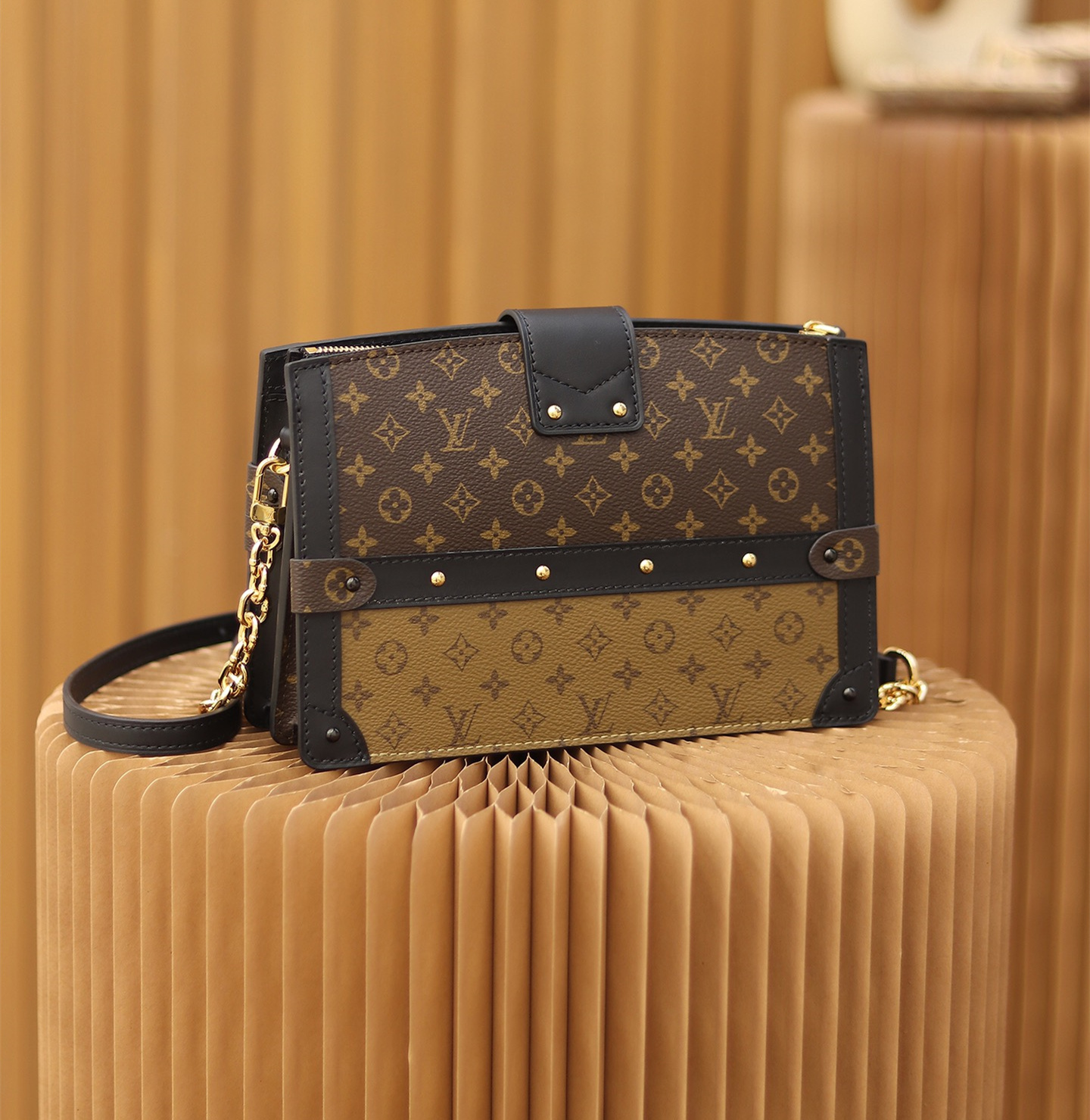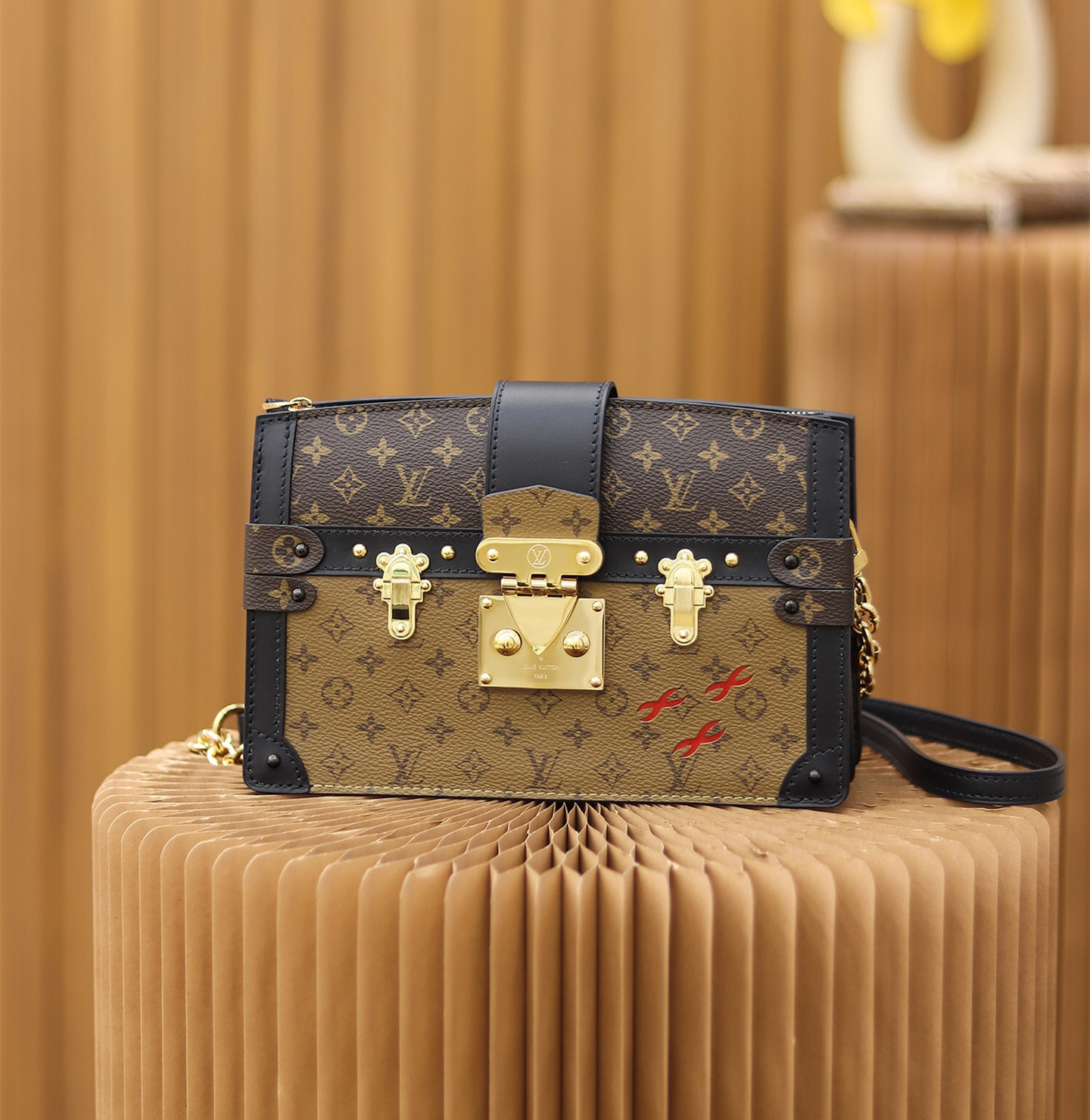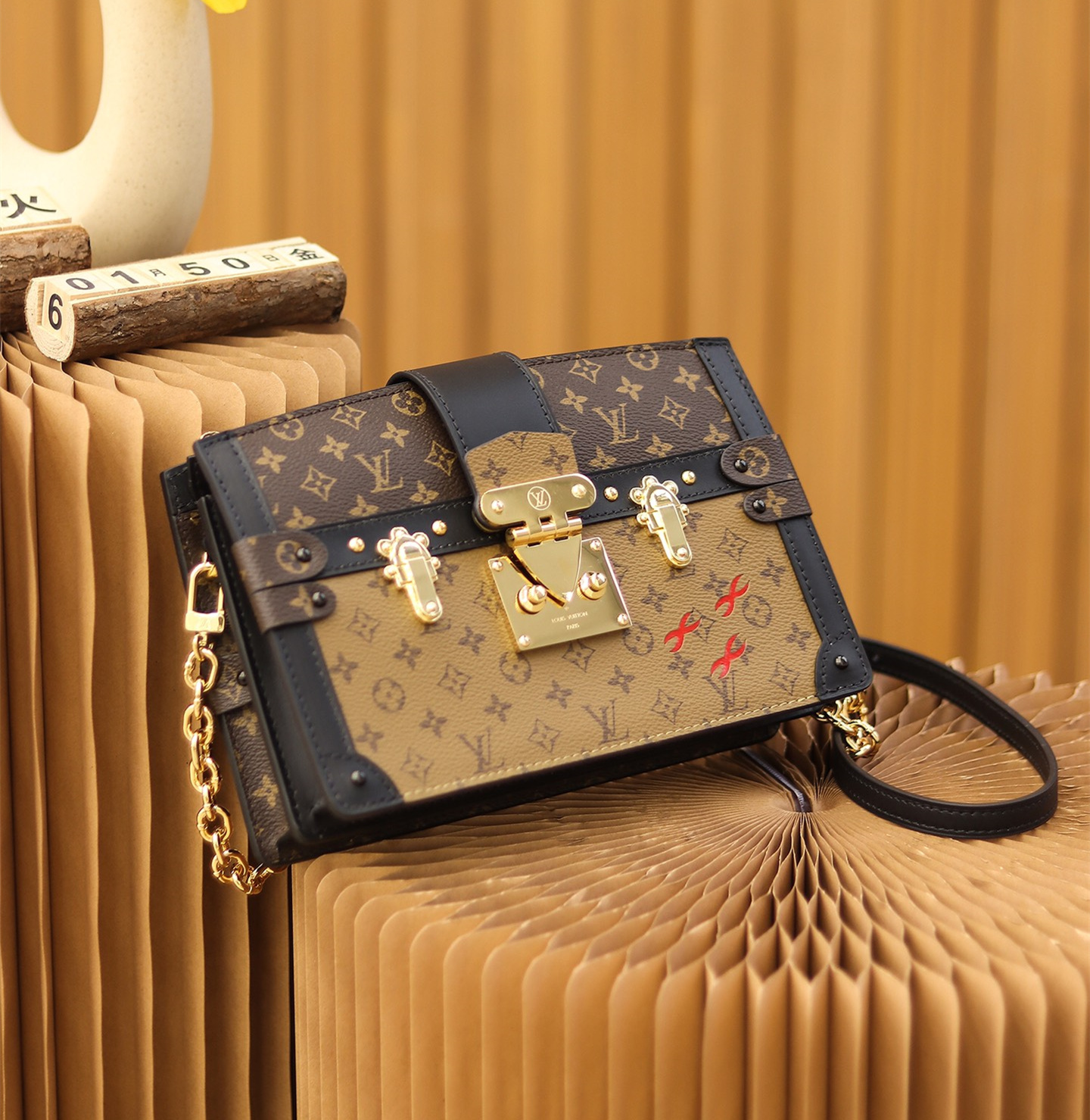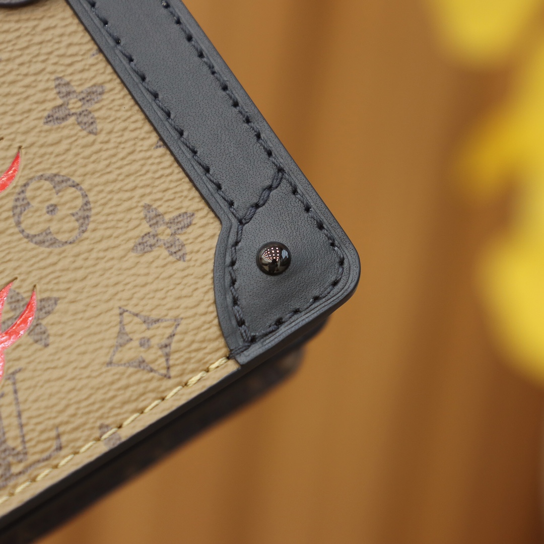 Trunk-Clutch系列中這一款軟盒子備受眾多女士的寵愛,其中雙拼色的外觀搭配盒子包的專屬造型,原單LV盒子包詮釋了1:1精度仿製的絕美精細.在高仿奢侈品界面上打破了有史以來的最難突破的雙拼工藝,造就當今出品的高仿包包均以免檢版本面世.