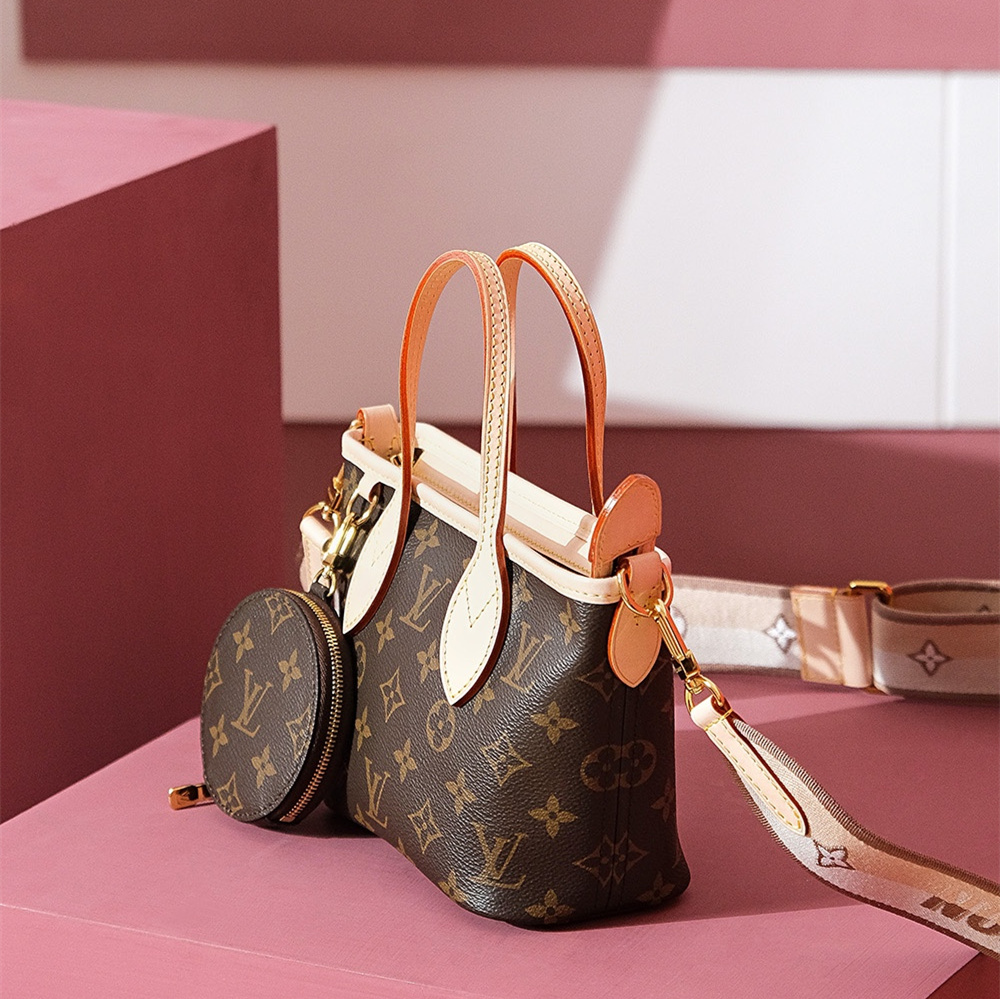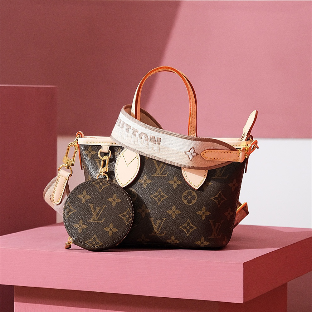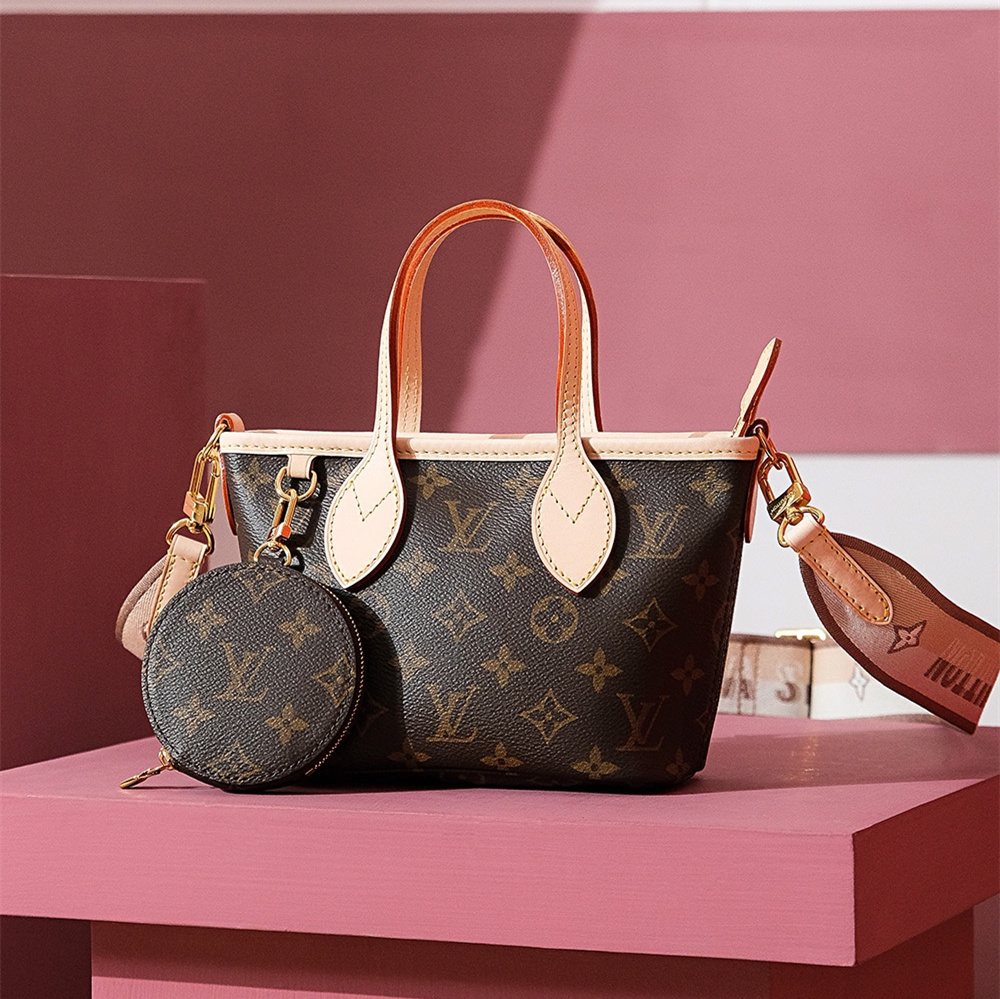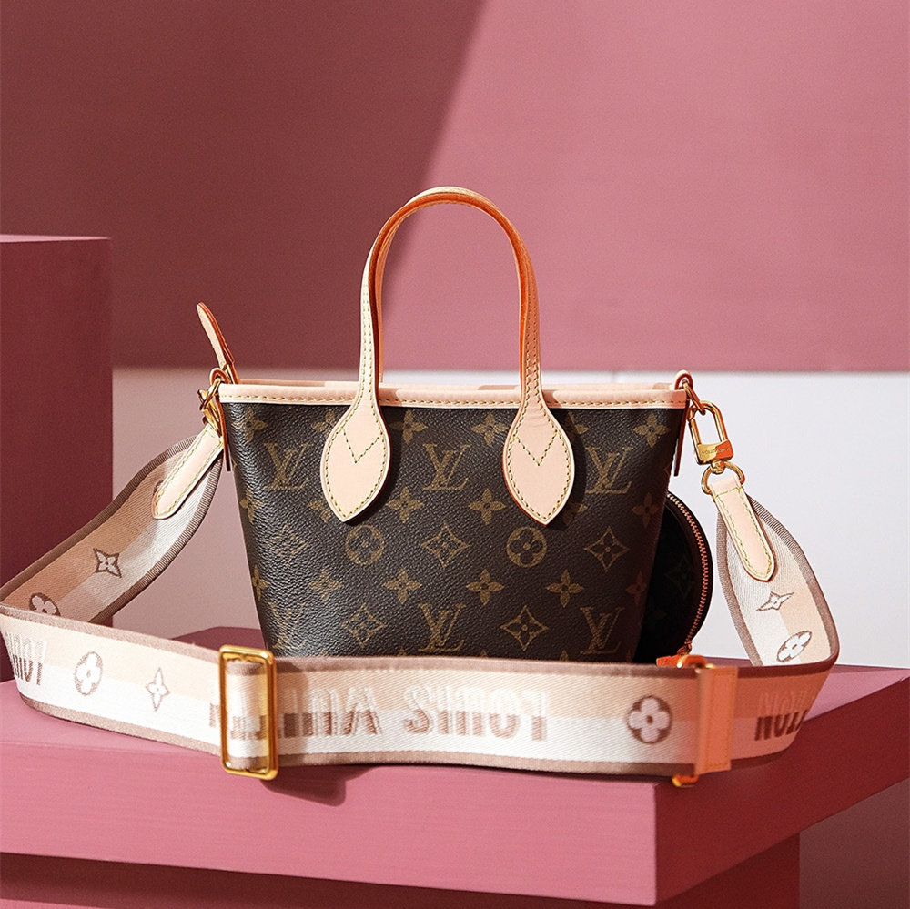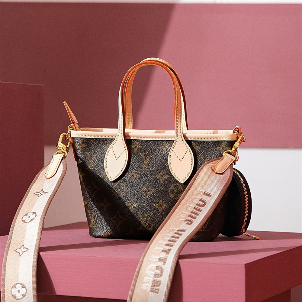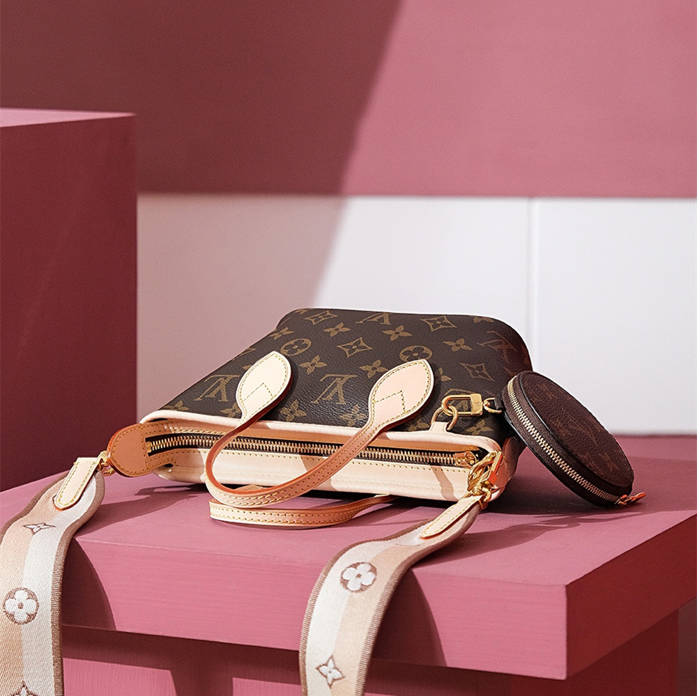 在傳統的手提包上增加了肩帶作為多用性包包,小巧的包體搭配寬體刺繡肩帶新穎的設計獨特綻放.更加讓人眼前一亮的是刺繡肩帶部分,作為升級版本高仿LV手提包首次採用激光刺繡製作,淘汰了老版本使用電腦刺繡的普通工藝.從刺繡的細節對比中會更加貼近專櫃品質,紋理之間呈現明顯的刺繡字母.