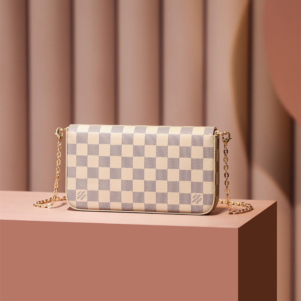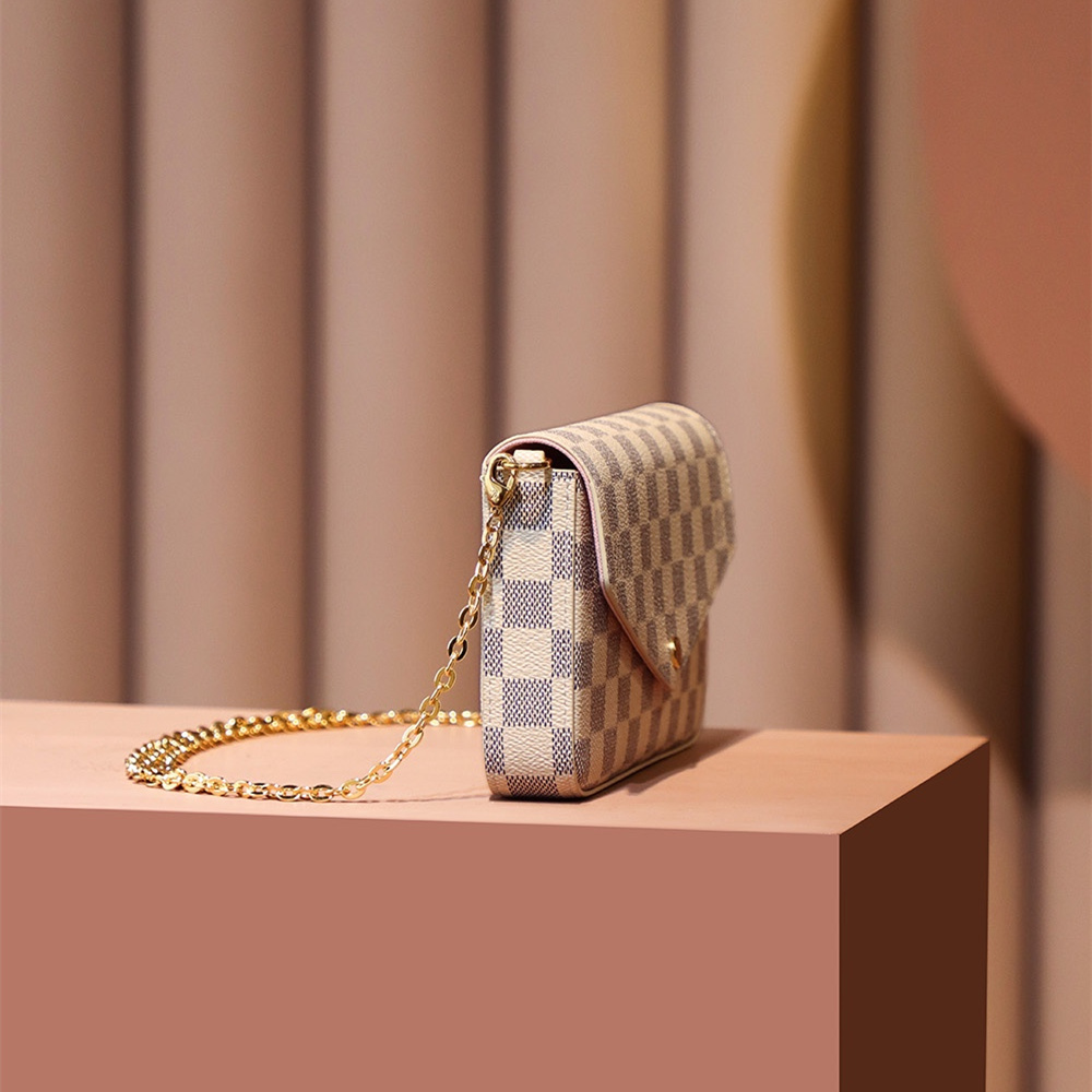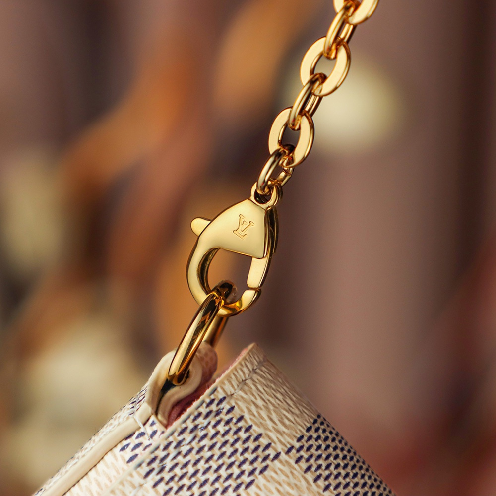 PochetteFelicie系列全新推出了白棋盤格帆布款式,與經典棕色棋盤格對比完成呈現出兩種味道.白棋盤格能夠突顯出優雅氣質,符合個性化專屬包款,而棕色棋盤格是以大眾化為主.簡單的了解這一隻高仿LV鏈條包採用原廠白色鹽劃帆布製作出原版的味道,並且使用也非常高.