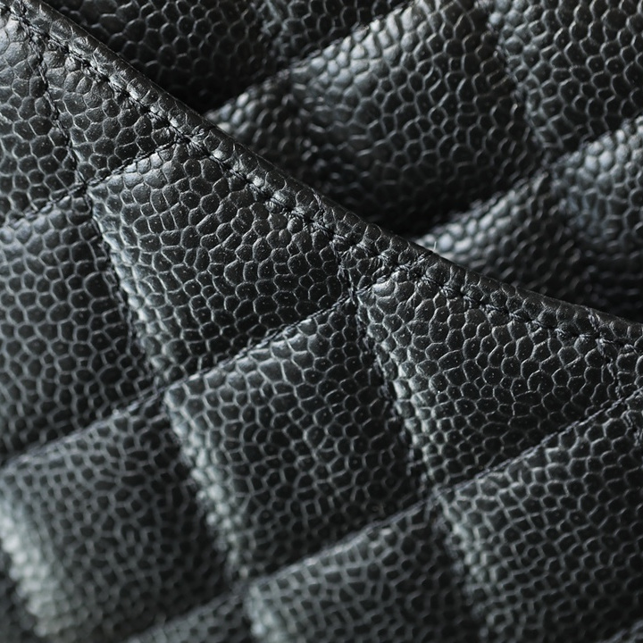 在皮質的選擇上,這高仿Chanel口蓋包采用了與原版同款的Haas皮革,這種高端魚子醬牛皮質地細膩,色澤深沈具有獨特的顆粒質感,手感柔軟而舒適.原單Chanel女包在其標誌性的衍縫線菱格上,嚴格遵循原廠工藝,確保了精細的質量.