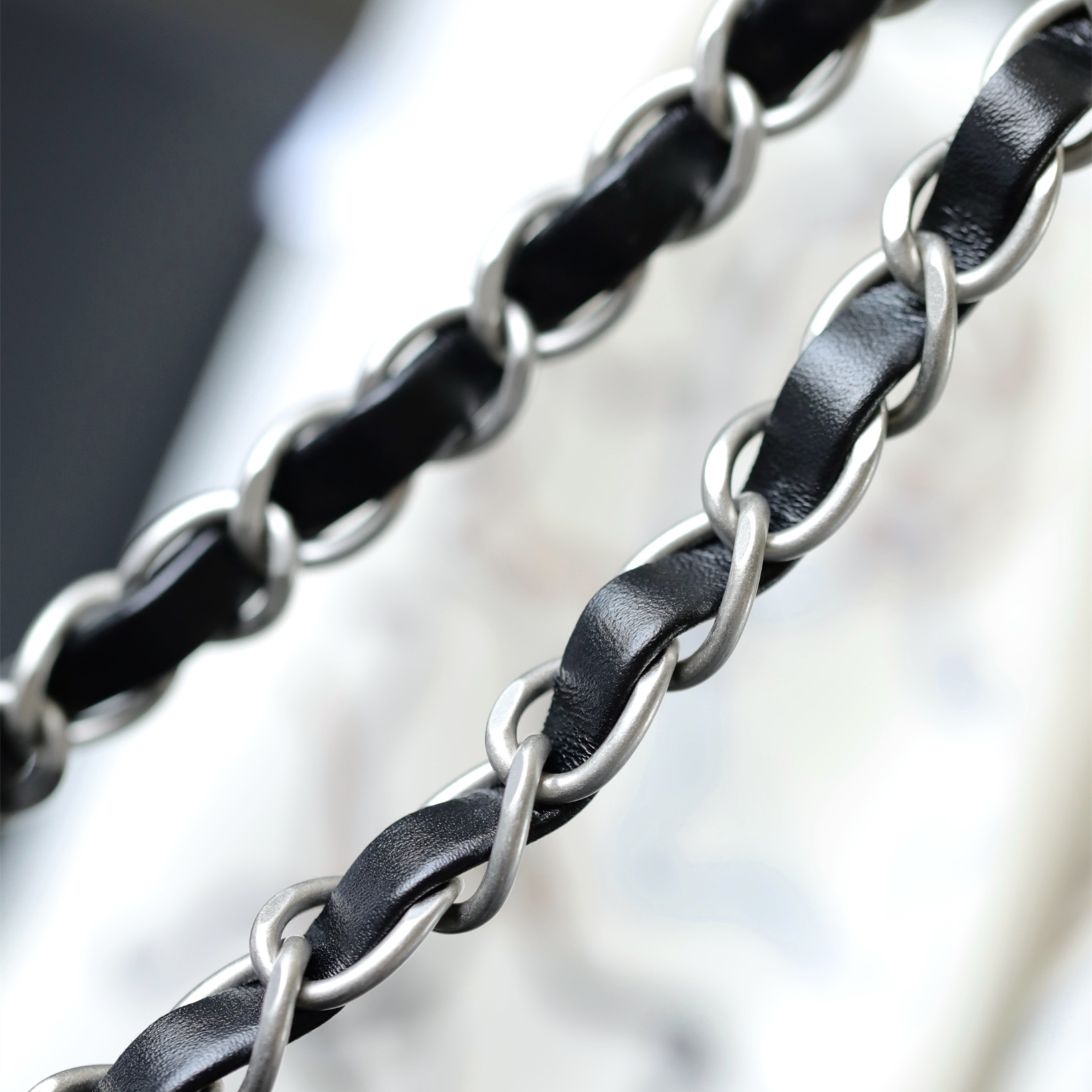 高仿Chanel購物袋沿襲了原版的Antiba亮面小牛皮,這種皮革不僅柔軟度適宜,還擁有絲滑流暢的觸感,整個包型都是手工縫製而成.Chanel復刻在細節處理上極為苛刻,外觀的衍縫線菱格設計,以及針腳的精準落點,完美對應專櫃的高標準.