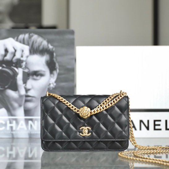 高仿包袋Chanel山茶花扣具經典口蓋包小羊皮免檢版