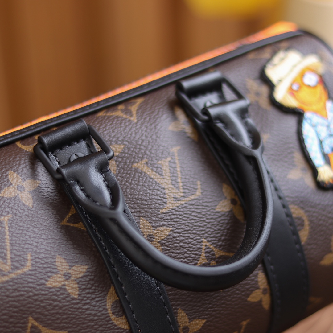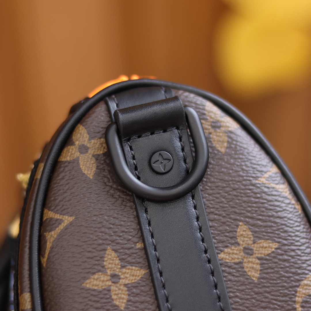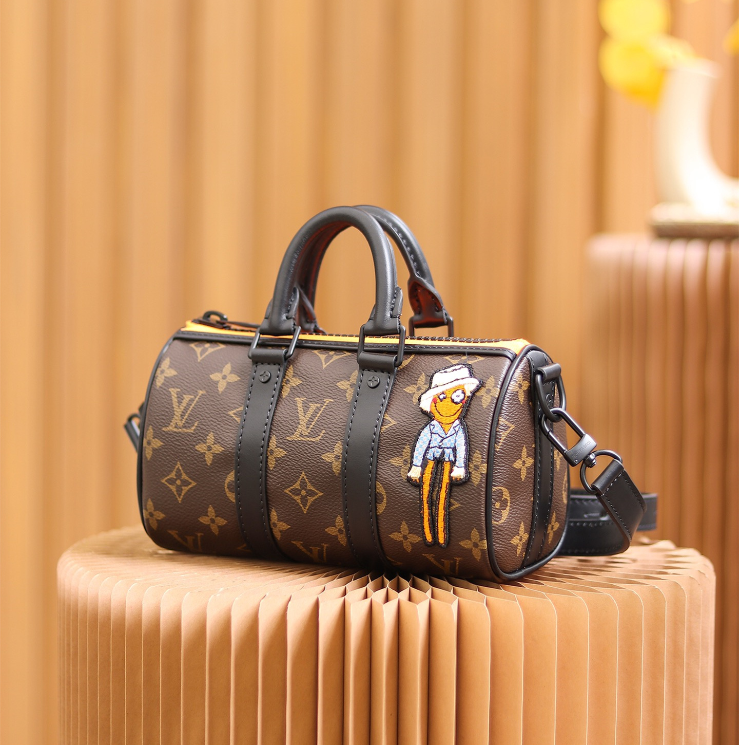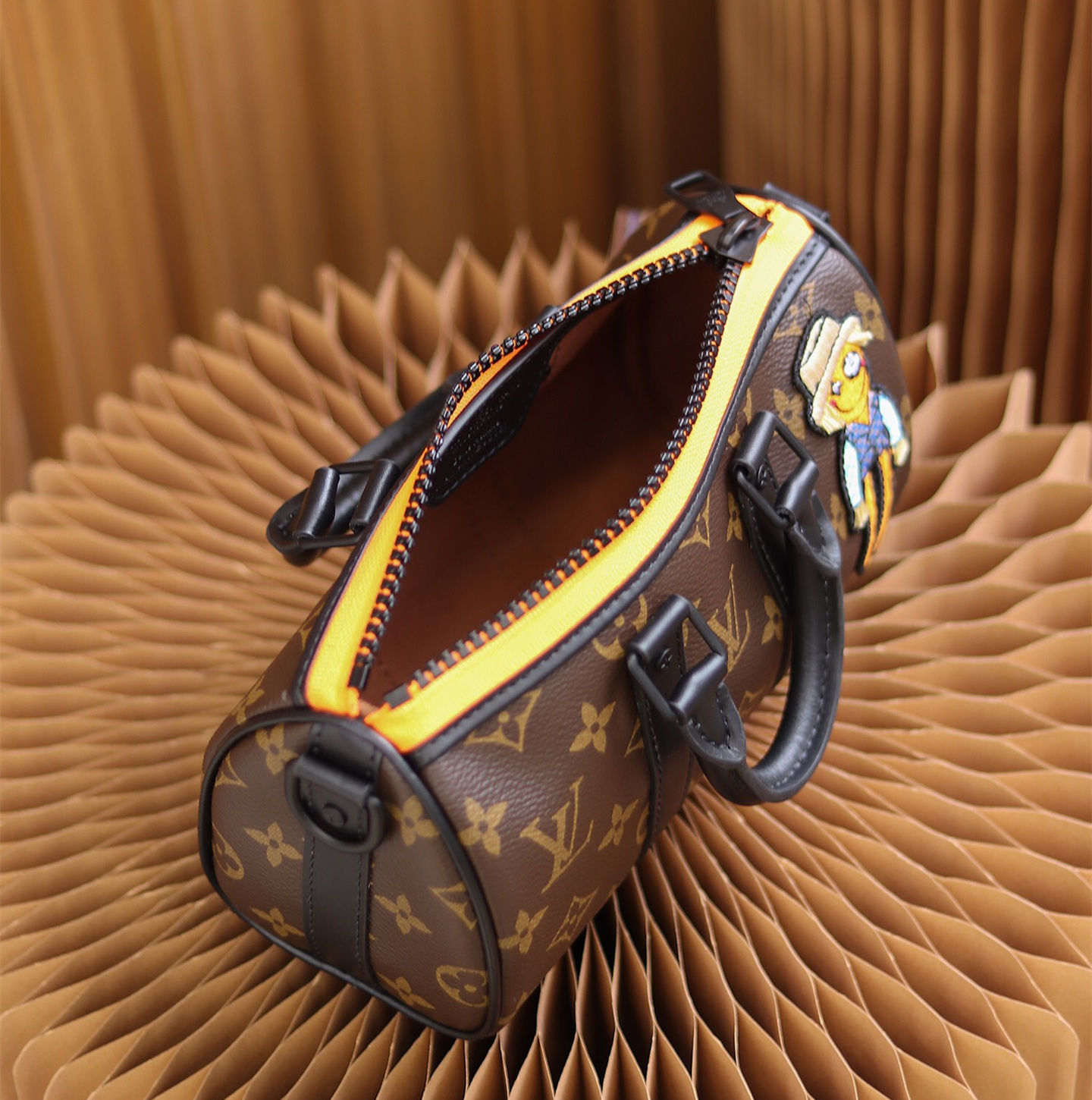 對於LV高仿包的要求除了使用到經典的Monogram帆布,專注打造的包身結構,針對走秀款的稻草人刺繡,百分百使用到最新激光刺繡完成製作,可對比老款版本使用的電腦刺繡不對版並且線路參差不齊等等缺陷.高仿LV走秀款所對應的位置和距離都是百分百還原.