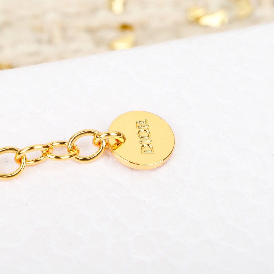 Dior的經典幸運星,搭配上溫潤的珍珠,閃亮的水晶及金屬,在細節處展現令人著迷的精緻感,是十分值得入手的選擇.同時結尾部分涉及DIOR辨識標牌,設計感拉滿.