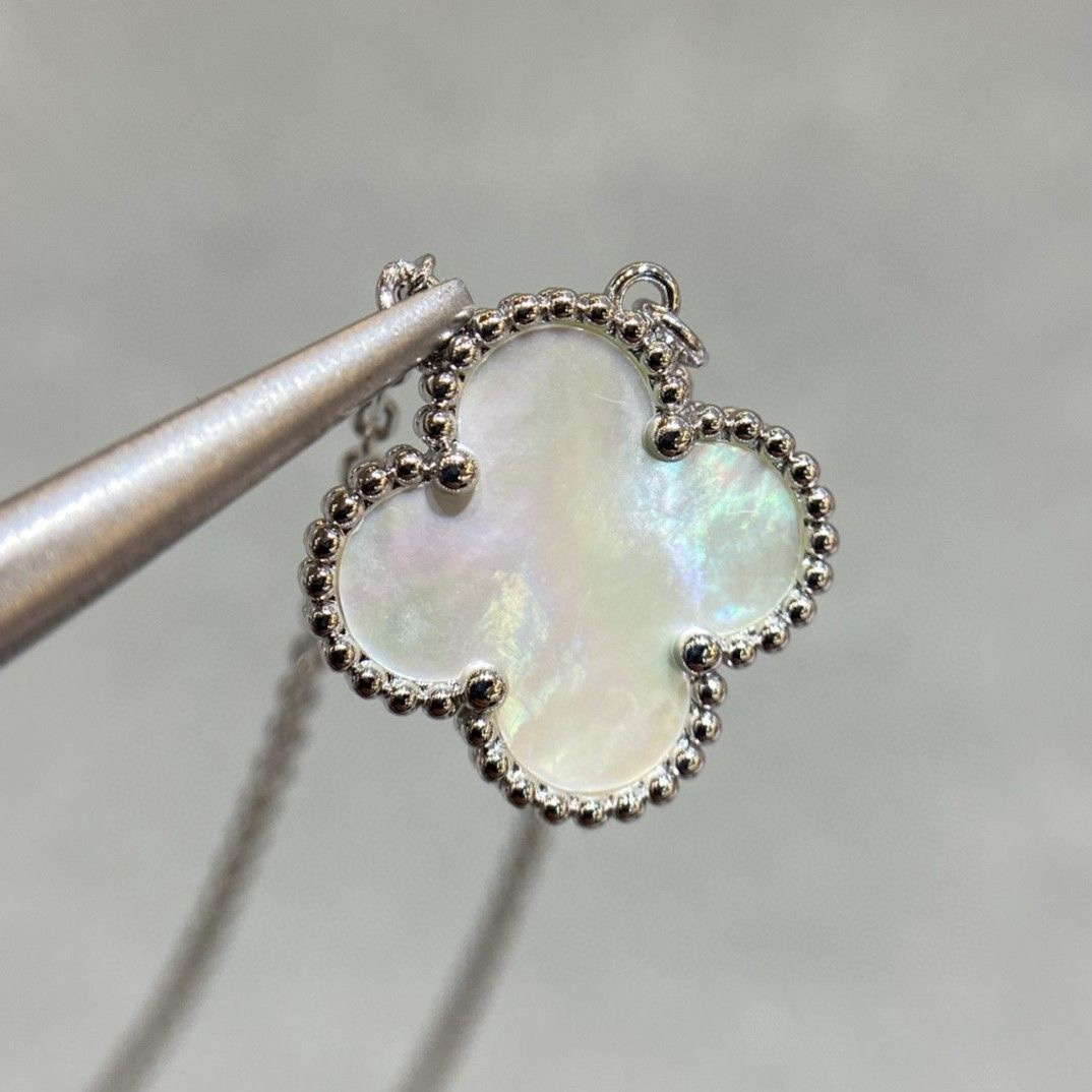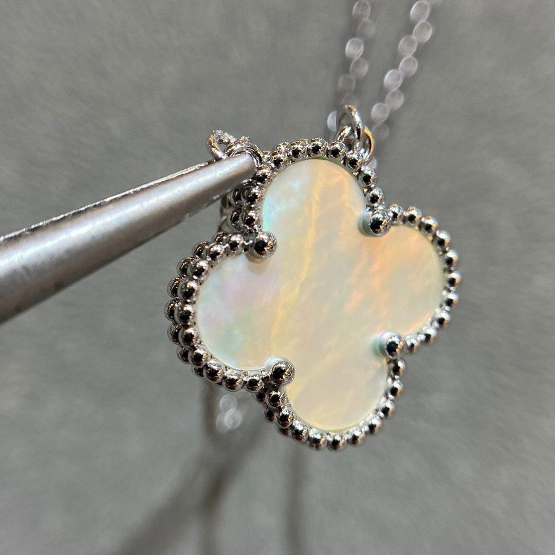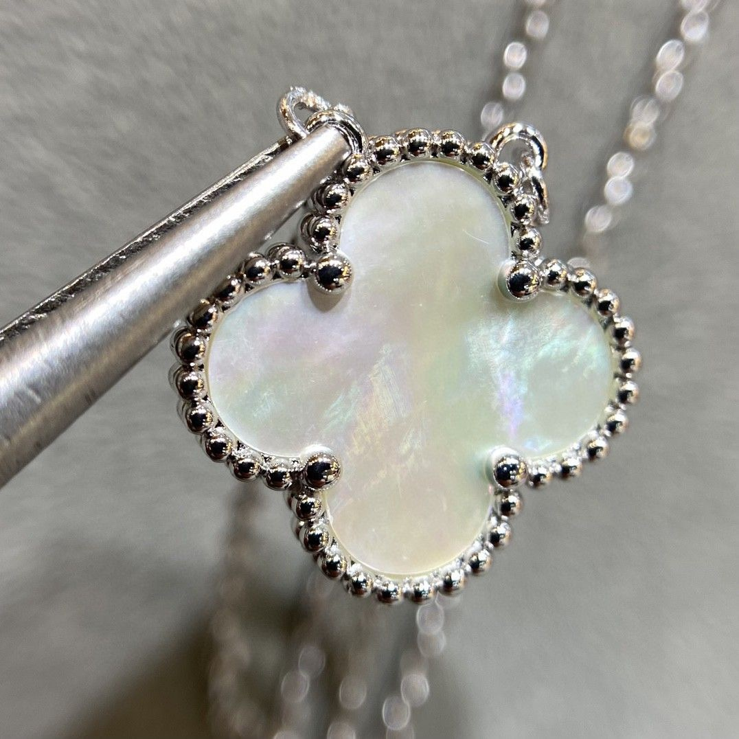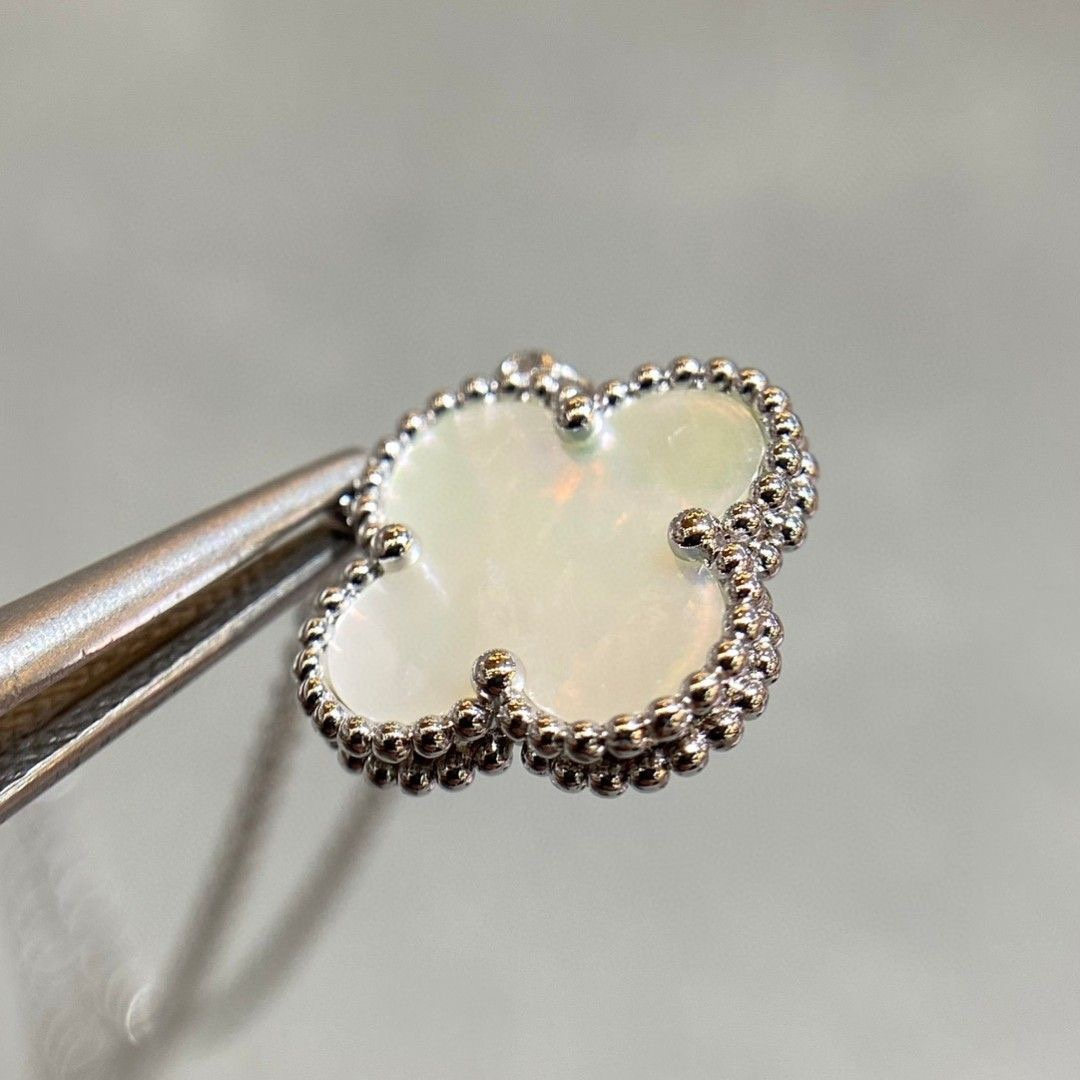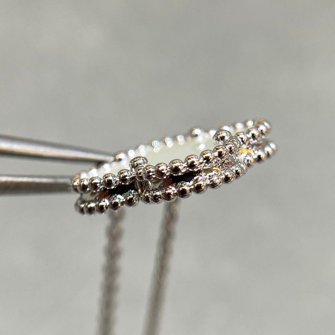 高仿首飾VanCleef&Arpels頸鏈每一顆四葉草邊珠跟天然石配件,連接處是沒有任何多余的五金.側面邊珠與邊珠中間的五金,呈現凹進去的造型,且拋光十分均勻,五金寬度厚度十分適中,邊珠非常立體!再來最最重磅的,原裝正品有一個防!偽!鋼!印!沒聽錯!VCA也有鋼印!而且非常無敵有難度,在這個小環上的最下邊,有一個凹進去的防偽鋼!印!難度系數之大.超級重工的不斷的改版,不合格,再改版,還是不合格,再改版.不斷的反復改版才做到現在的無敵扣頭唯有購入專櫃版本才能真正的知道純原版本的VanCleef&Arpels高仿首飾高端品質