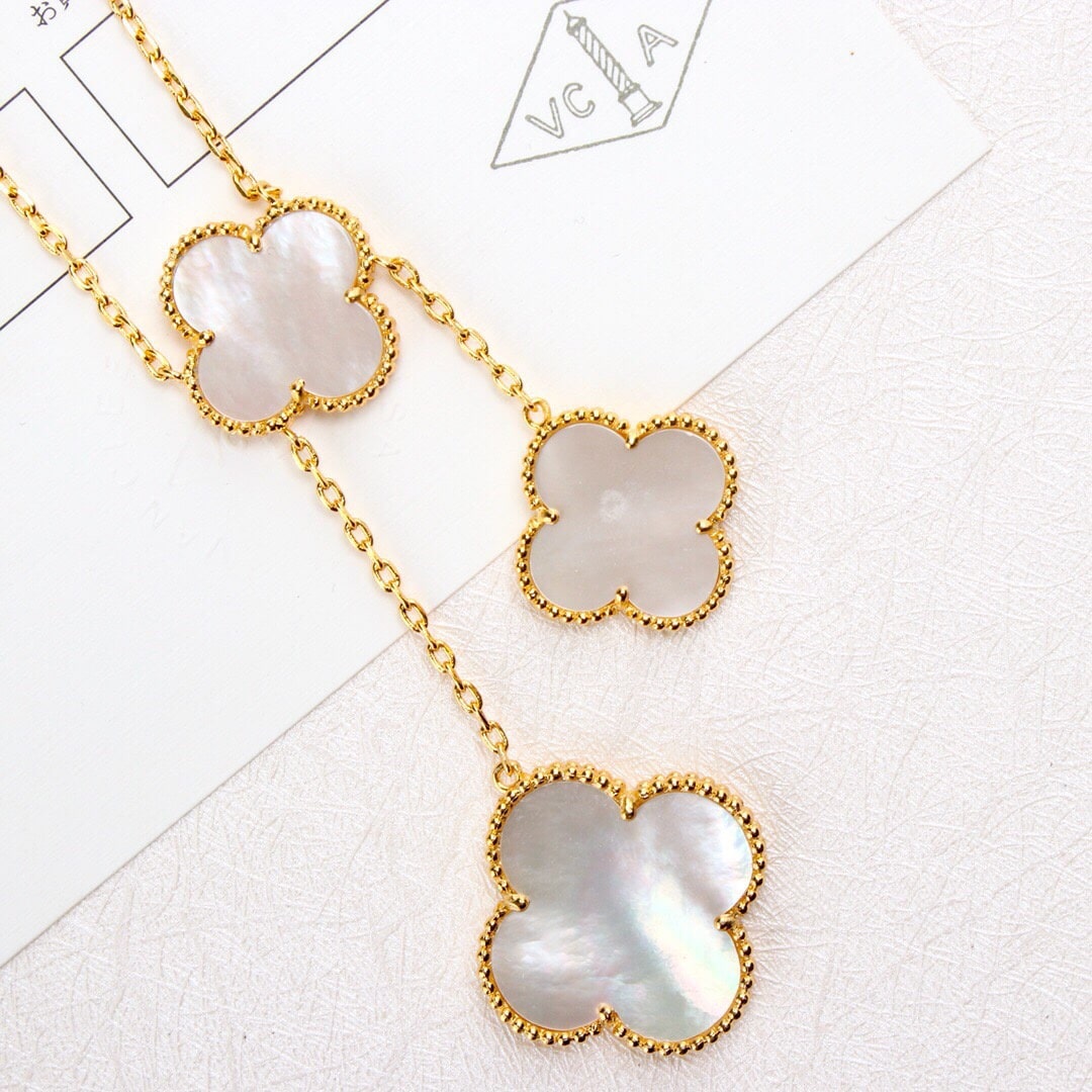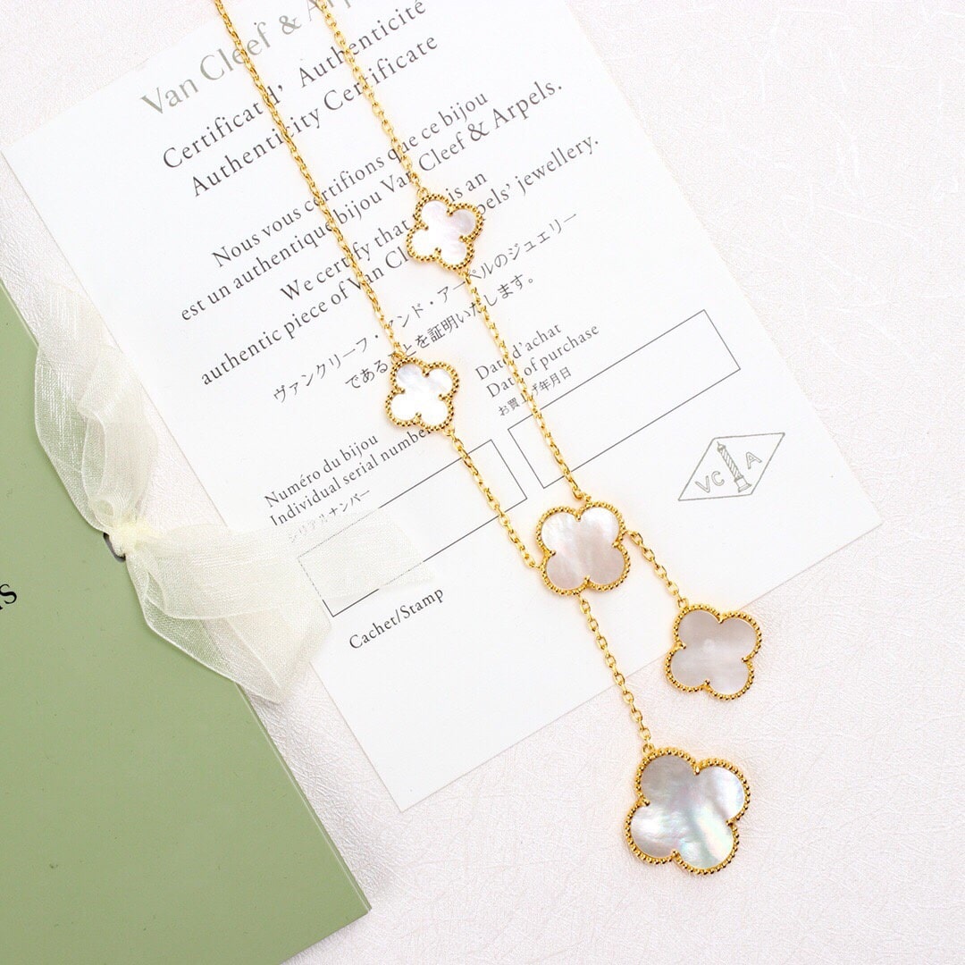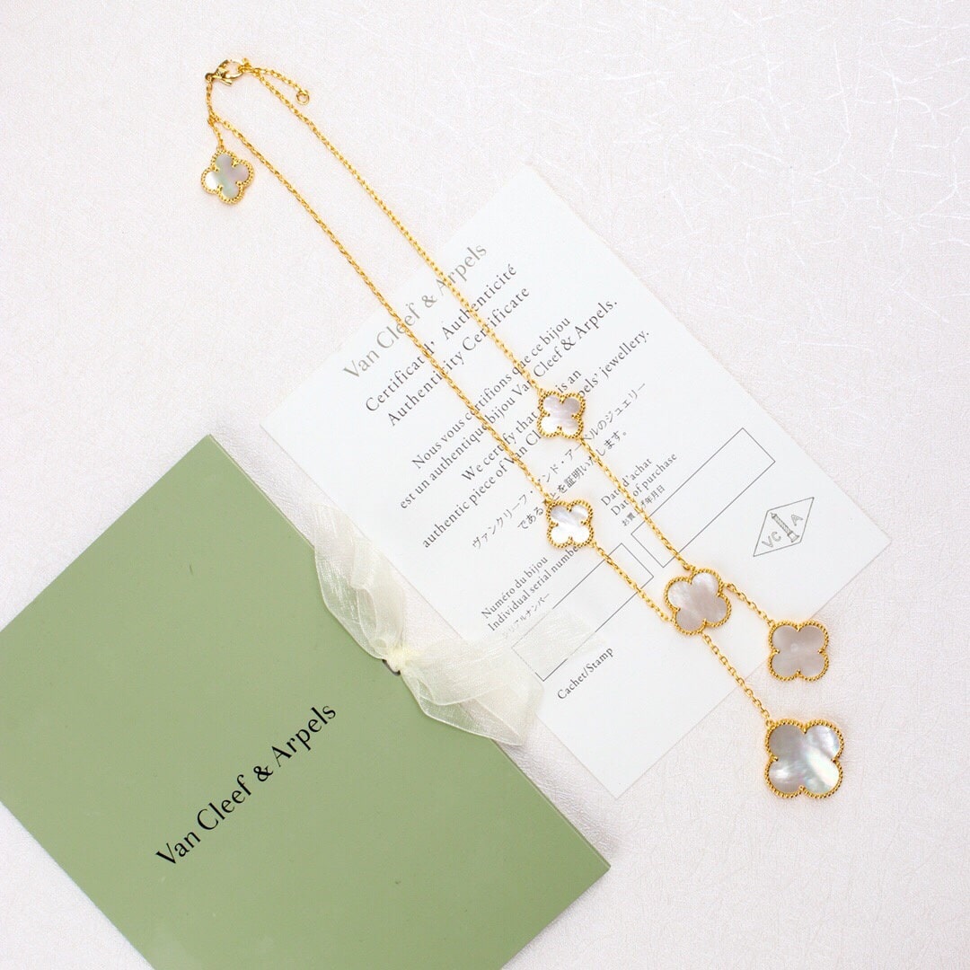高仿Van Cleef & Arpels首飾Magic Alhsmbra四葉草項鏈,這款Magic Alhambra六花不規則項鏈簡直有點高調,由於太不日常,搭配時註意服飾大色調,幾乎可以一身黑或者一身簡單點的衣服,領口一定要大,