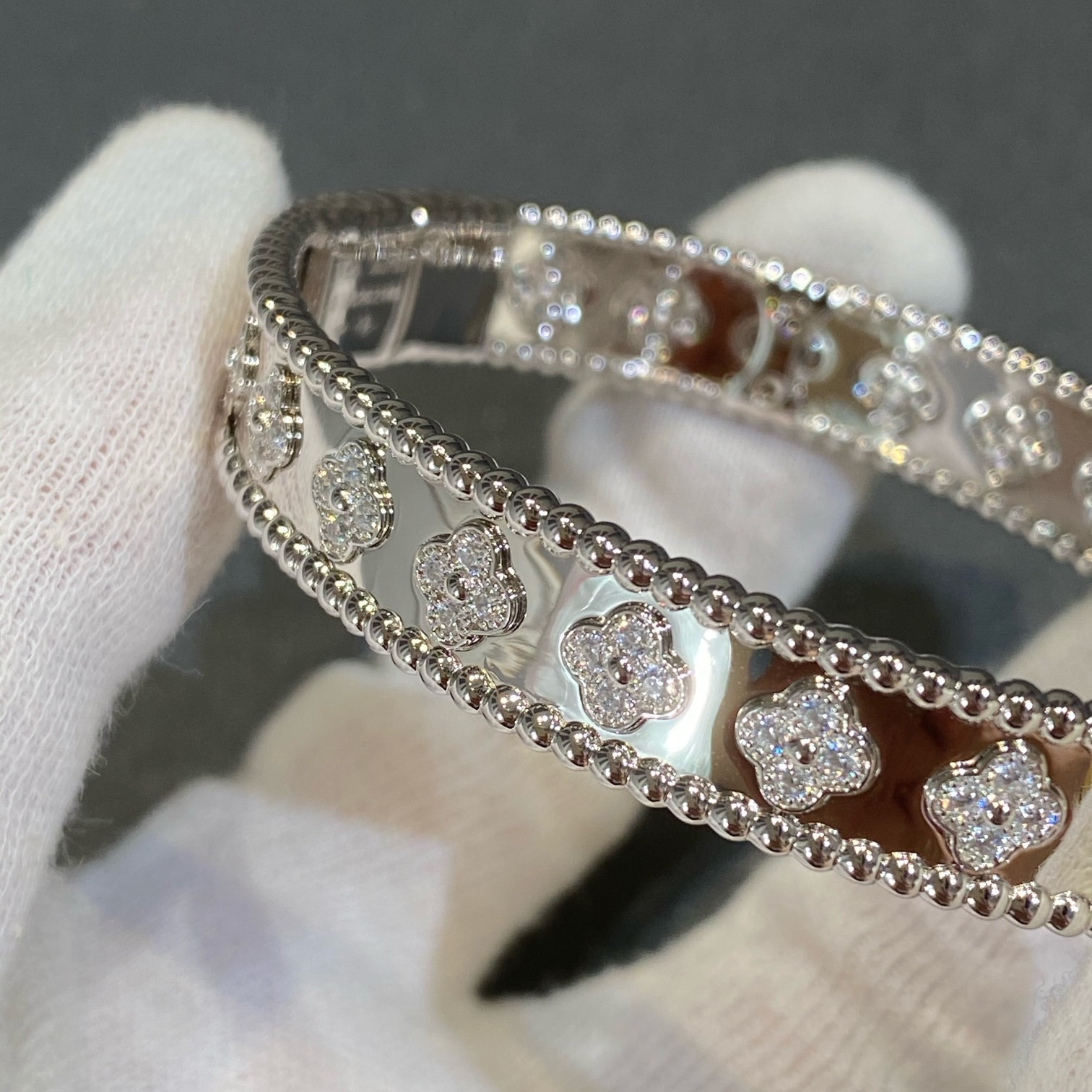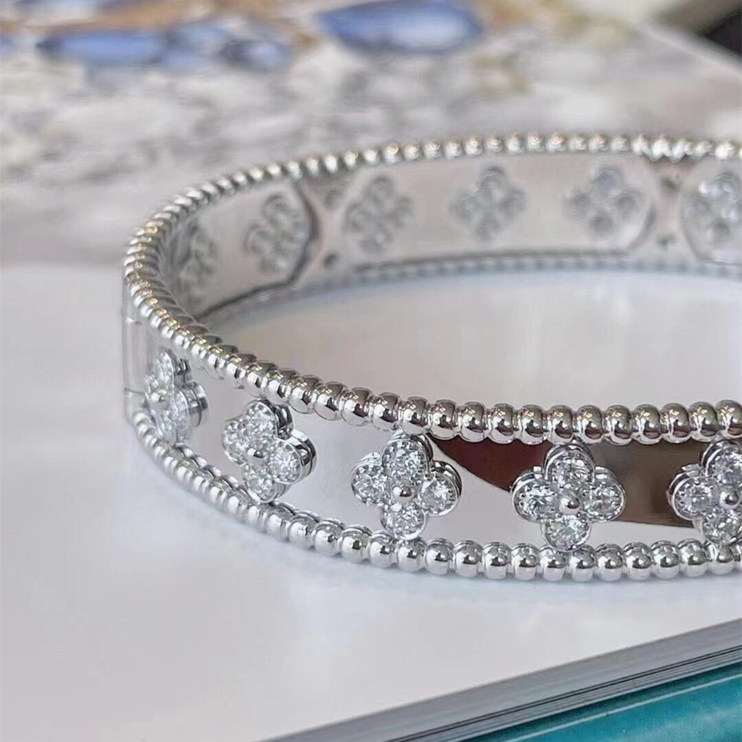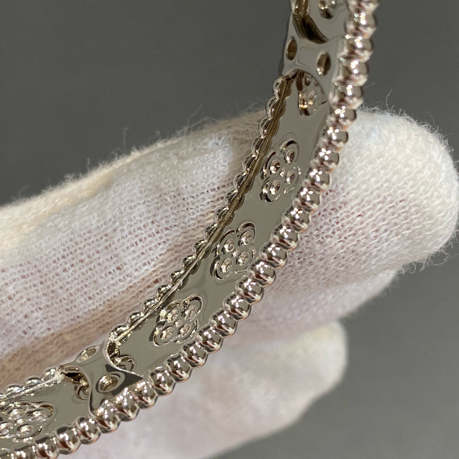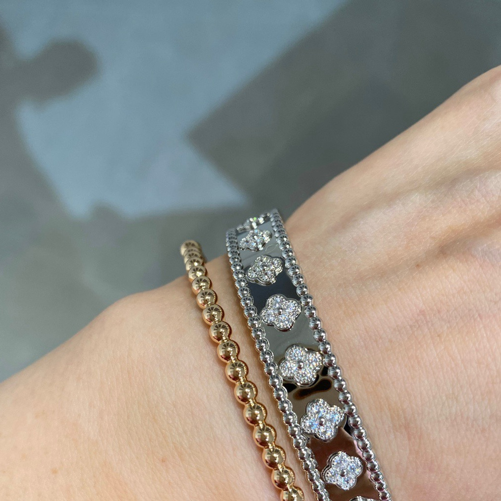 高仿首飾VanCleef&Arpels首飾手鐲系列推出一采用黃金,白K金和玫瑰金萬花筒寬版手鐲,展現歡欣愉快的精神,作品可互相配搭,迎合不同場合的造型.Perlée系列充滿奇思妙想,設計精巧細膩,歌頌優雅風範與現代精神.Perlée系列的手鐲結合璀璨閃爍的金質與圓潤柔和的金珠,充分展現系列歡欣婉約的美學理念.此世家精湛工藝的典範,締造令人愛不釋手的傑作,讓您隨喜好和心情互相配搭,圓珠經過手工打磨拋光,每件作品均獨一無二,高仿首飾VanCleef&Arpels豐厚傳統中的多項元素,啟迪了Perlée系列的設計,每顆金珠均散發活潑歡愉的氣息,彰顯世家聞名遐邇的工藝與創意.手鐲上每一顆水晶都是專業的老師傅手工鑲嵌上去的,保證每一顆鉆的位置都一致,這才是真是的奢侈品,藝術品!