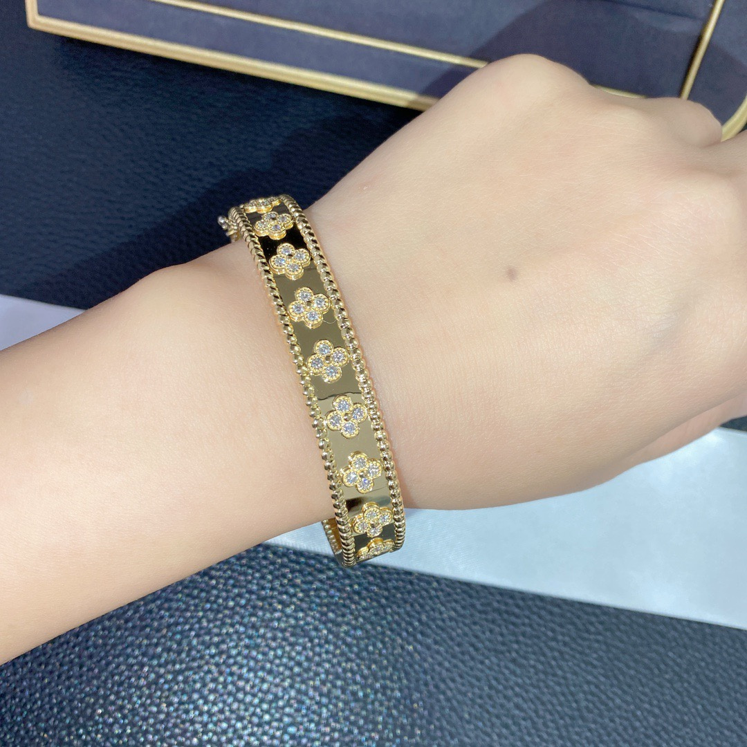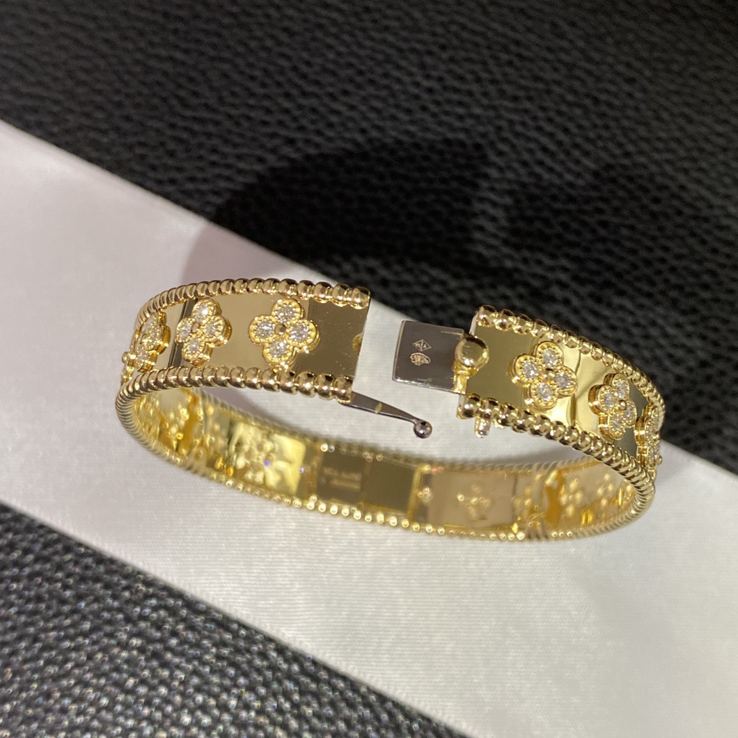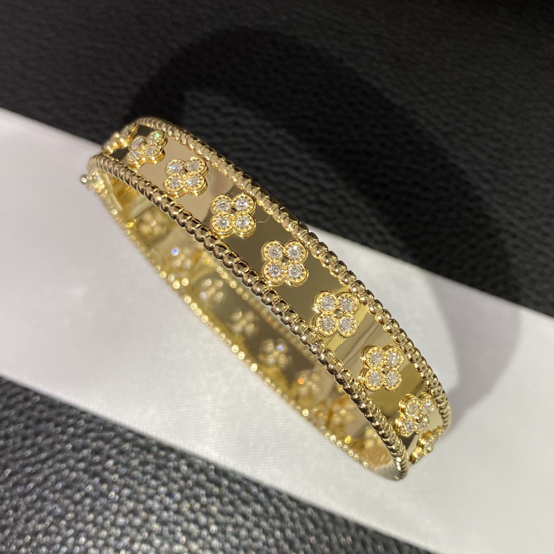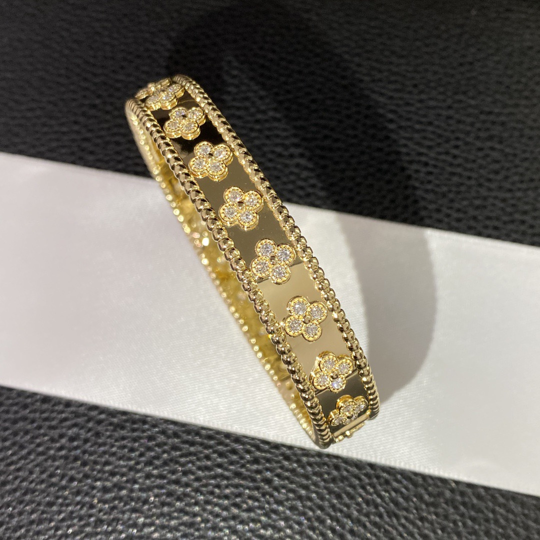 高仿首飾VanCleef&Arpels首飾手鐲系列推出一采用黃金,白K金和玫瑰金萬花筒寬版手鐲,展現歡欣愉快的精神,作品可互相配搭,迎合不同場合的造型.Perlée系列充滿奇思妙想,設計精巧細膩,歌頌優雅風範與現代精神.Perlée系列的手鐲結合璀璨閃爍的金質與圓潤柔和的金珠,充分展現系列歡欣婉約的美學理念.此世家精湛工藝的典範,締造令人愛不釋手的傑作,讓您隨喜好和心情互相配搭,圓珠經過手工打磨拋光,每件作品均獨一無二,高仿首飾VanCleef&Arpels豐厚傳統中的多項元素,啟迪了Perlée系列的設計,每顆金珠均散發活潑歡愉的氣息,彰顯世家聞名遐邇的工藝與創意.手鐲上每一顆水晶都是專業的老師傅手工鑲嵌上去的,保證每一顆鉆的位置都一致,這才是真是的奢侈品,藝術品!