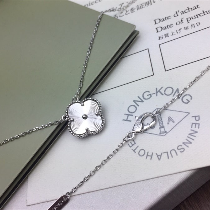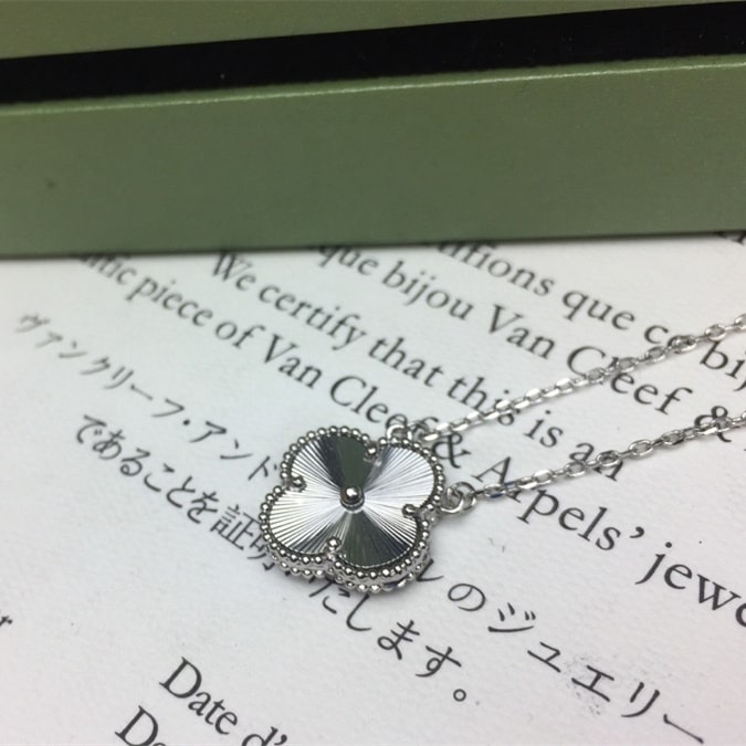 高仿Van Cleef & Arpels鐳射四葉草鎖骨項鏈,白富美人手必備叠戴絕了!也可以搭配成項鏈choker佩戴,實拍925純銀定製,獨家珠寶工藝,質感做工超贊.