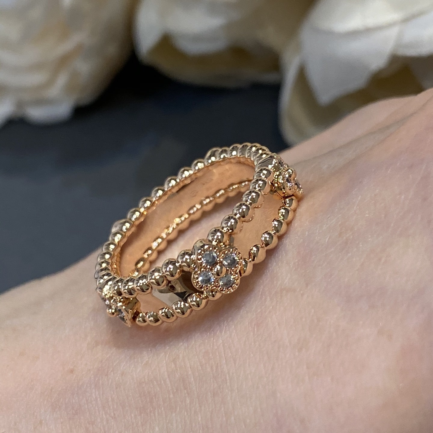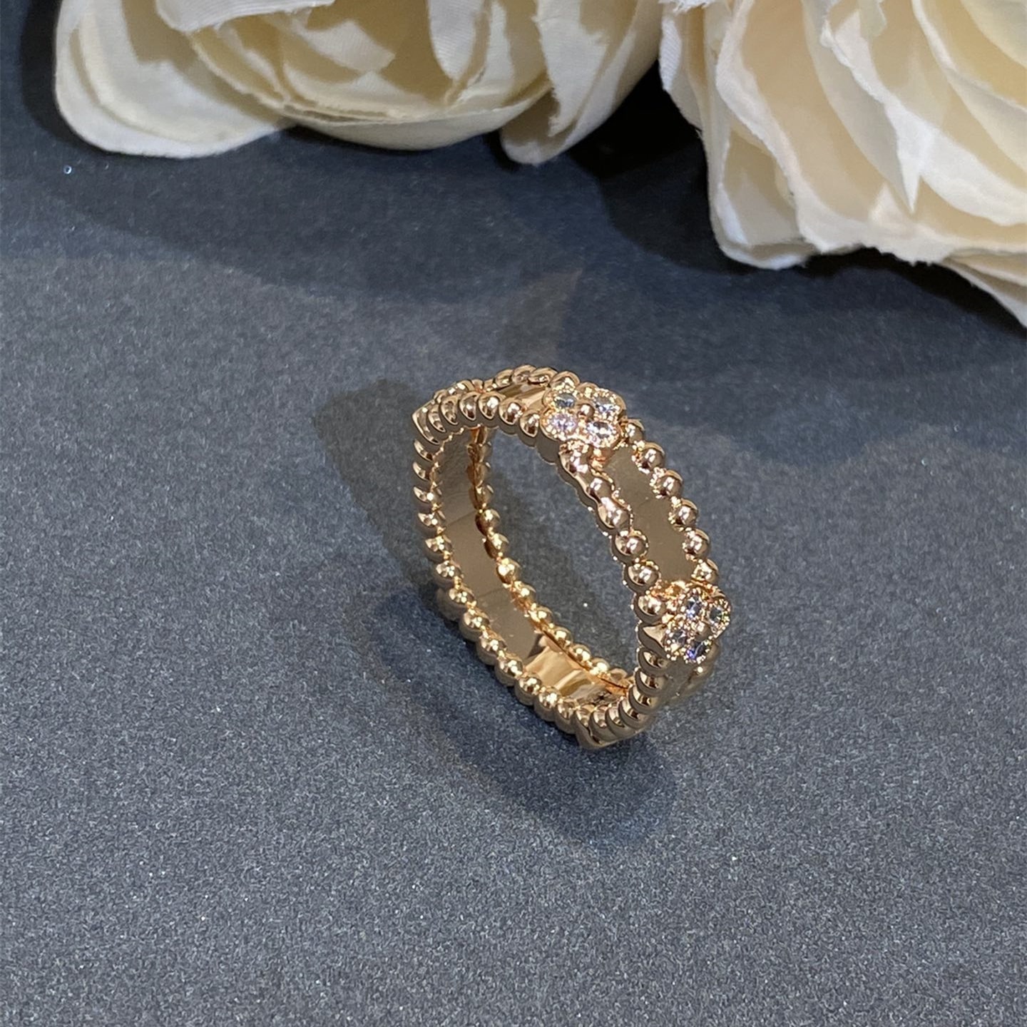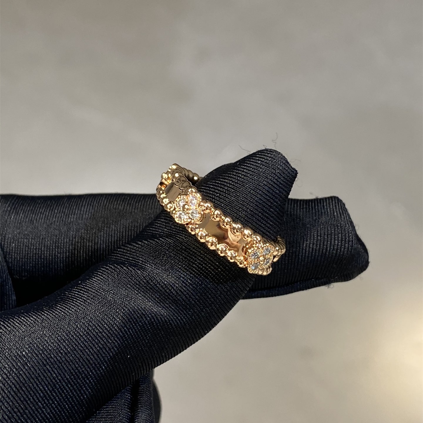 高仿Van Cleef & Arpels首飾高端工藝,重工款VC萬花筒窄版戒指,V家經典復古風高級珠寶,四葉草幸運圖案戒指,希望每個女孩帶上手變身lucky